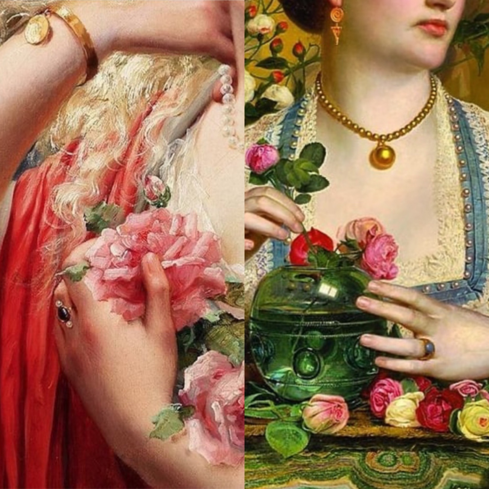 先ずはアンティークジュエリーを手にし全体の美しさを愛でるのです。