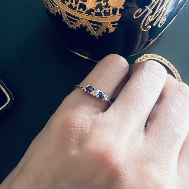 サファイア&オールドカットダイヤモンドのファイブストーンリング