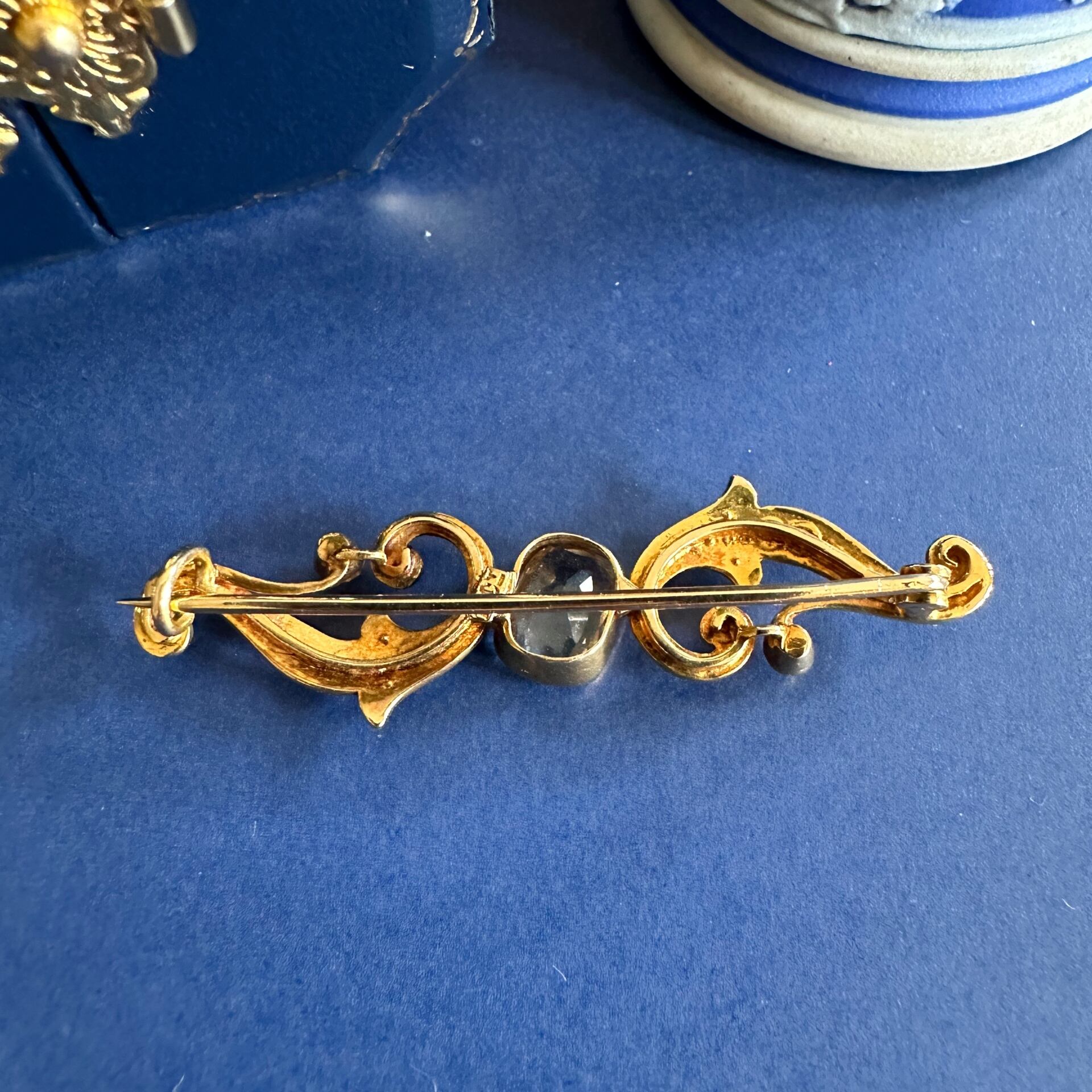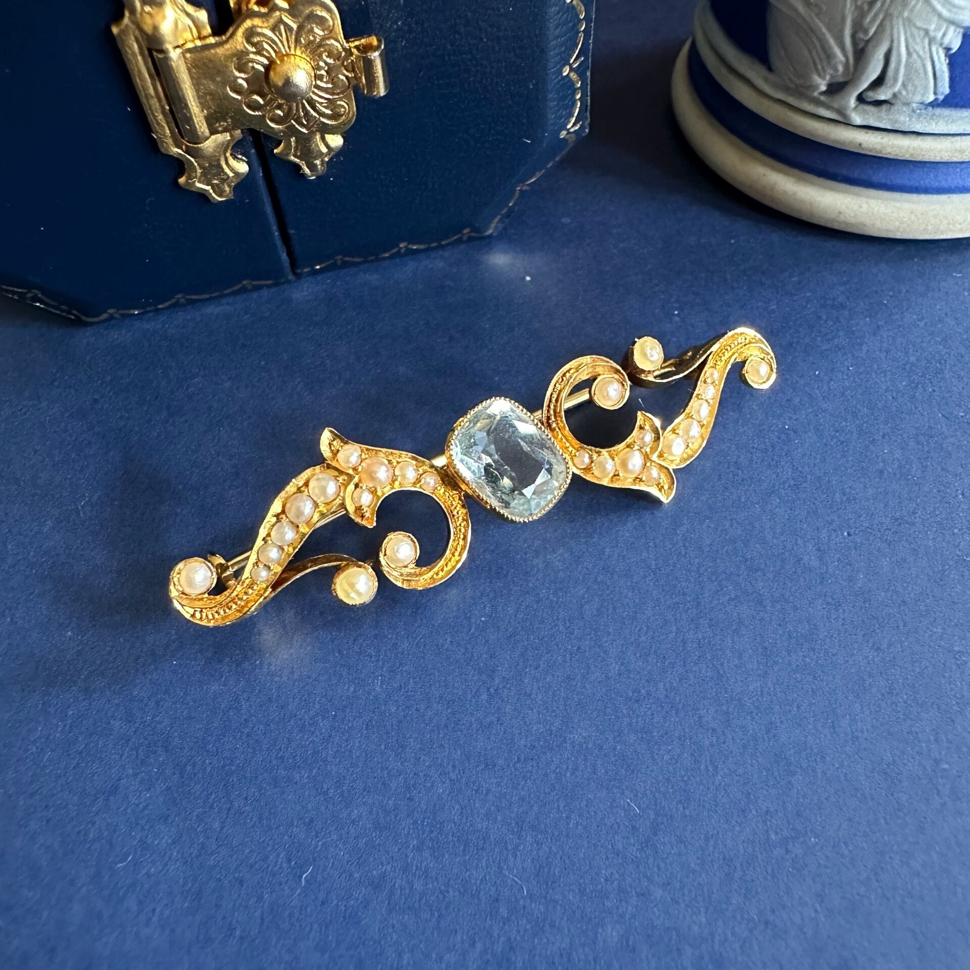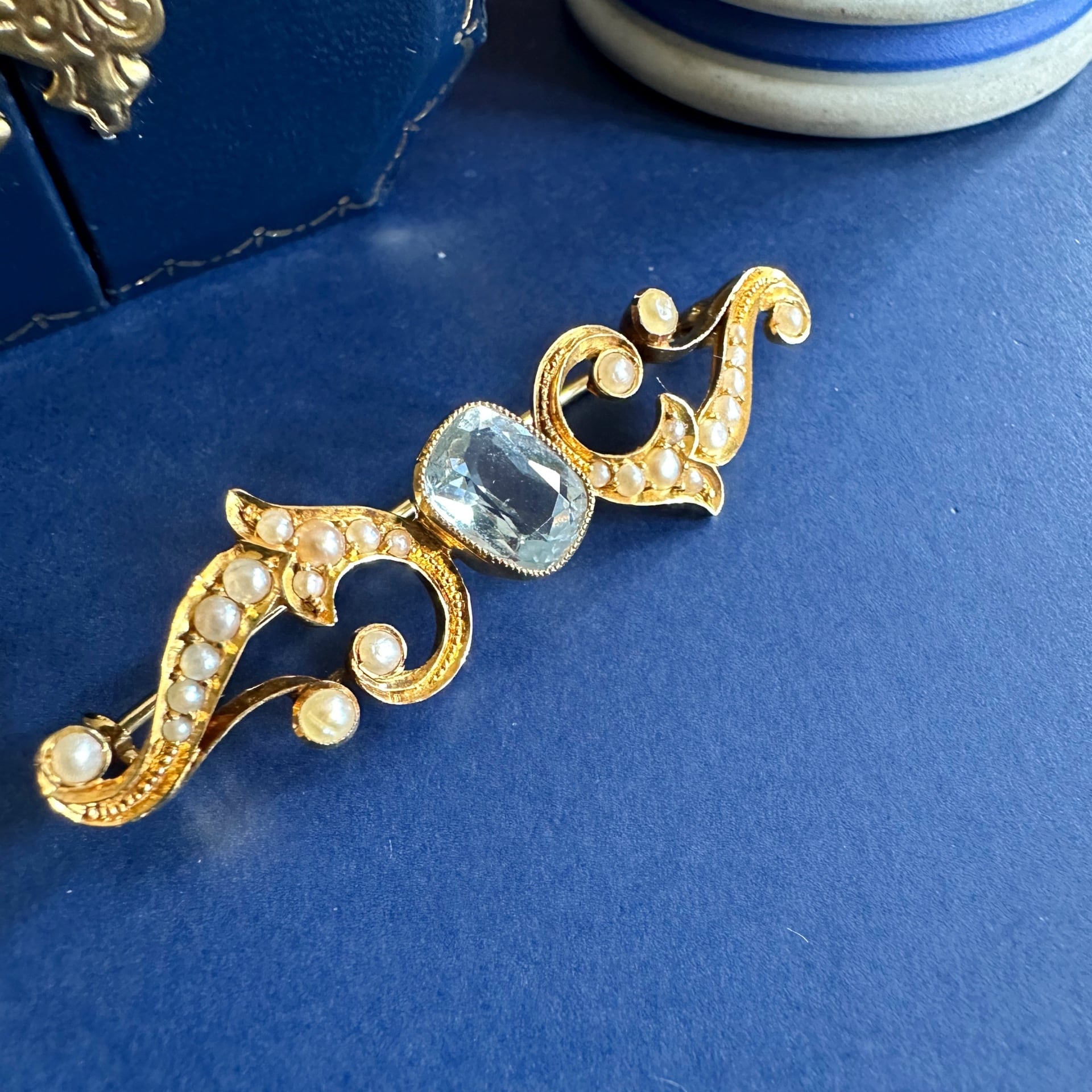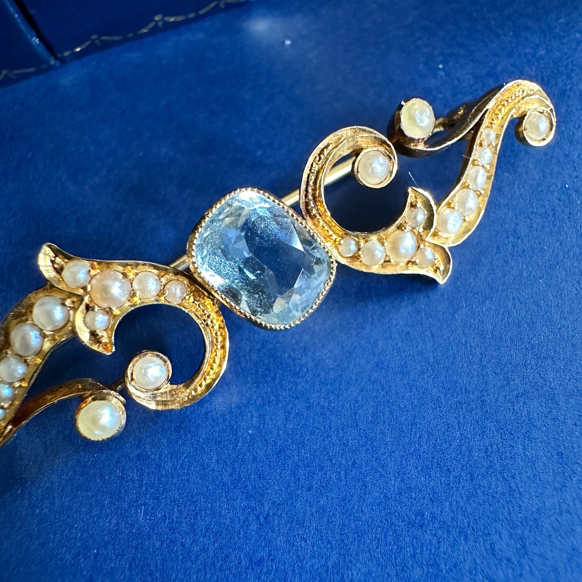 エドワーディアンのアクアマリン&ハーフパールブローチ
