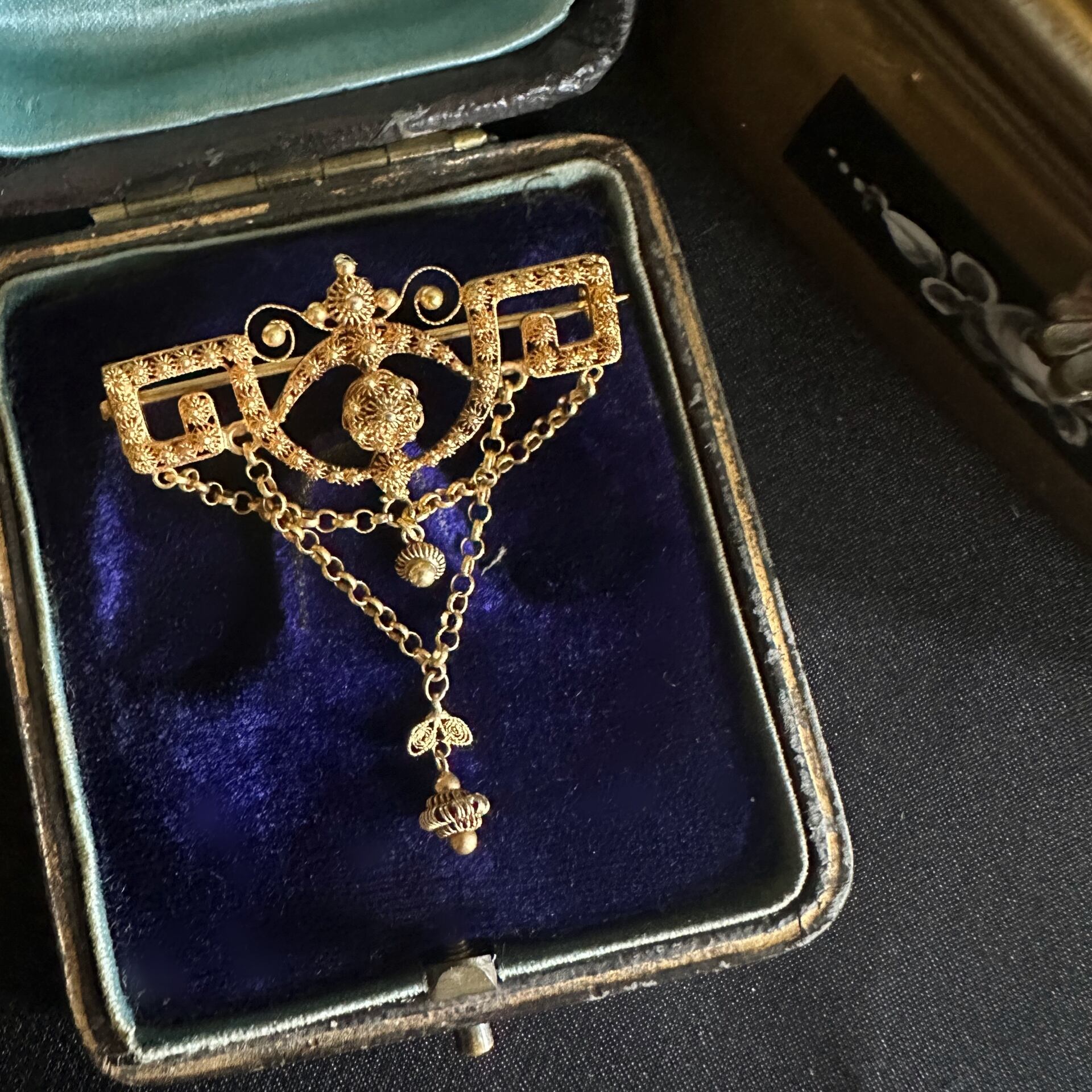 黄金の細工に宿る古代の記憶エトルスカンリバイバルブローチ