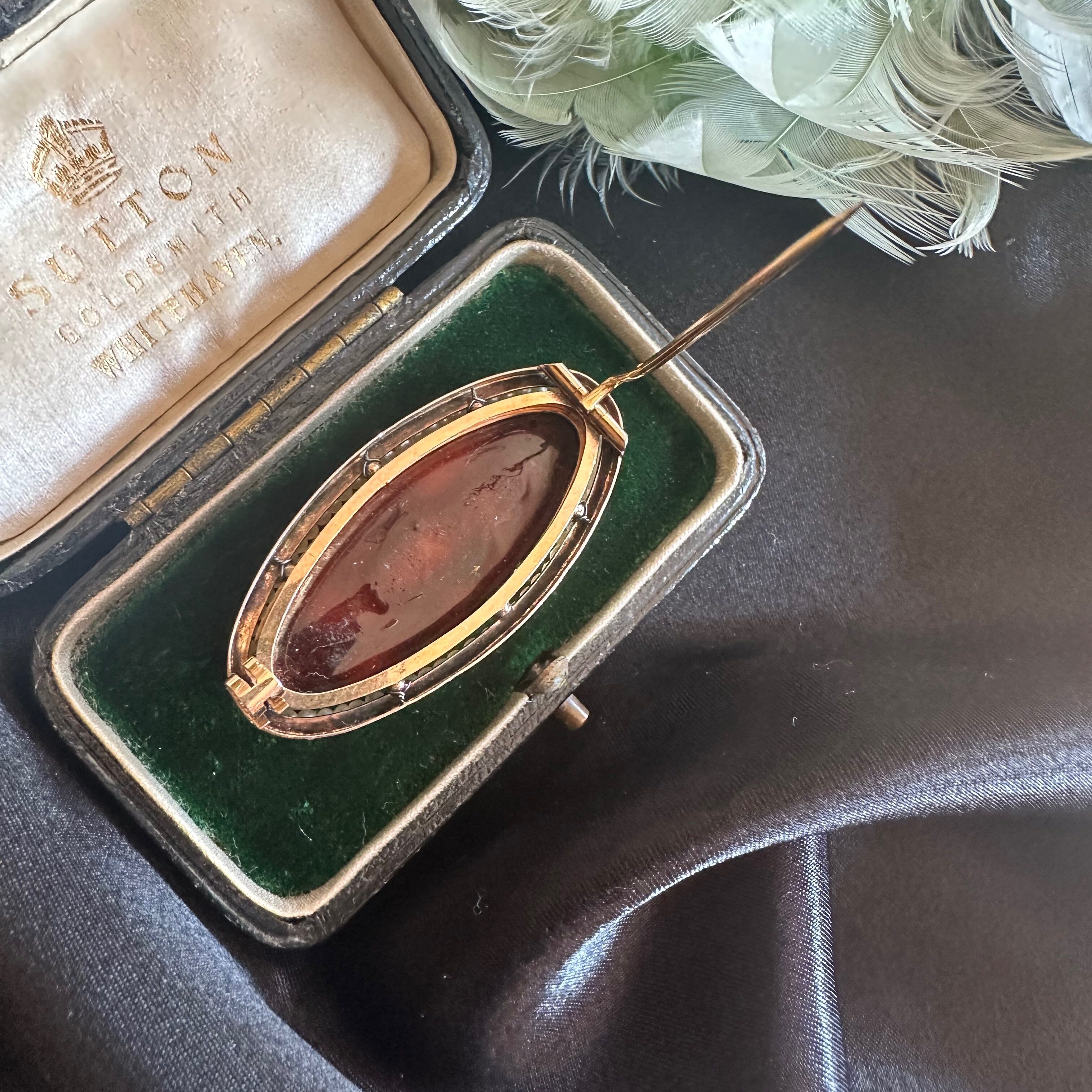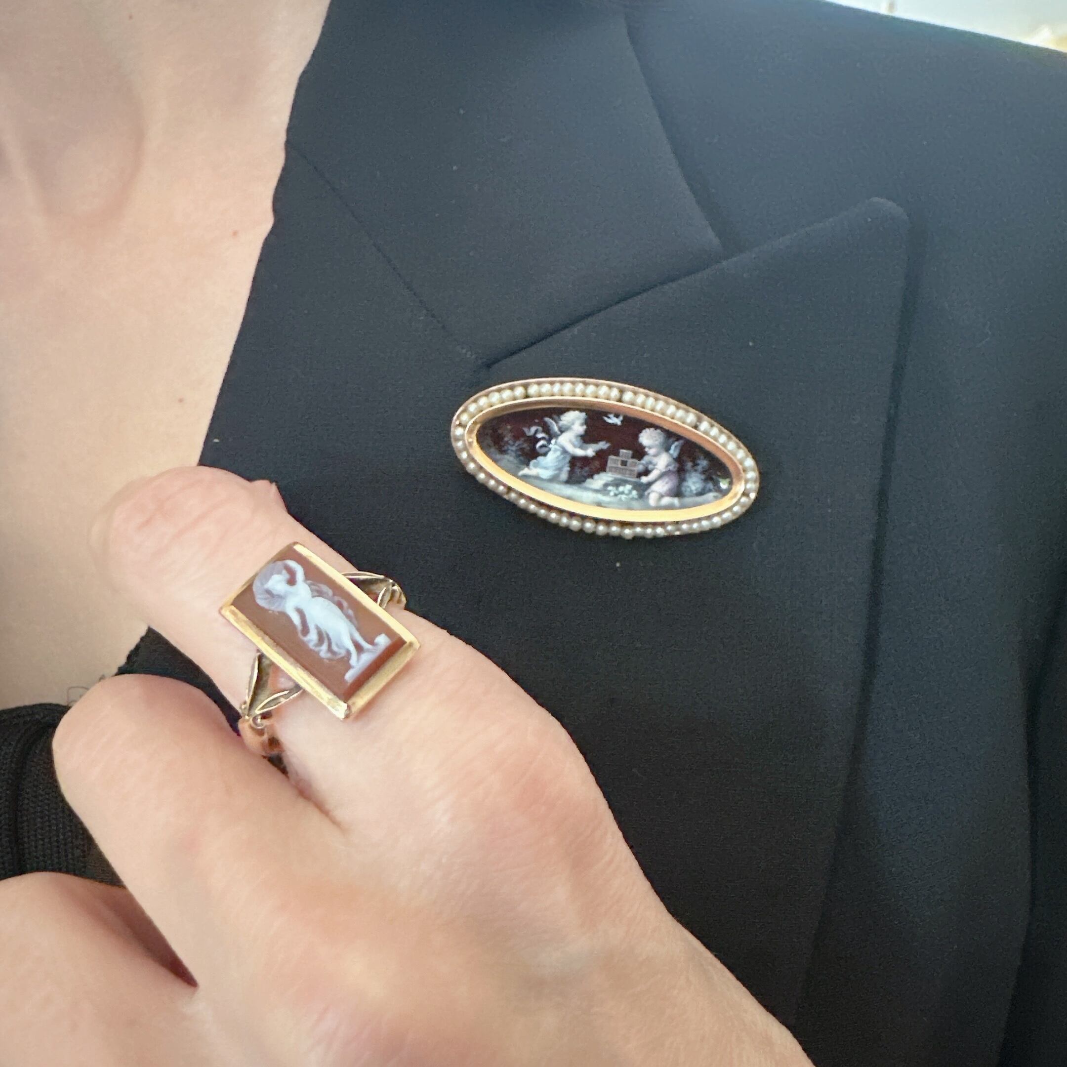 時代と感情と技術がひとつになったこのブローチは、眺めるたびに深みのある美しさに加えて、静かに響く物語性を感じます。まさに、時を超えて心に残る芸術作品とも言えるでしょう。