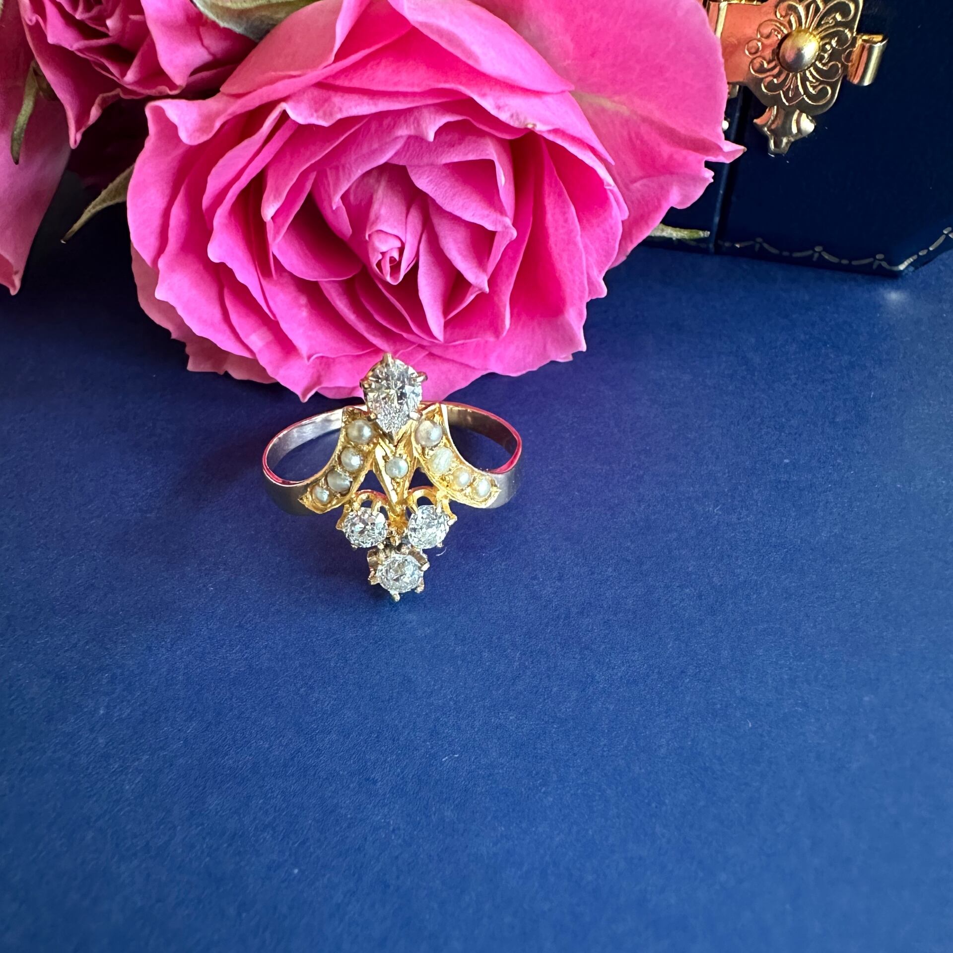 花のように咲き誇る、フルールドリスのアンティークリング。