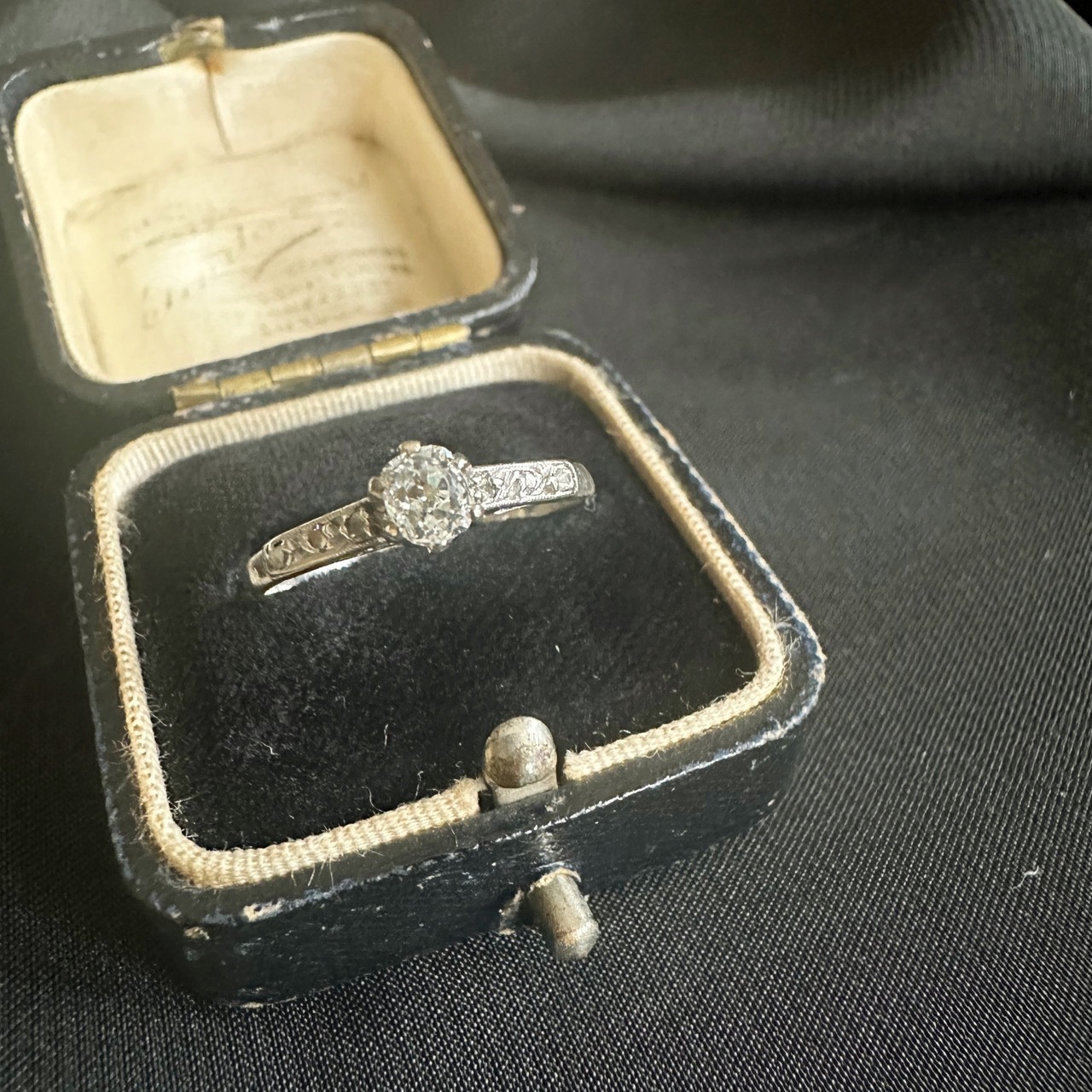 ※ 100年程前の古いお品になりますので、経年によるアンティーク品特有の微小なスレなどルーペで見てわかる程度にございます。ダイヤモンドはルーペでのぞくと内包物はありますが、肉眼でみえるものではなく、瑞々しい輝きを楽しませてくれます。カケはございません。
