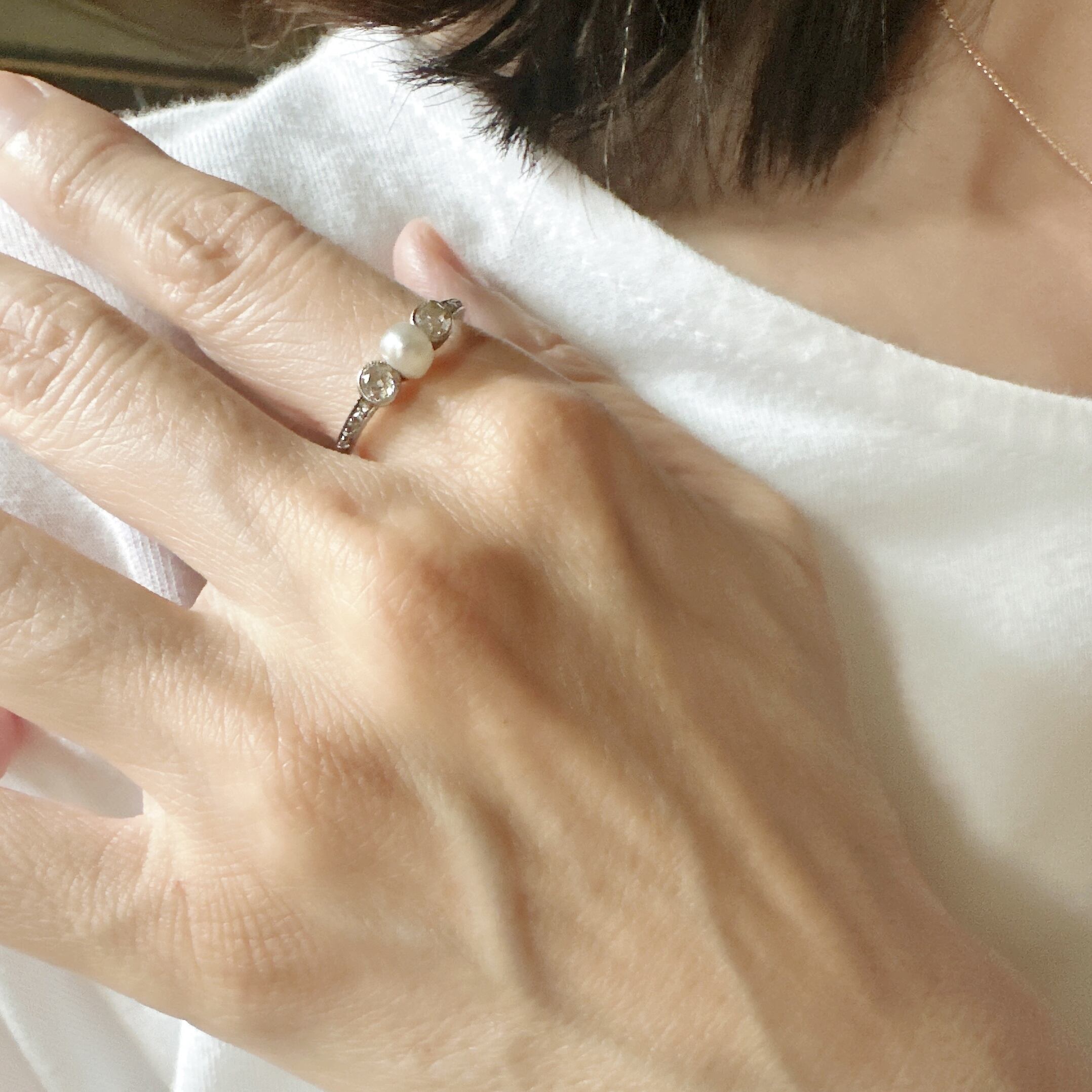 時の海から現れた宝物 ― ナチュラルパールとオールドカットダイヤモンドのエドワーディアン(ベルエポック)・リング