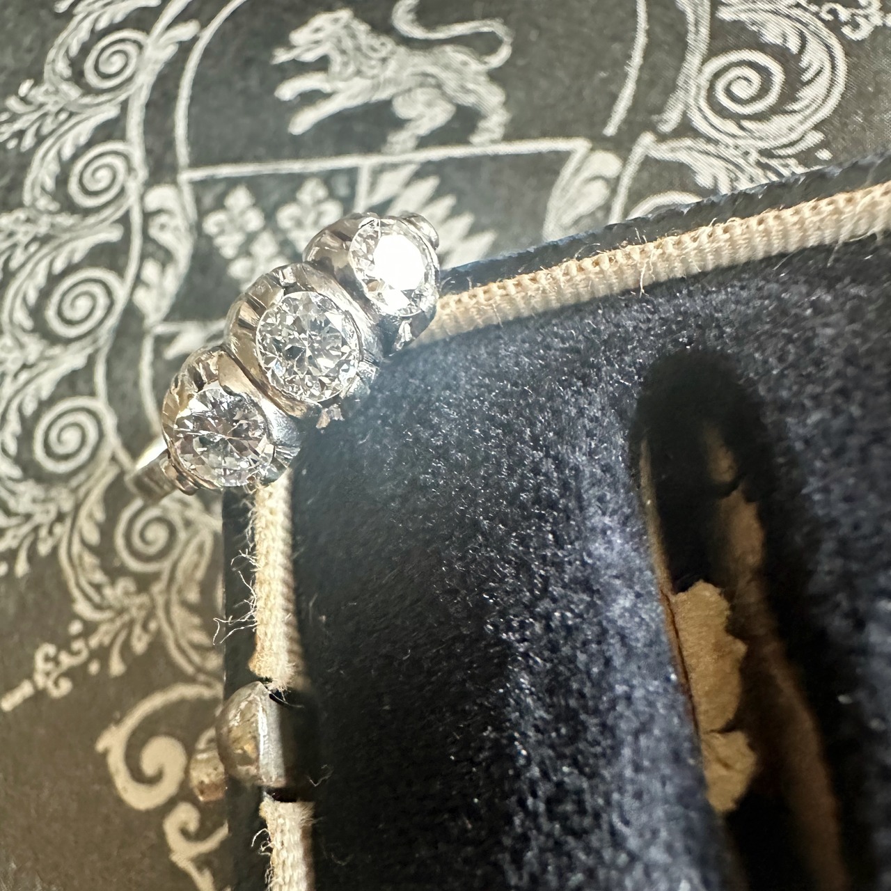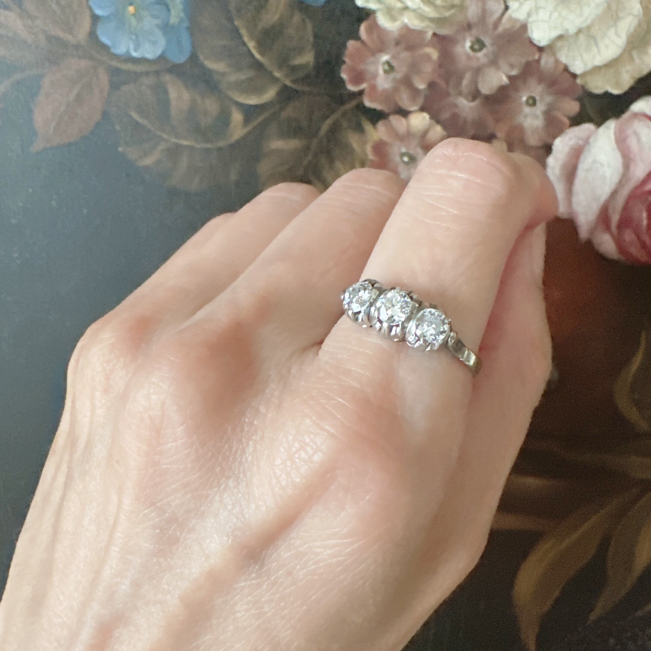 1930年代頃 プラチナ×ダイヤモンド スリーストーンアンティークリング
