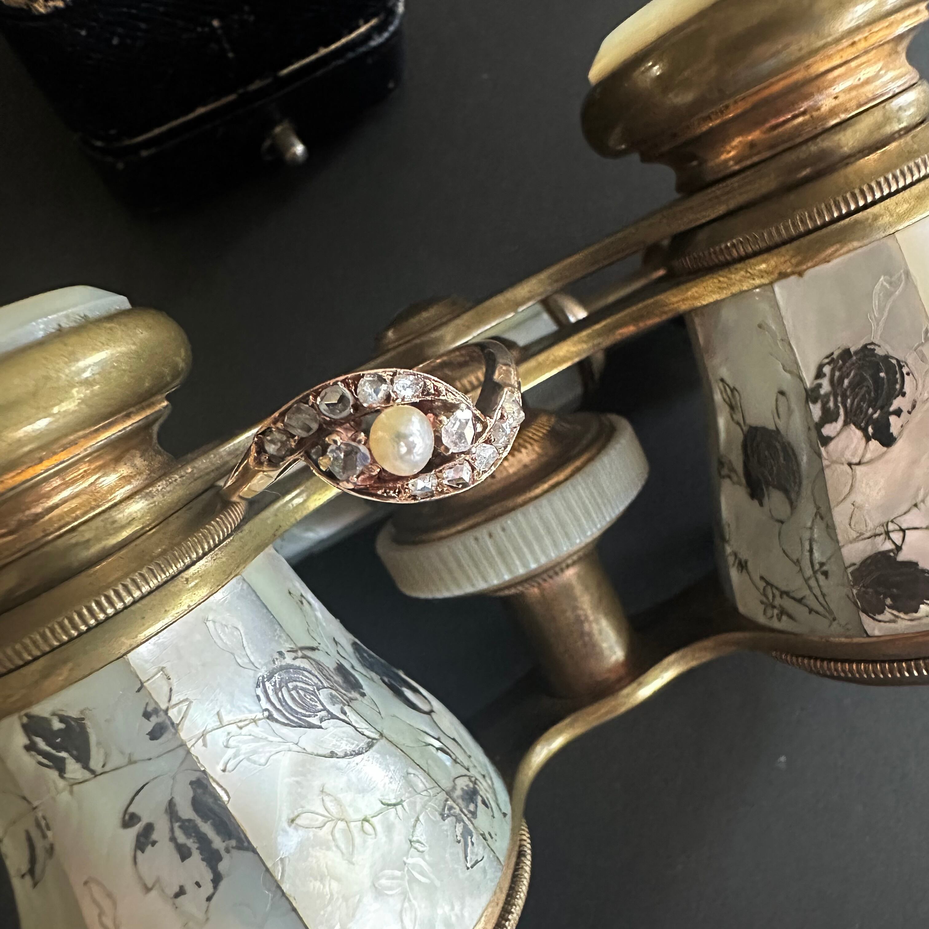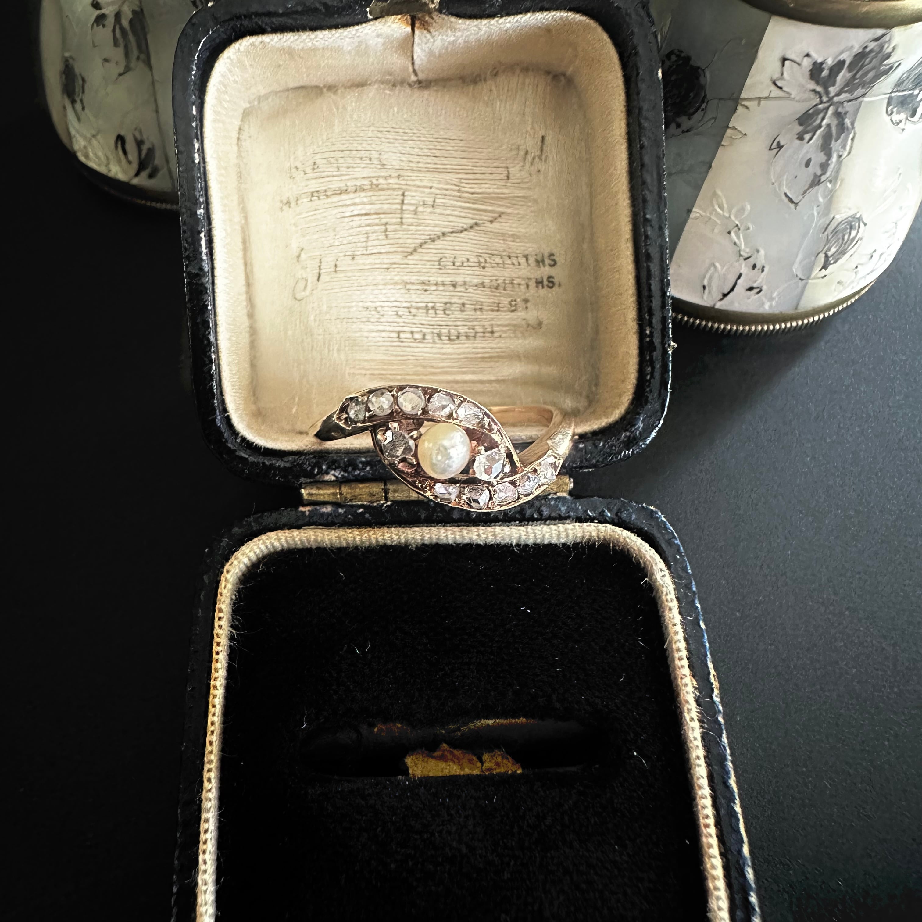 ※ 100年以上前の古いお品になりますので、経年によるアンティーク品特有の微小なスレなどルーペで見てわかる程度にございます。パールはエクボがあります。ダイヤモンドはアンティークローズカット特有の擦れがありますが、肉眼でみえるものではなく、瑞々しい輝きを楽しませてくれます。