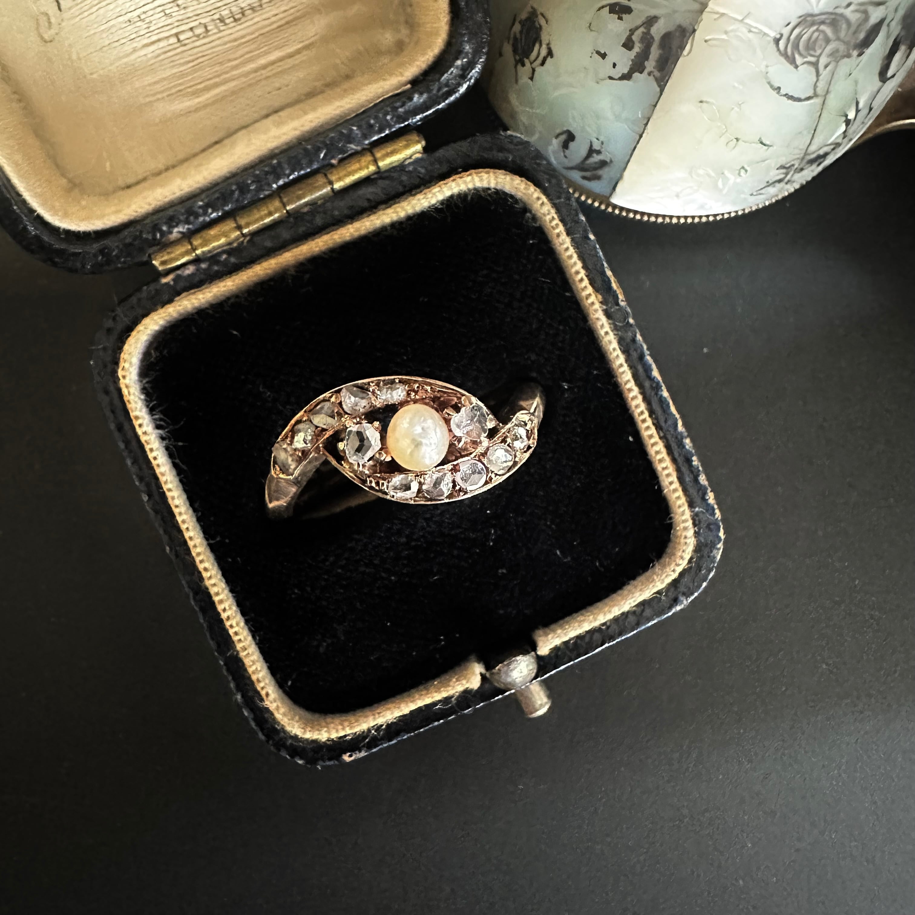 ナチュラルバロックパール&ローズカットダイヤモンドのクロスオーバーリング