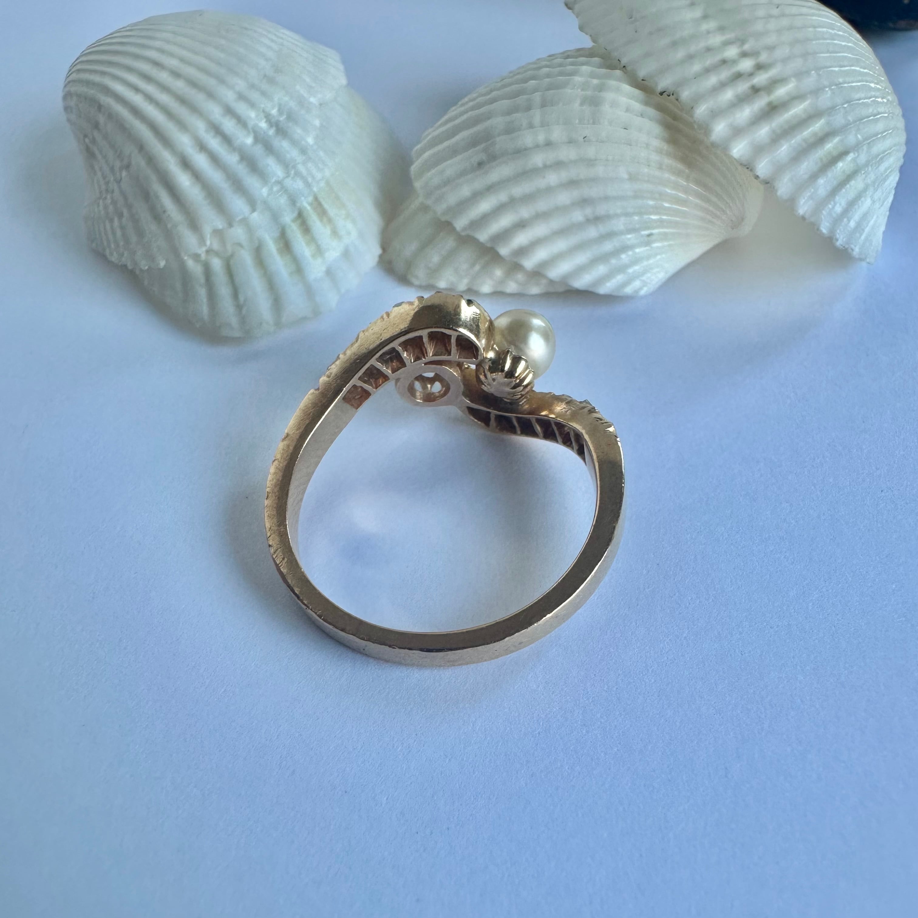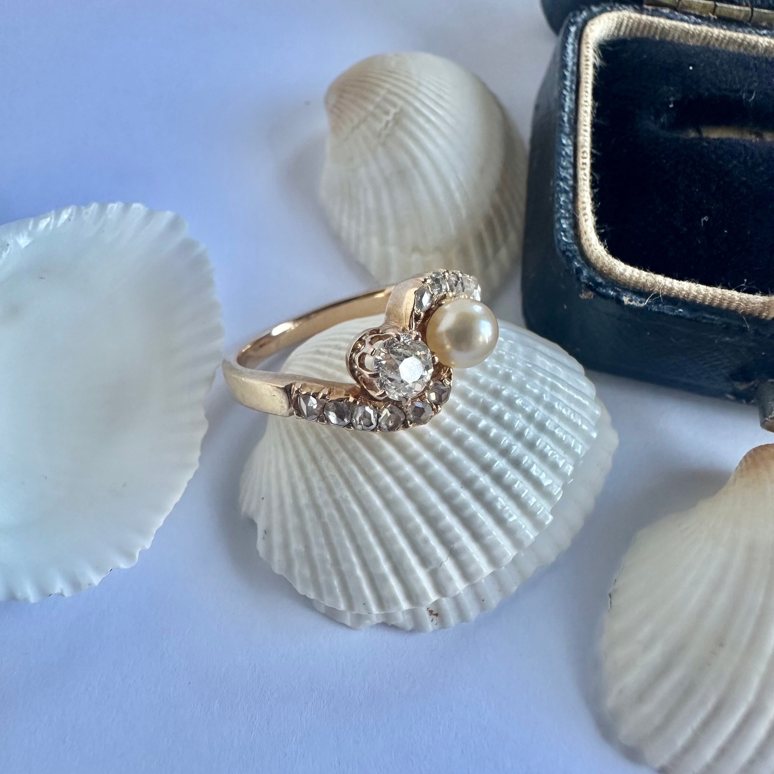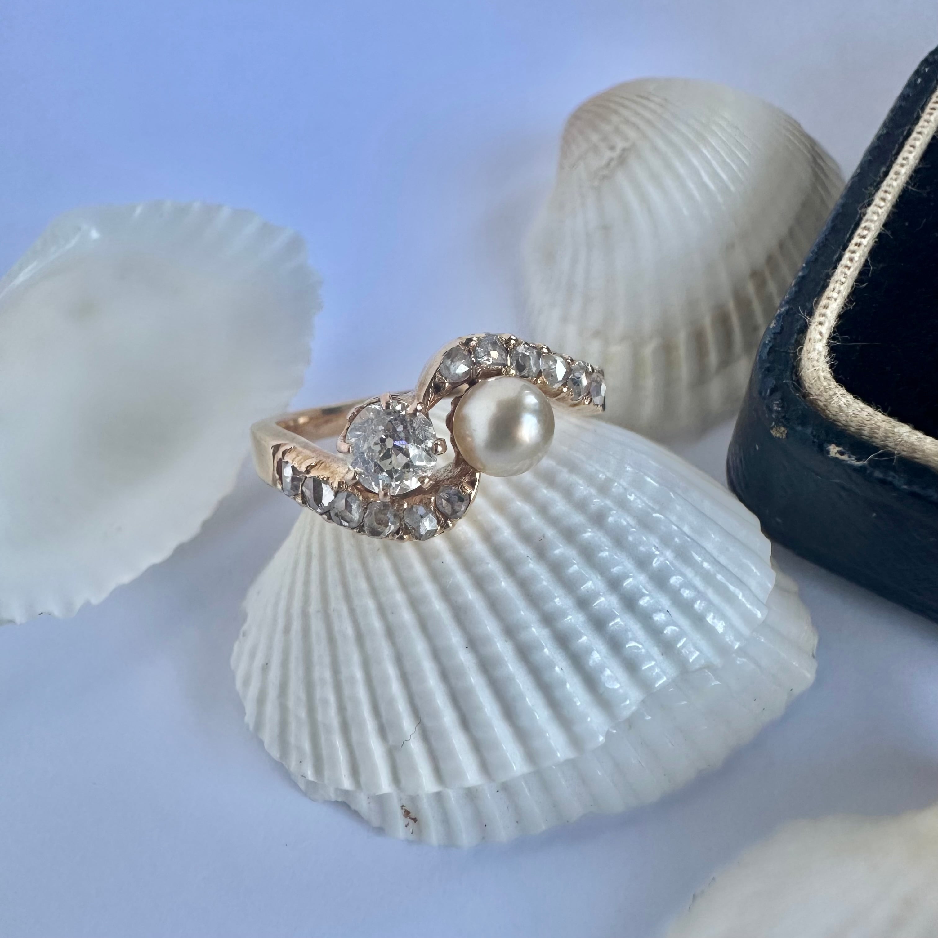 トワエモア(toi et moi)のナチュラルパール&オールドヨーロピアンカットダイヤモンドのクロスオーバーリング