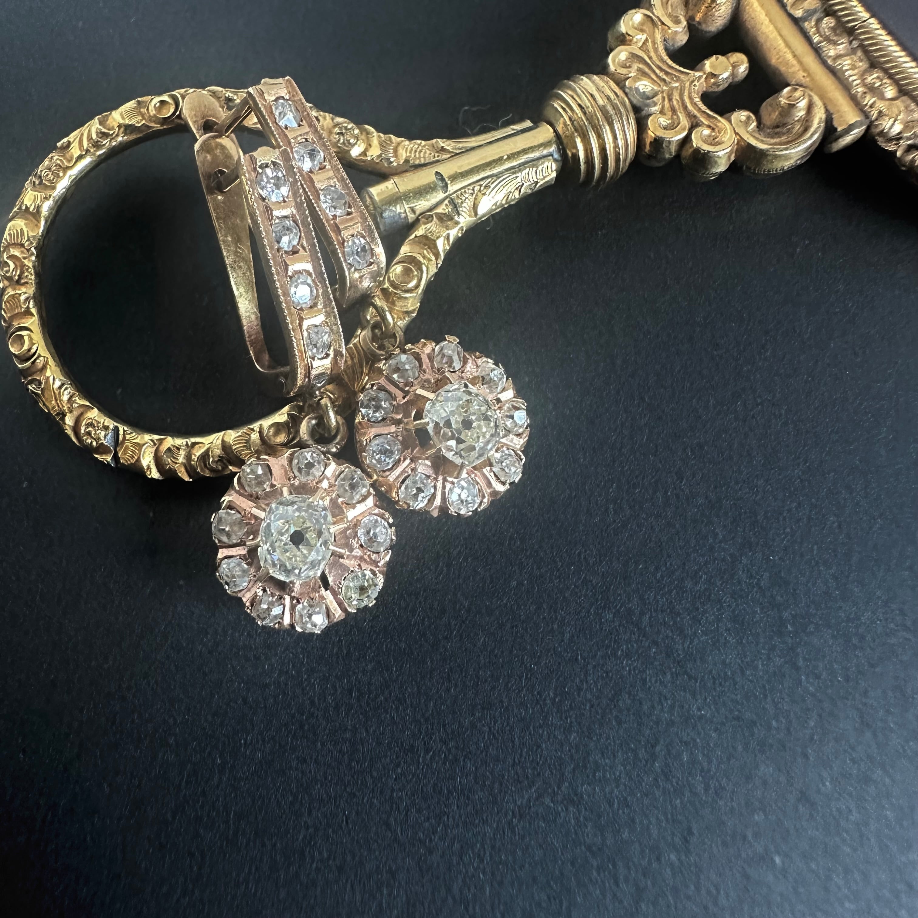オールドマインカットダイヤモンドクラスタードロップピアス