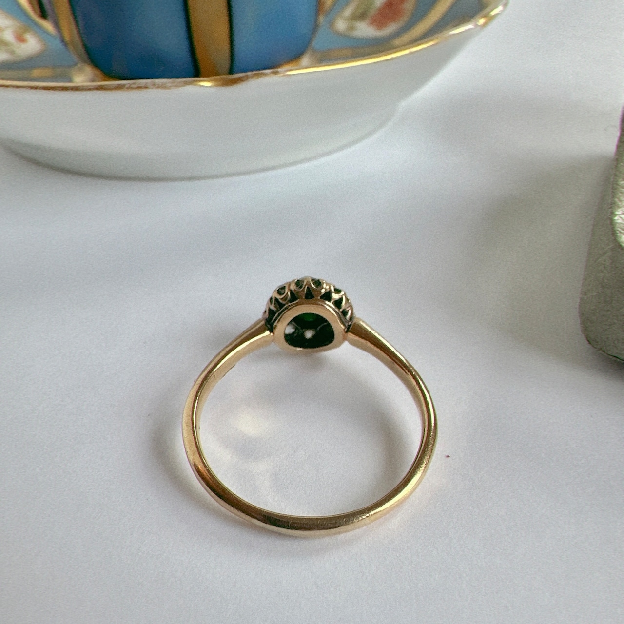 現代でもクラスターリングは作られていますが、このリングにはヴィクトリアンだからこその佇まいがあります。石のカットの違い、セッティングの仕立て、そして全体に漂う気品。わかる方にはすぐに感じていただける、当時の息遣いが宿ったひと品です。