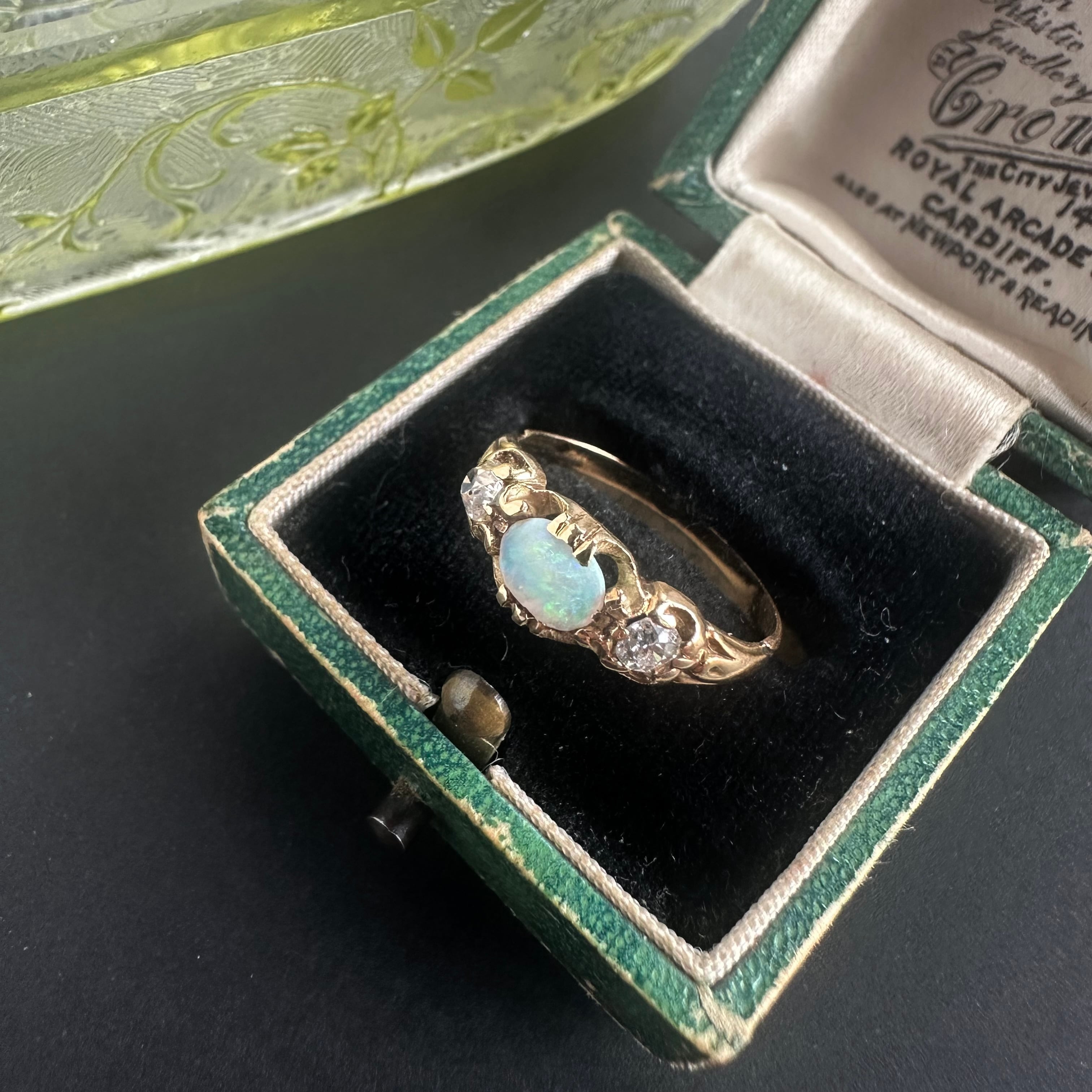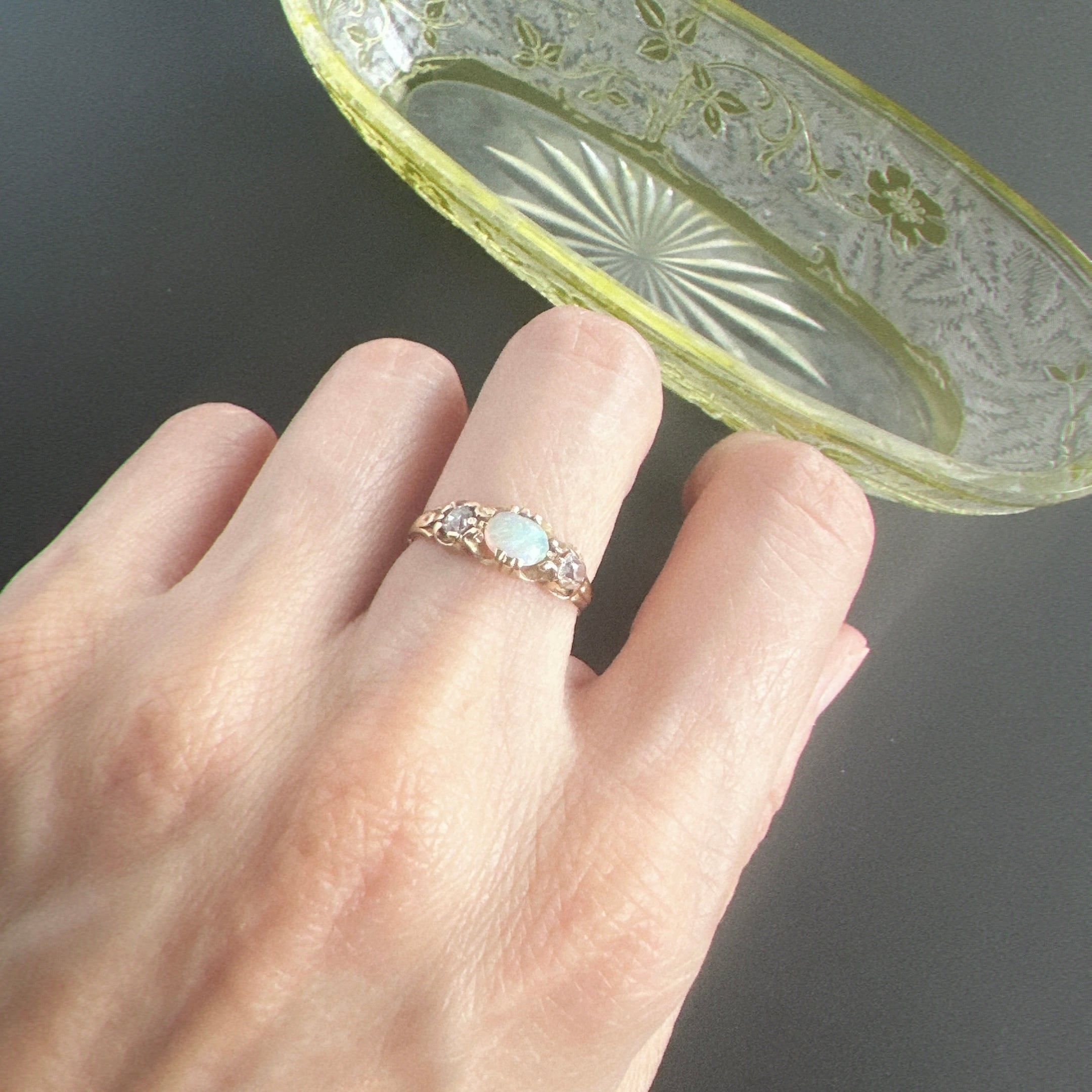 オパール&オールドマインカットダイヤモンドアールヌーヴォーリング