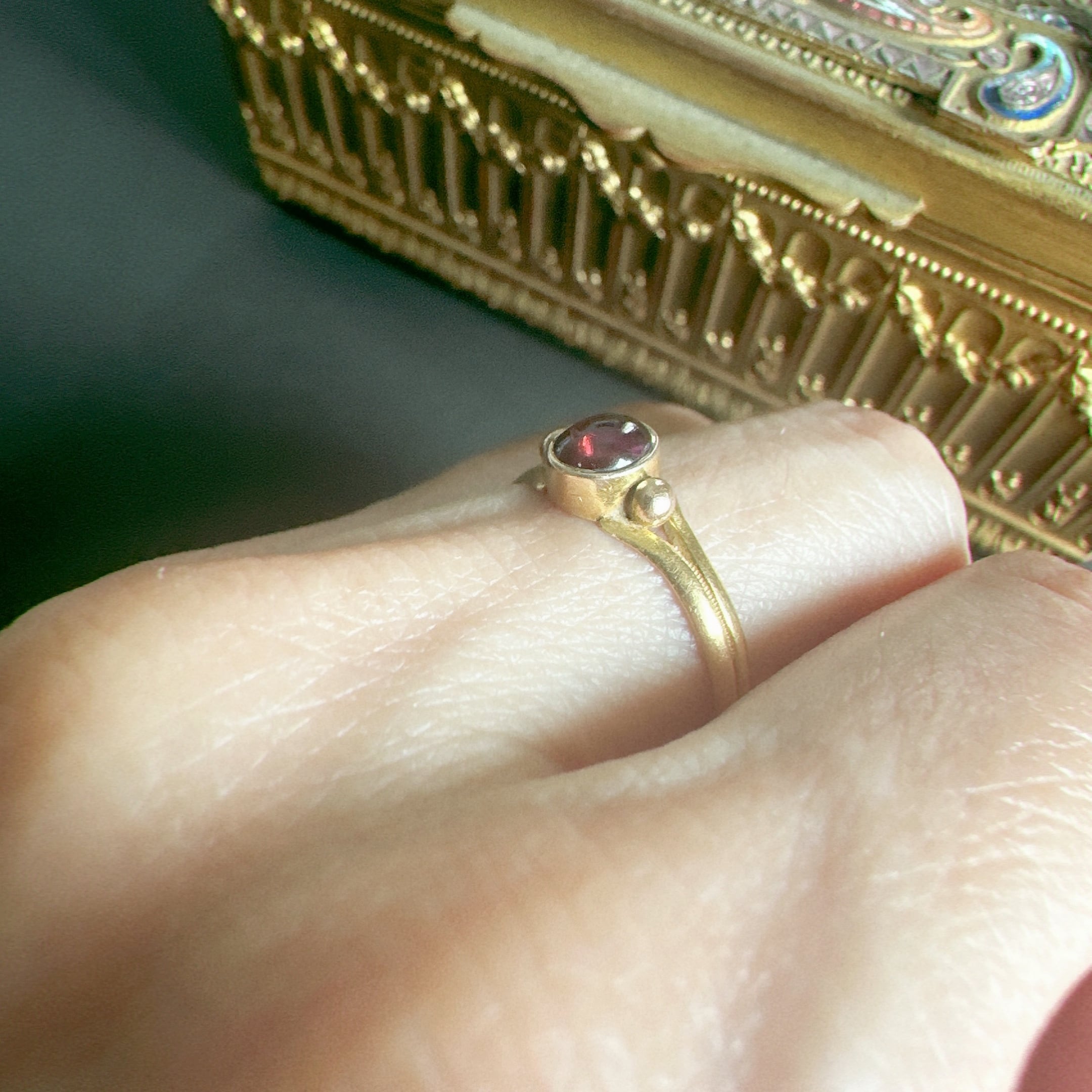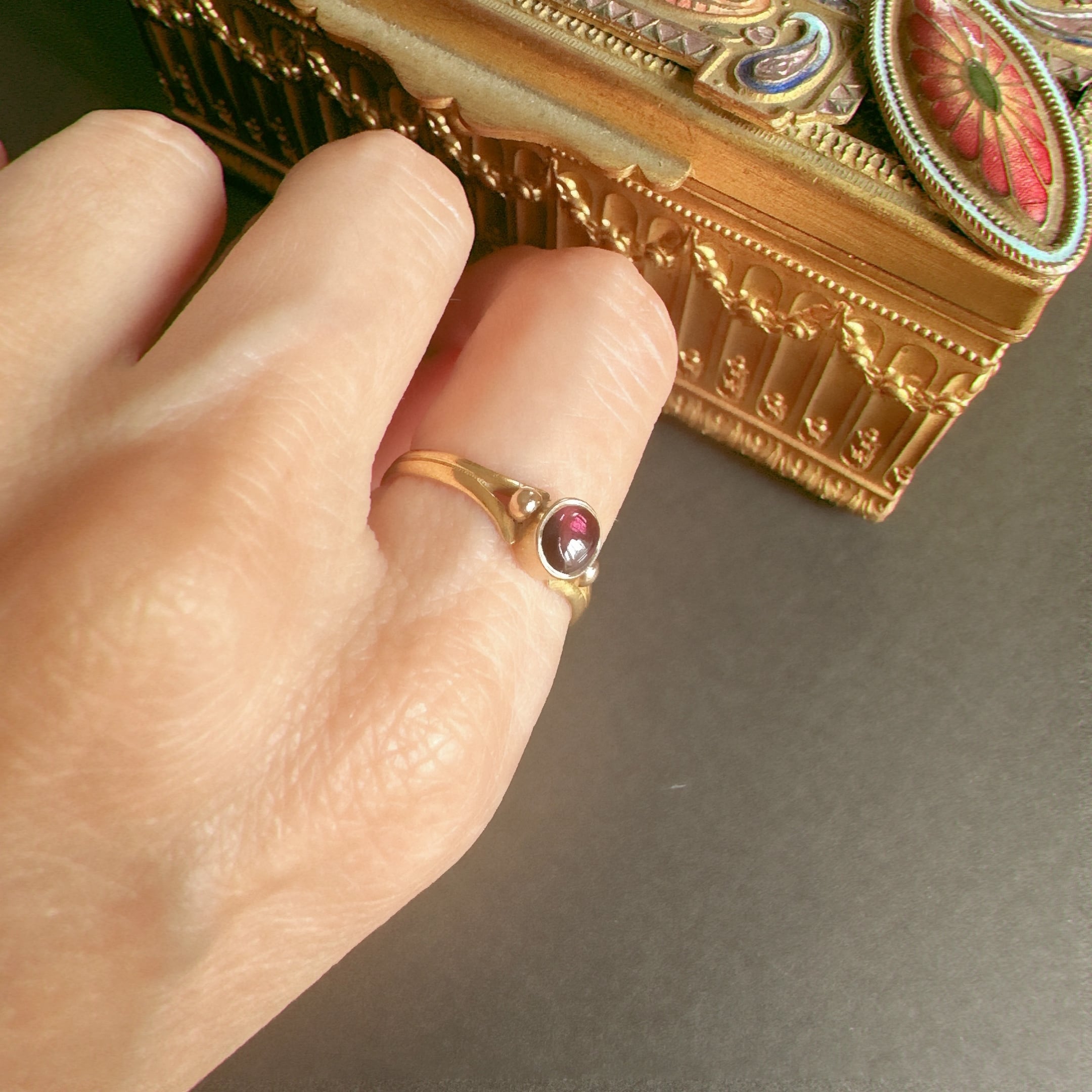シンプルな造形ながら、ヴィクトリア時代ならではの深みを漂わせるカボションガーネットリングのご紹介です。