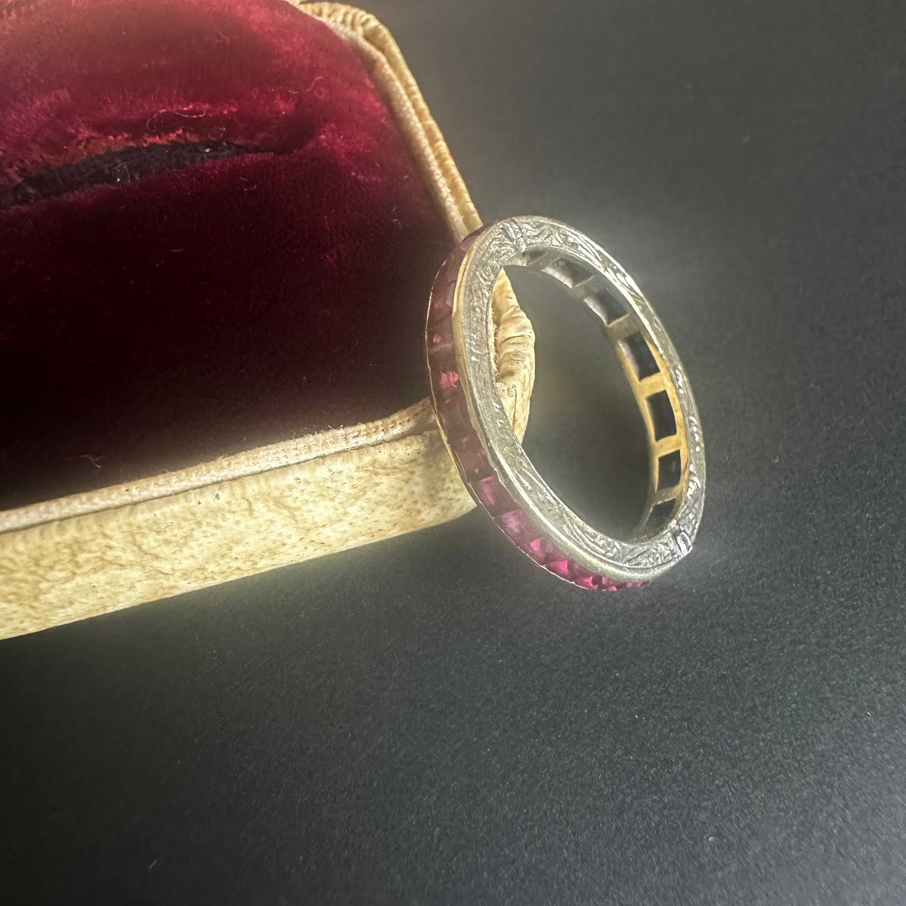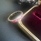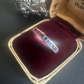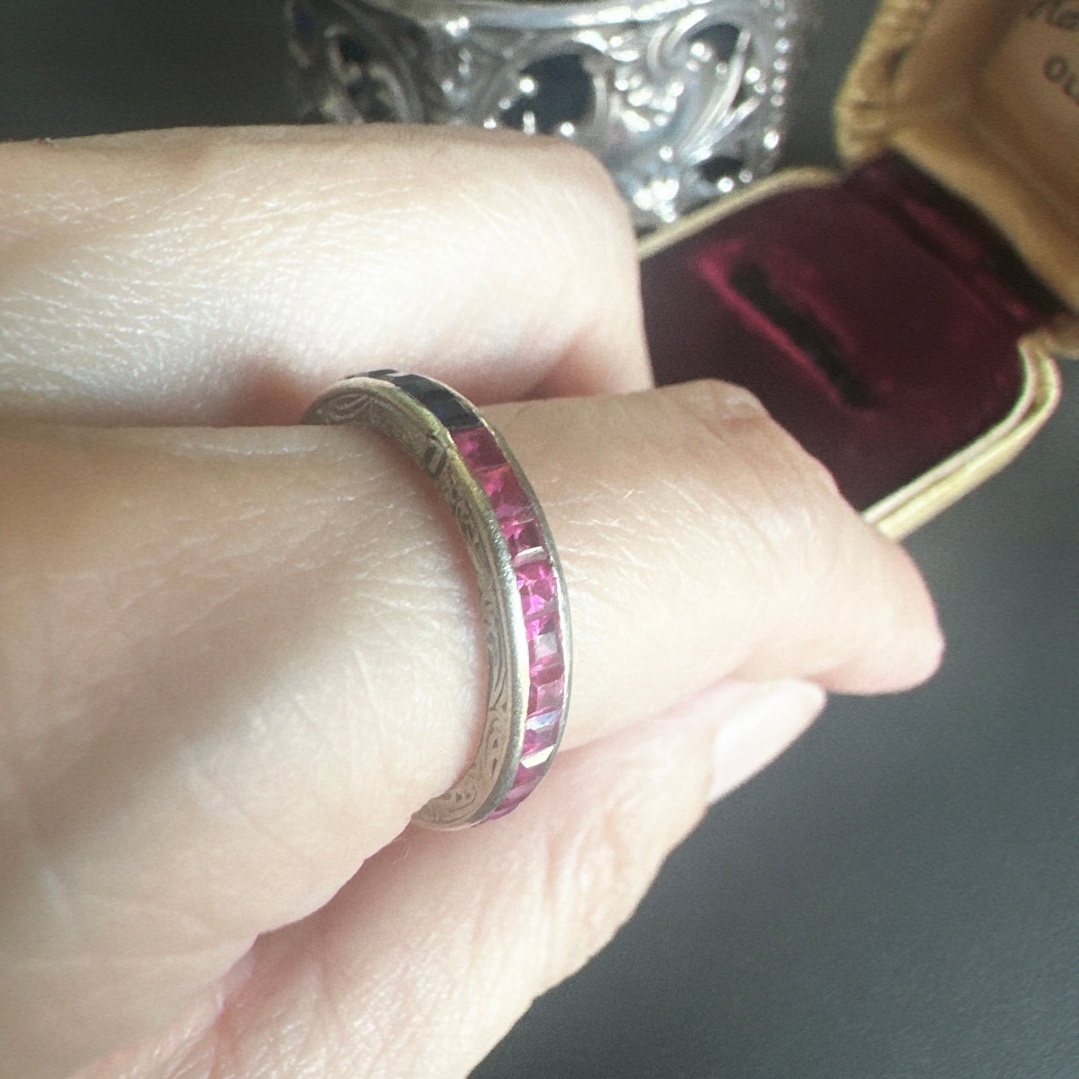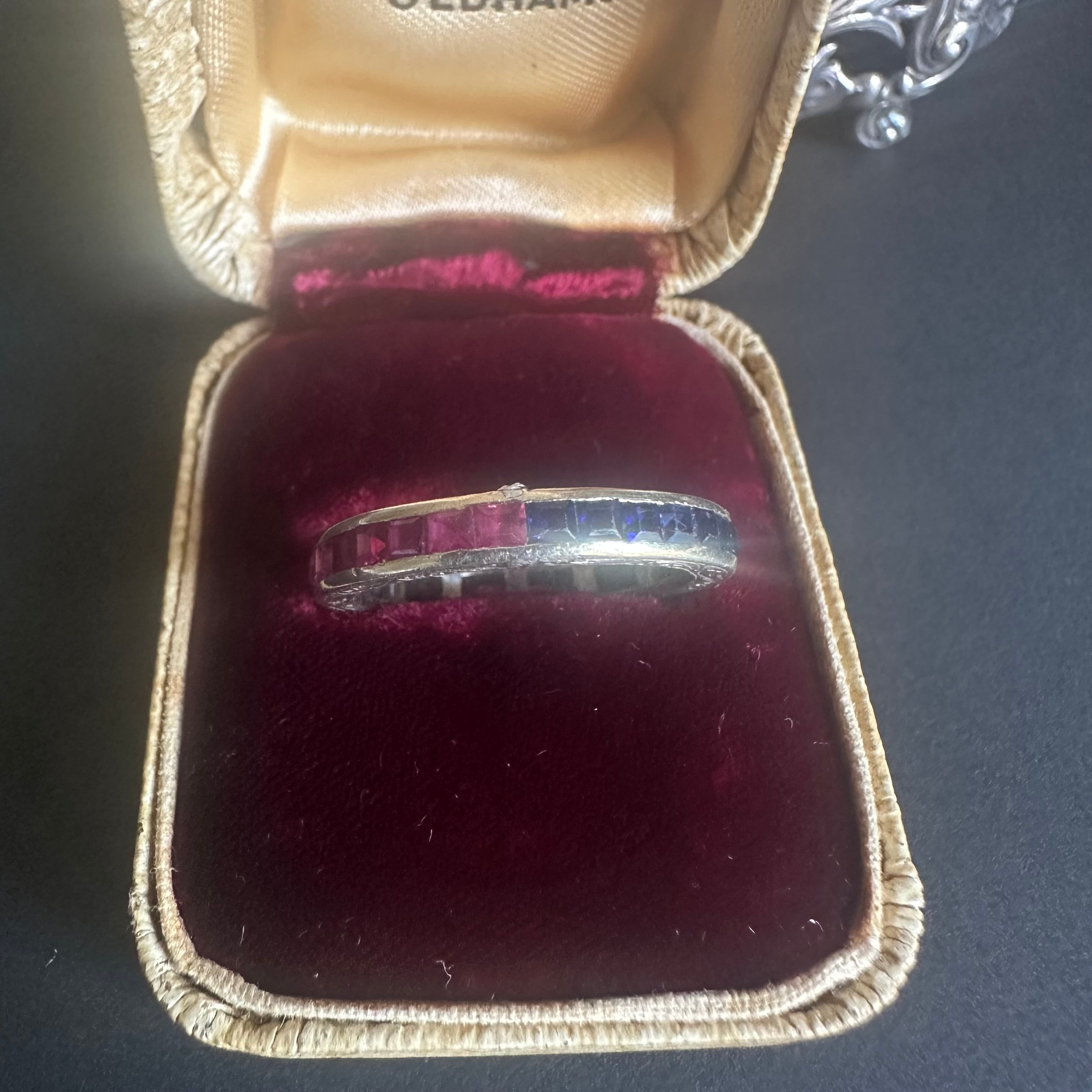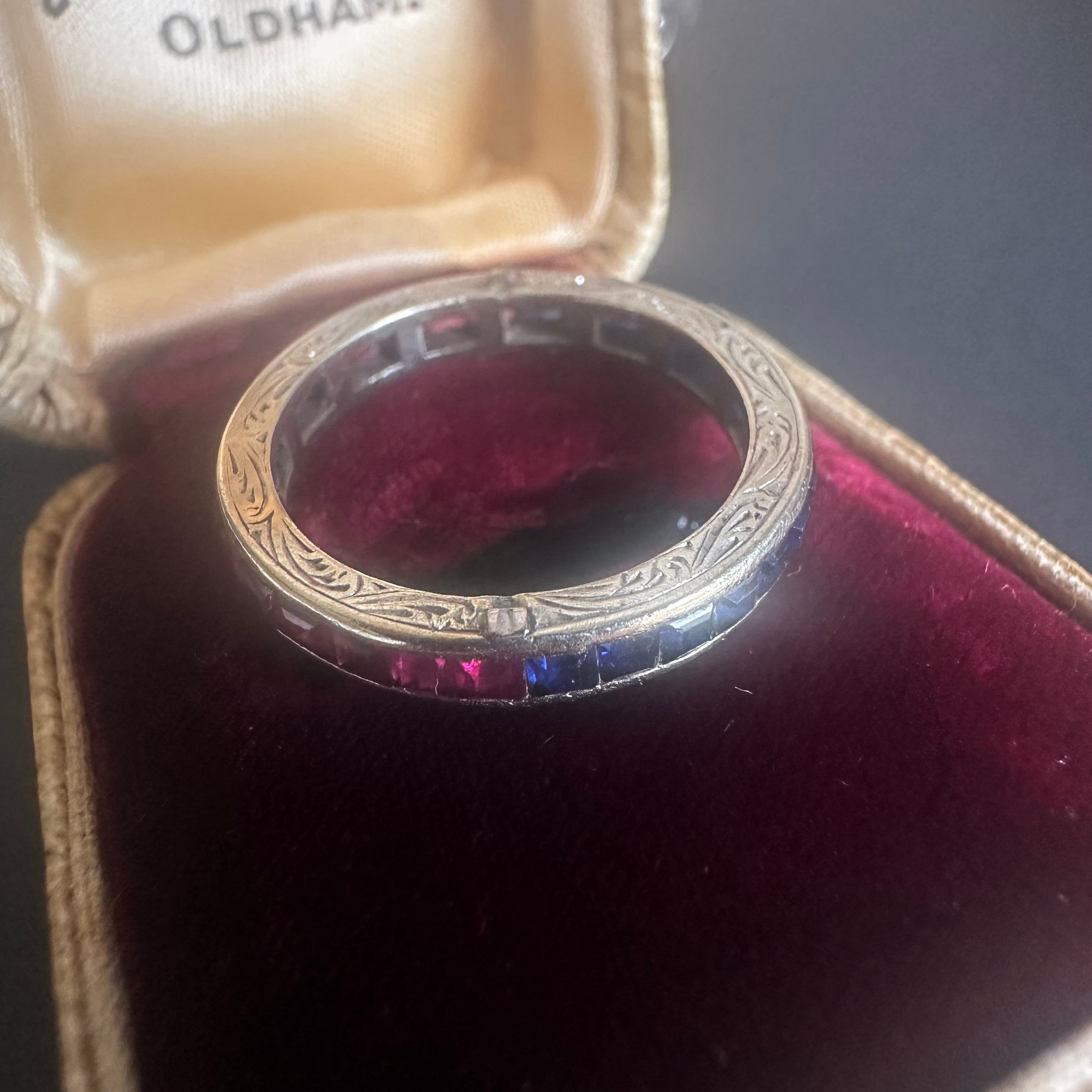 アールデコカリブレカットサファイア&ルビー(合成)エタニティーリング