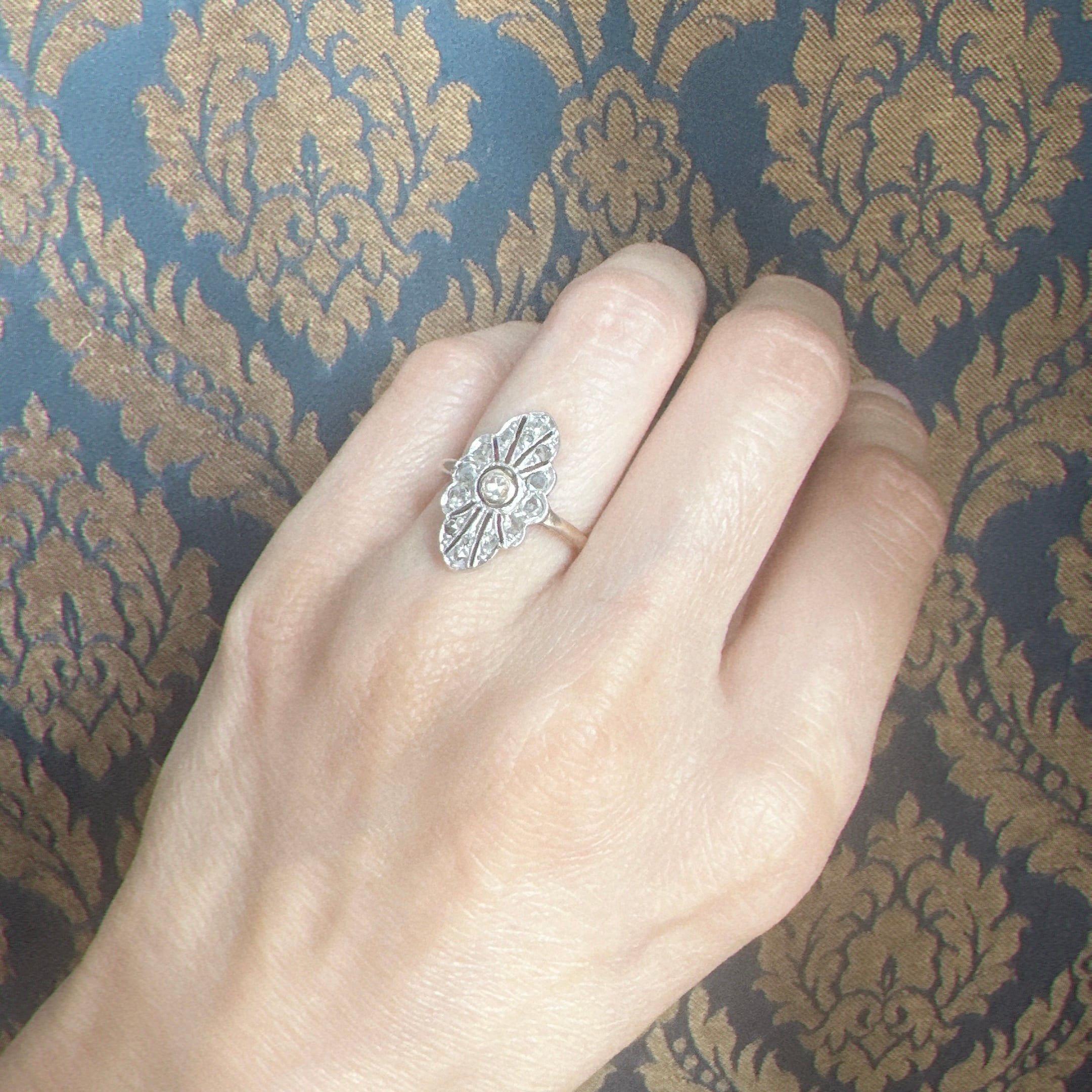 羽根のように広がる柔らかな透かし模様が印象的な、20世紀初頭のリングのご紹介です。