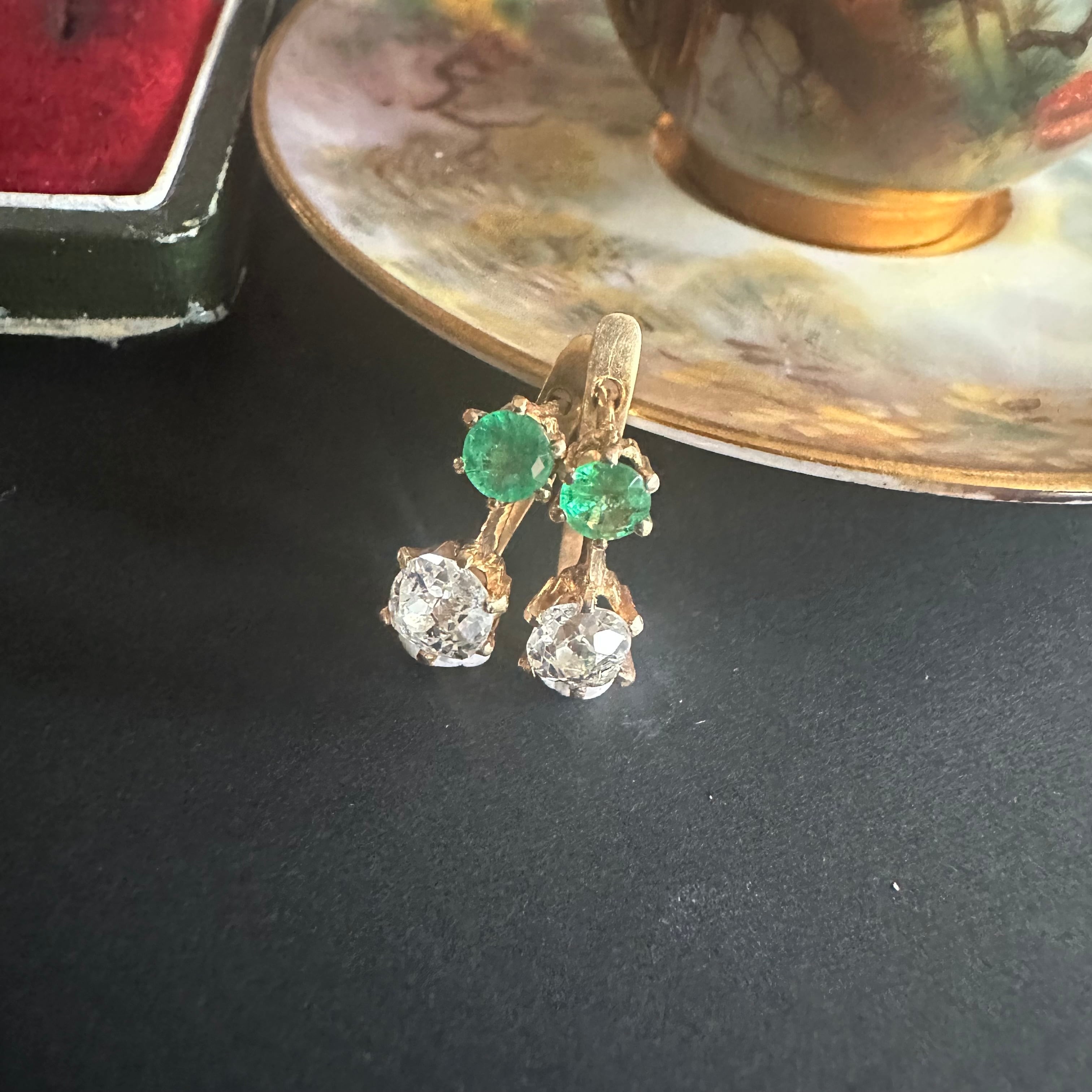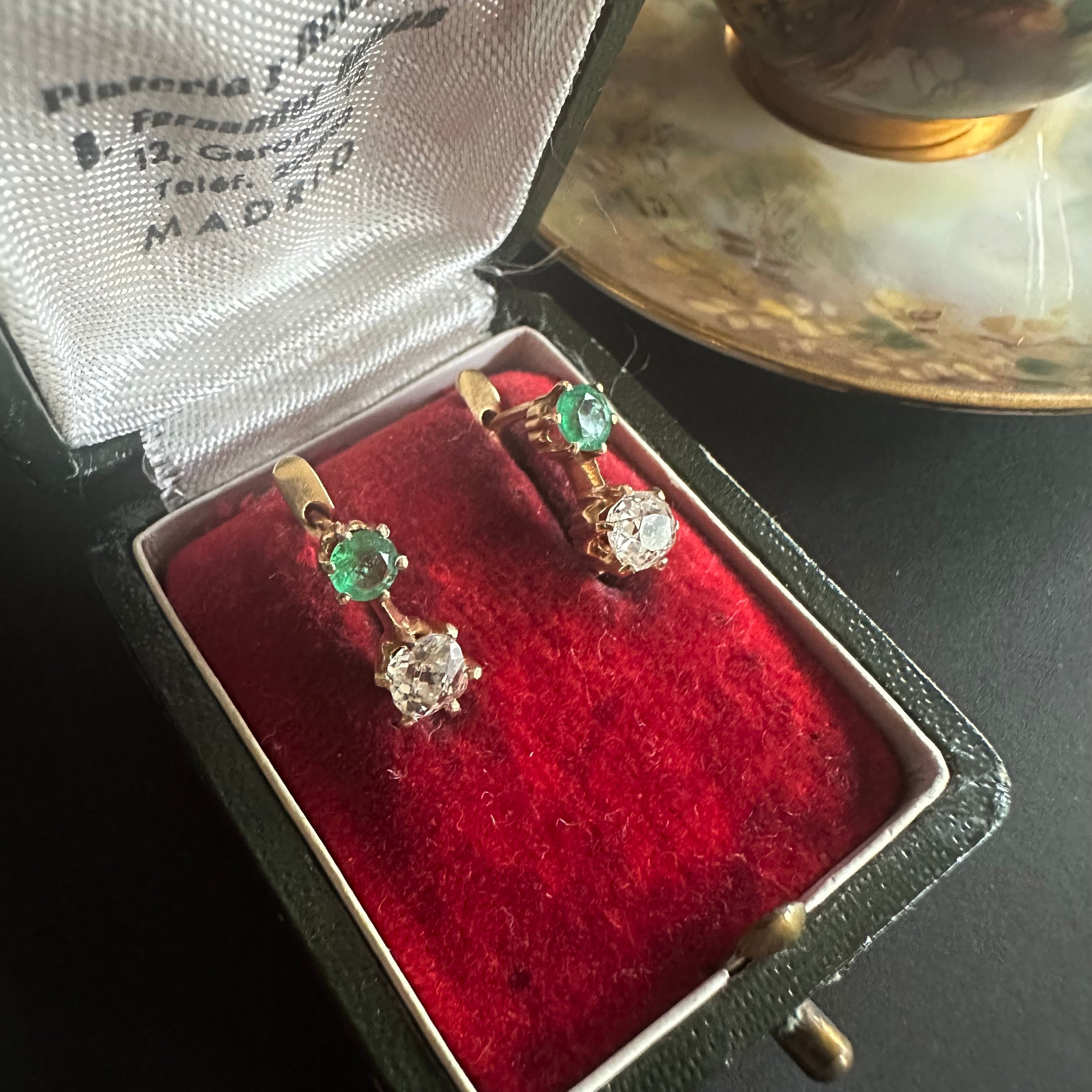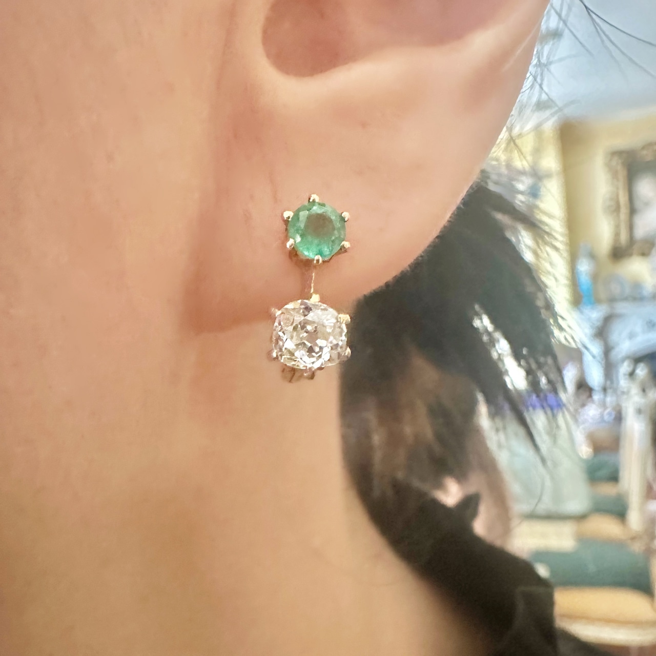 オールドマインカットダイヤモンド&エメラルドのアンティークピアス