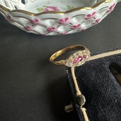 ※ 100年程前の古いお品になりますので、経年によるアンティーク品特有の微小なスレなどルーペで見てわかる程度にございます。ダイヤモンドやルビーはルーペでのぞくと内包物はありますが、肉眼でみえるものではなく、瑞々しい輝きを楽しませてくれます。カケはございません。