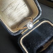 ※ 100年程前の古いお品になりますので、経年によるアンティーク品特有の微小なスレなどルーペで見てわかる程度にございます。ダイヤモンドはルーペでのぞくと内包物はありますが、肉眼でみえるものではなく、瑞々しい輝きを楽しませてくれます。カケや目立つキズはございません。