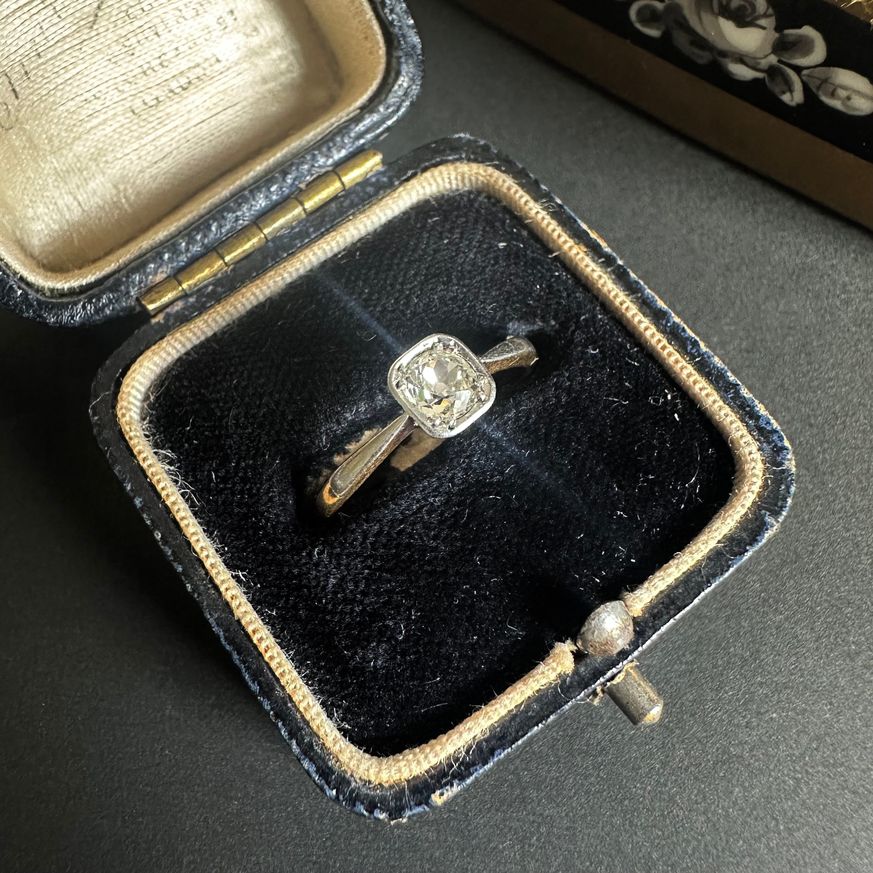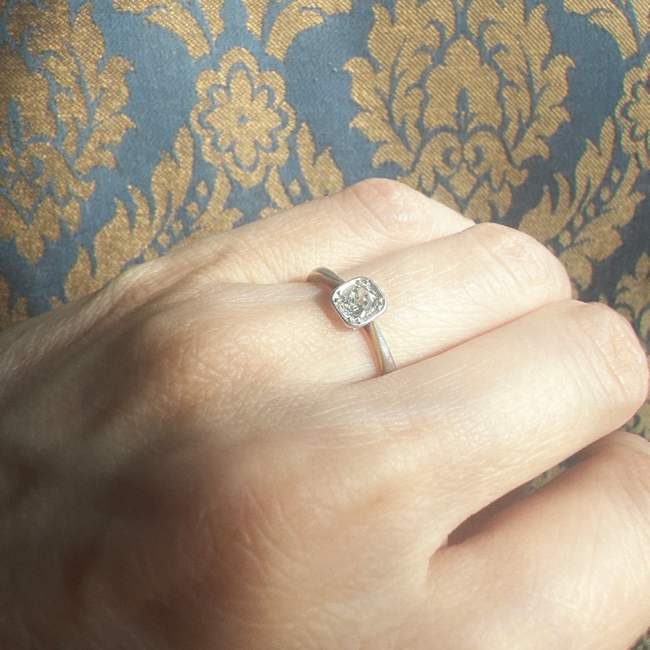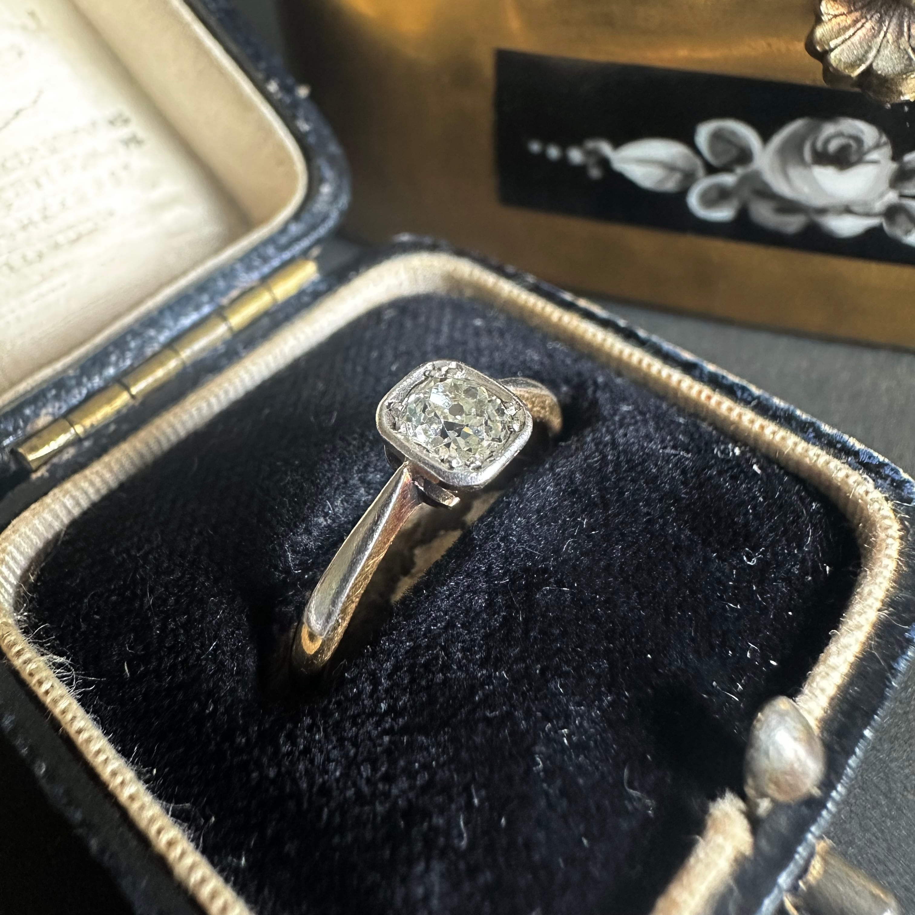 オープンキュレットのオールドカットダイヤモンドが、しっとりとした輝きを湛えるソリテールリングのご紹介です。