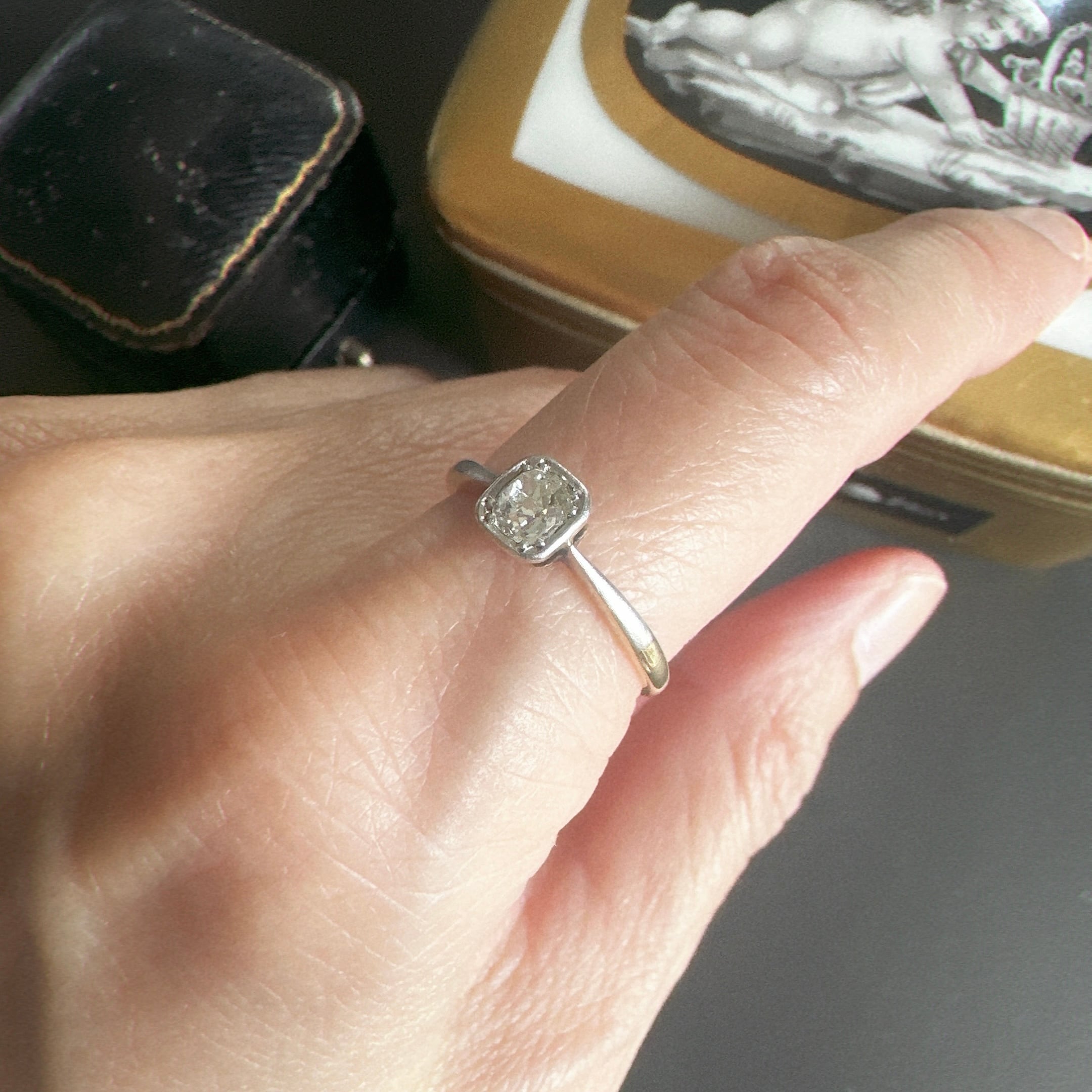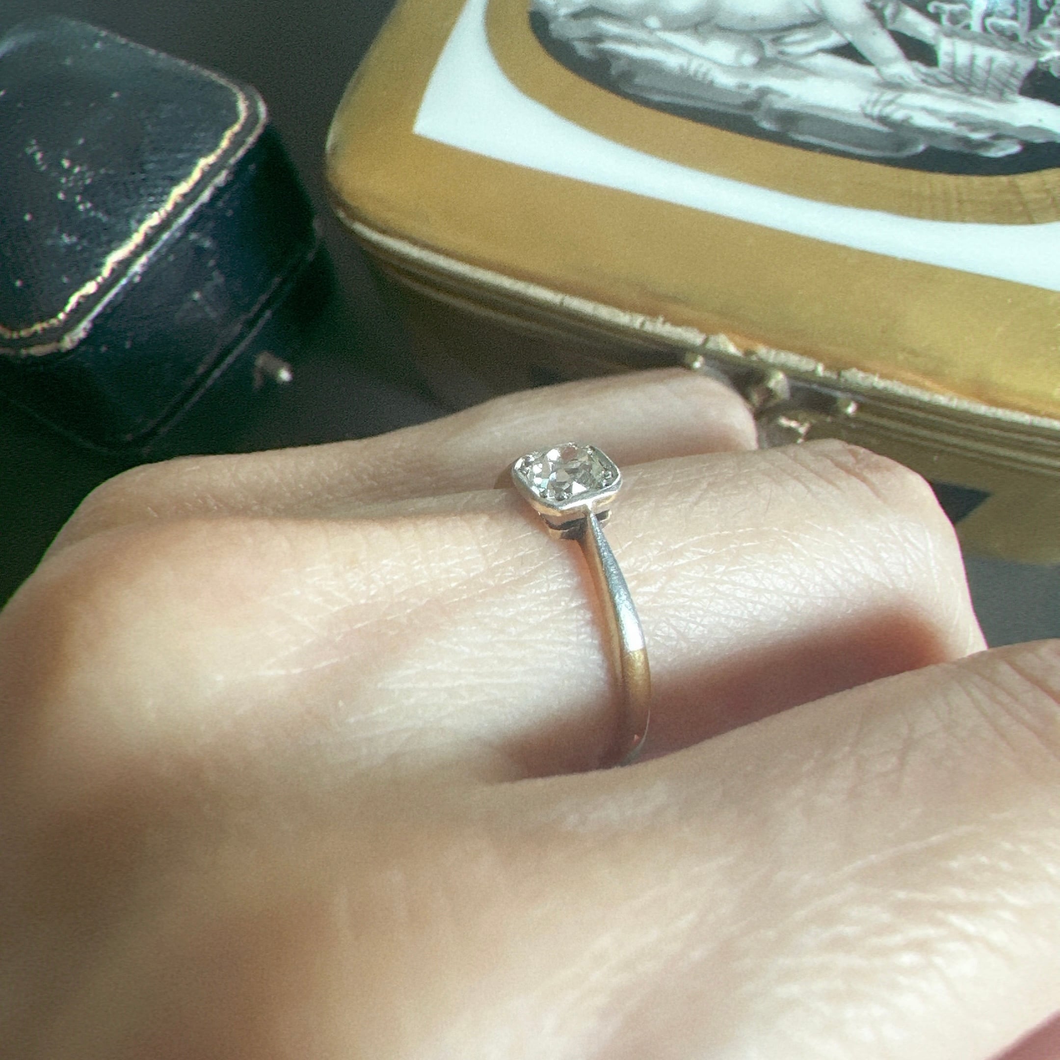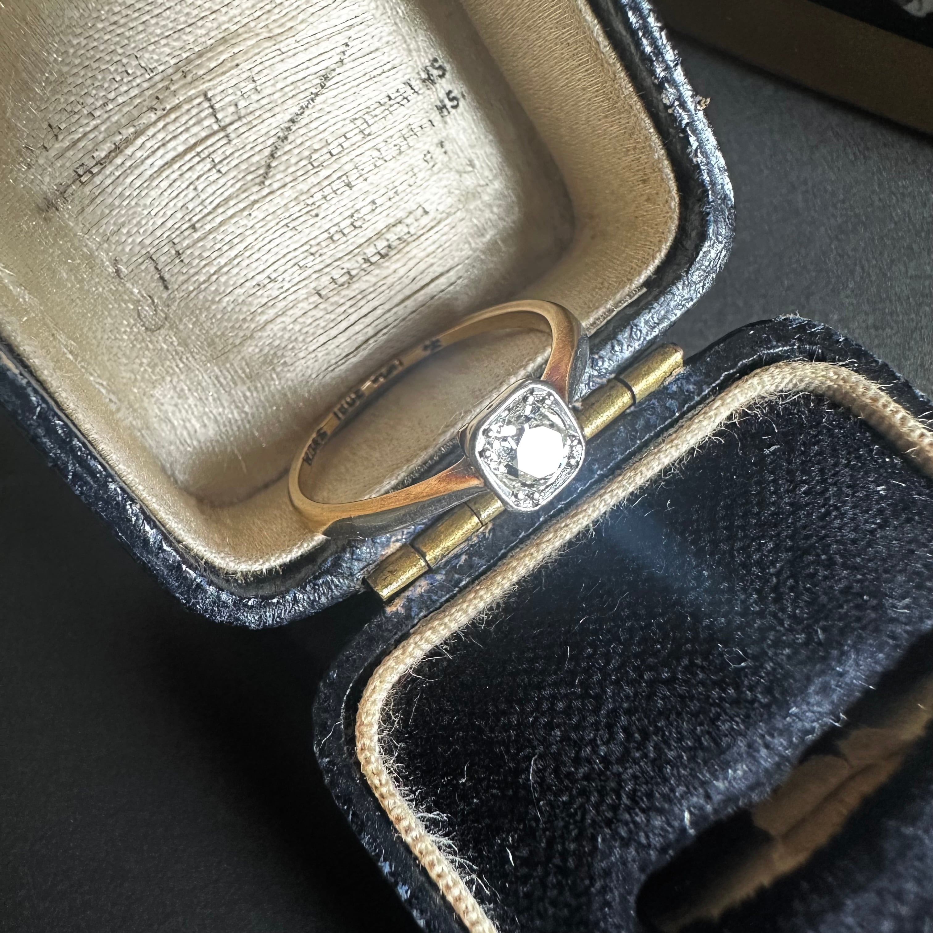 オープンキュレットのオールドカットダイヤモンドが、しっとりとした輝きを湛えるソリテールリングのご紹介です。