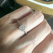 枠はダイヤモンドを包み込むようなベゼルセッティングで、控えめながら石の存在感を際立たせていますね。