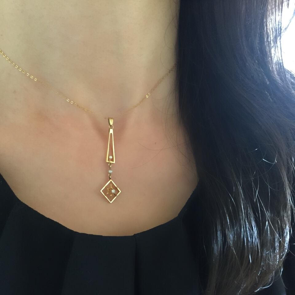 まるで線香花火の一瞬をデザインしたようなダイヤモンドのペンダントはアール・デコ期に製作されたと思われます。