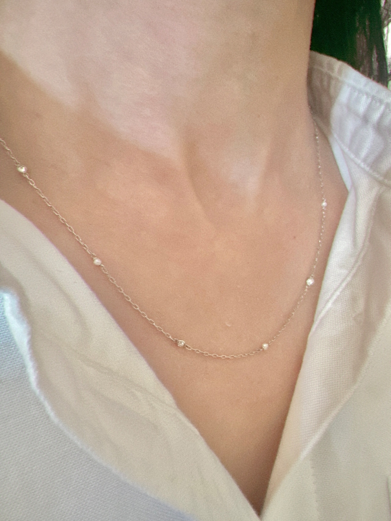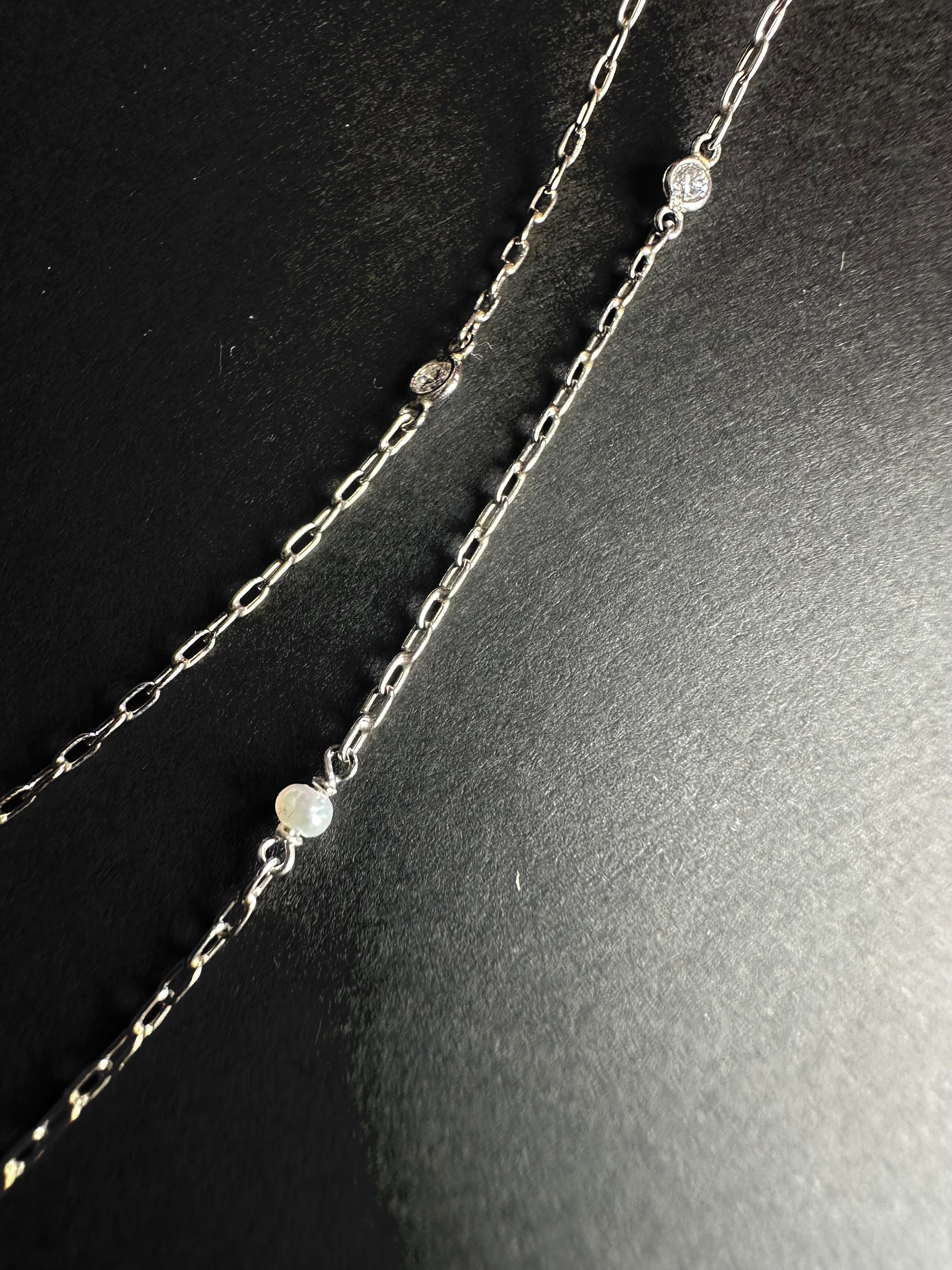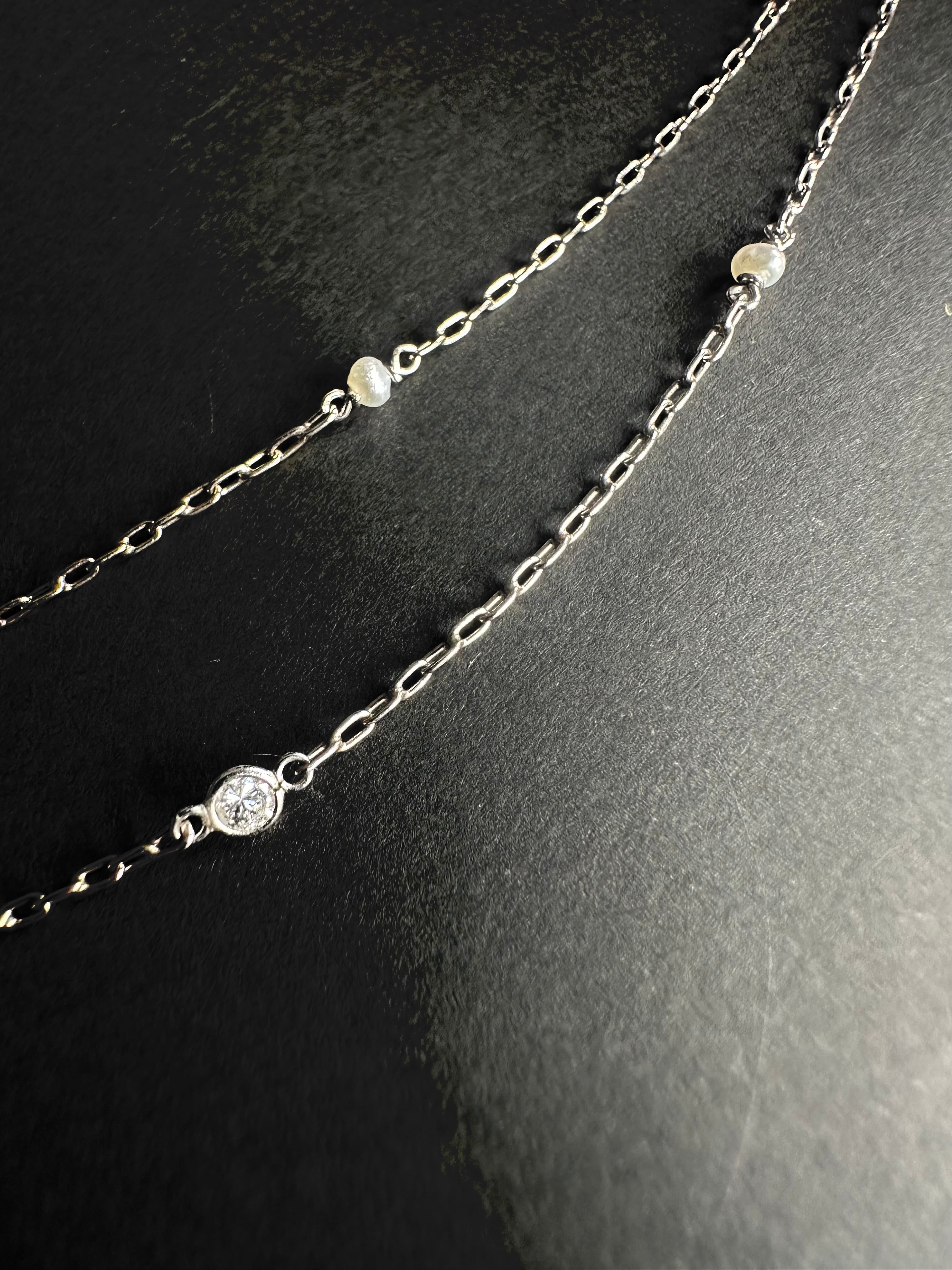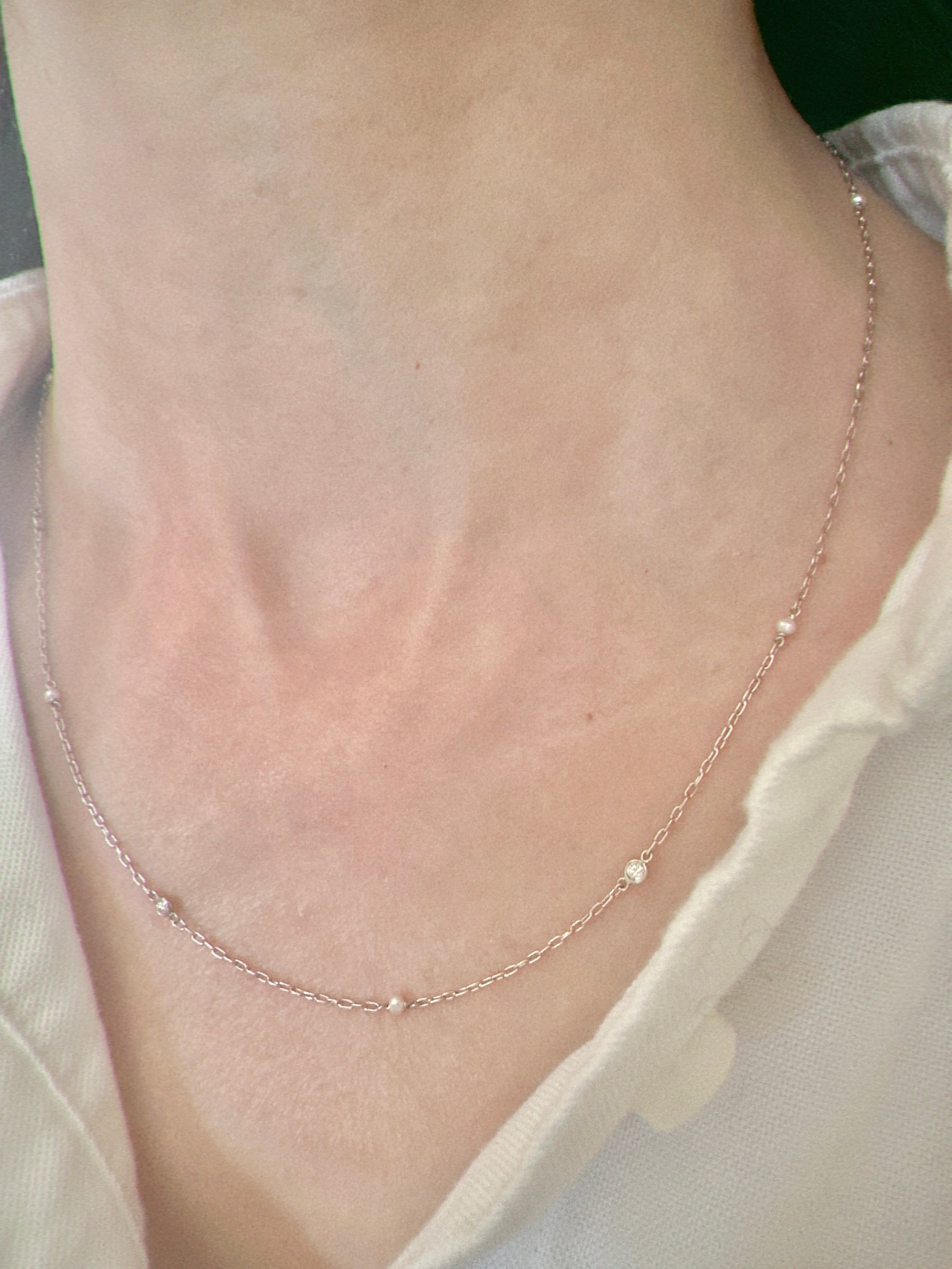 小さな小さなパール&ダイヤモンドのチェーンネックレス