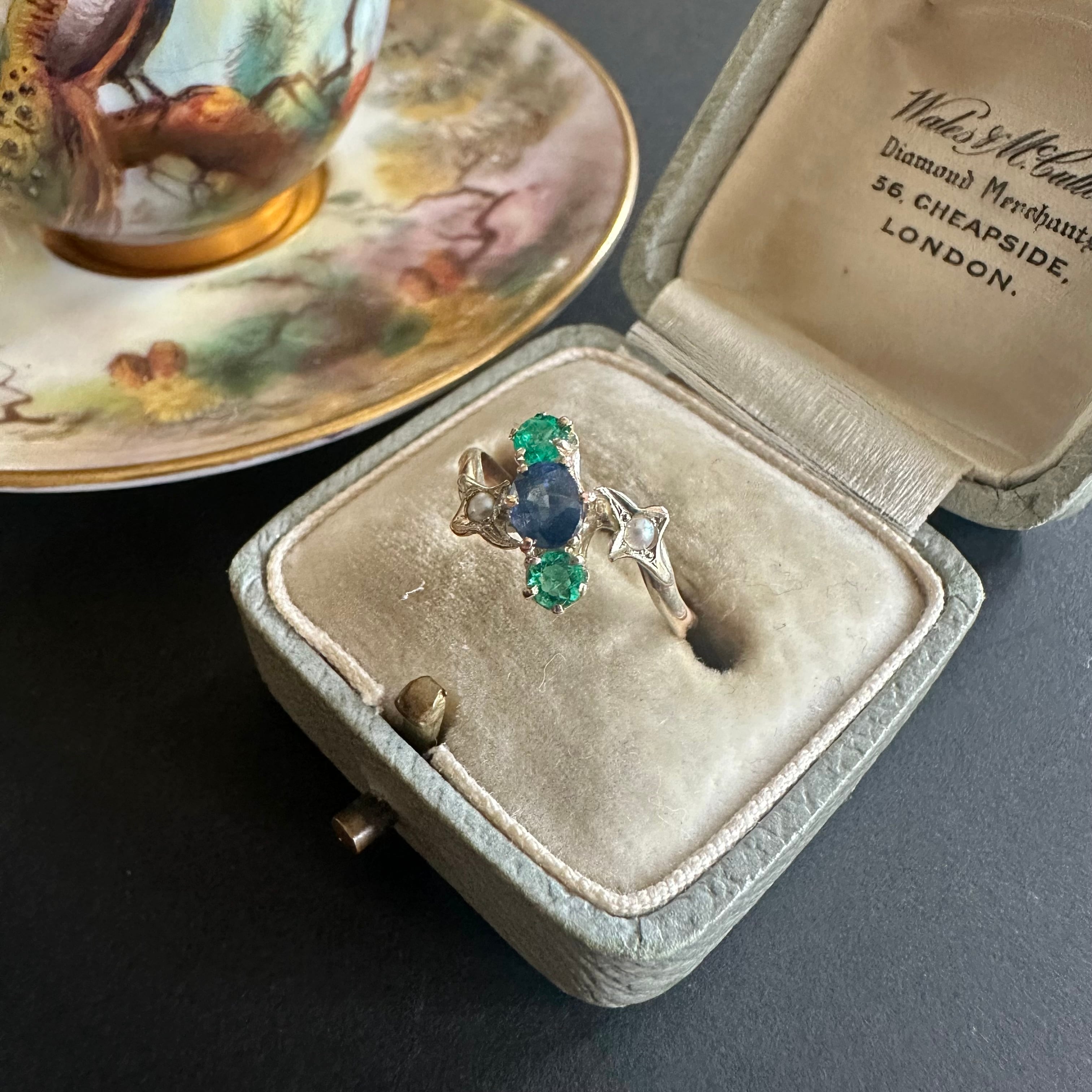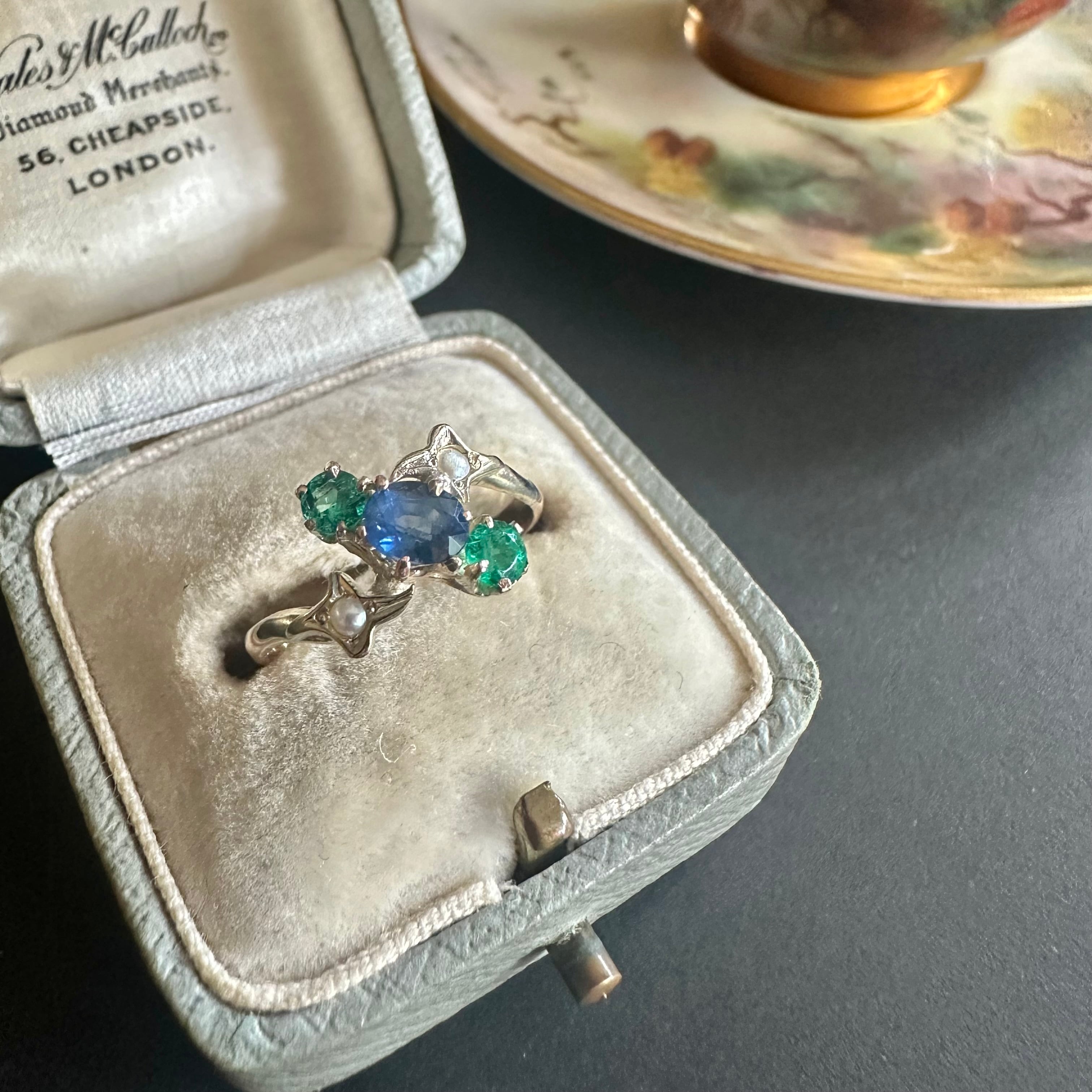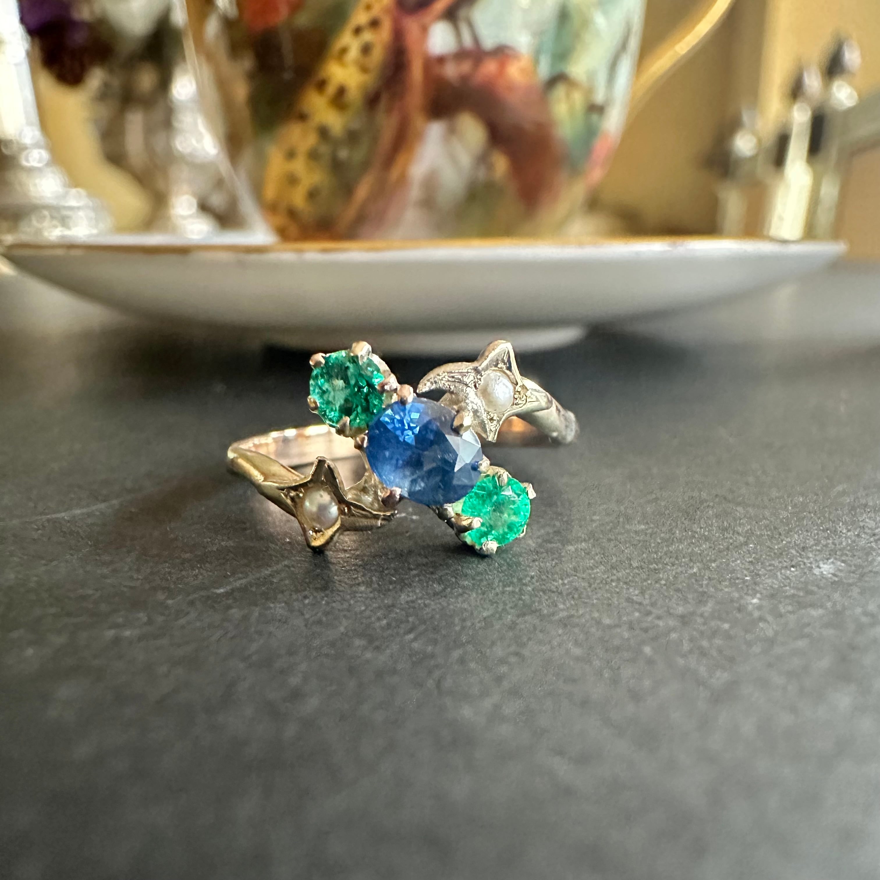 星座のような19世紀末サファイア&エメラルドトリロジーリング