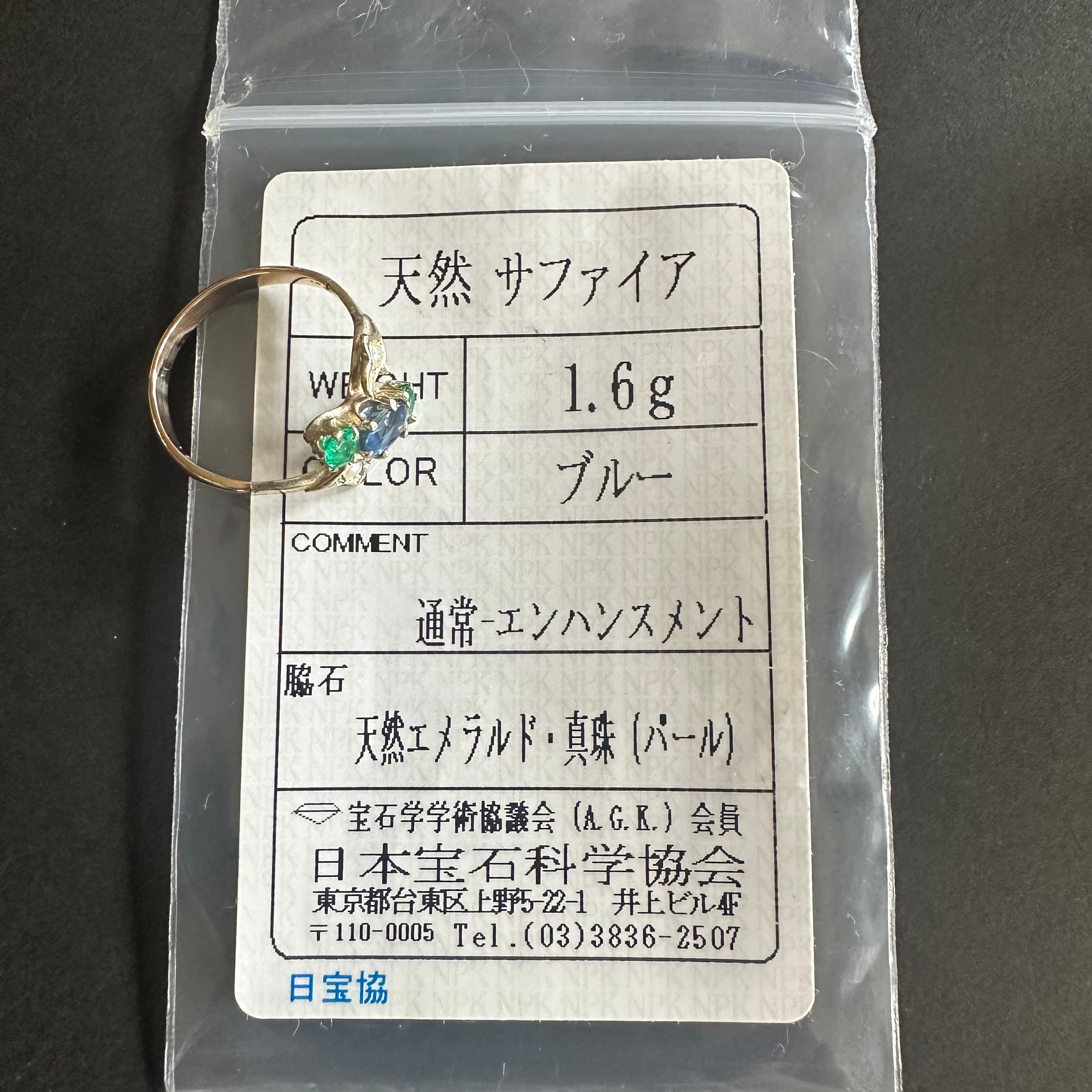 素材 サファイア、エメラルド、9金