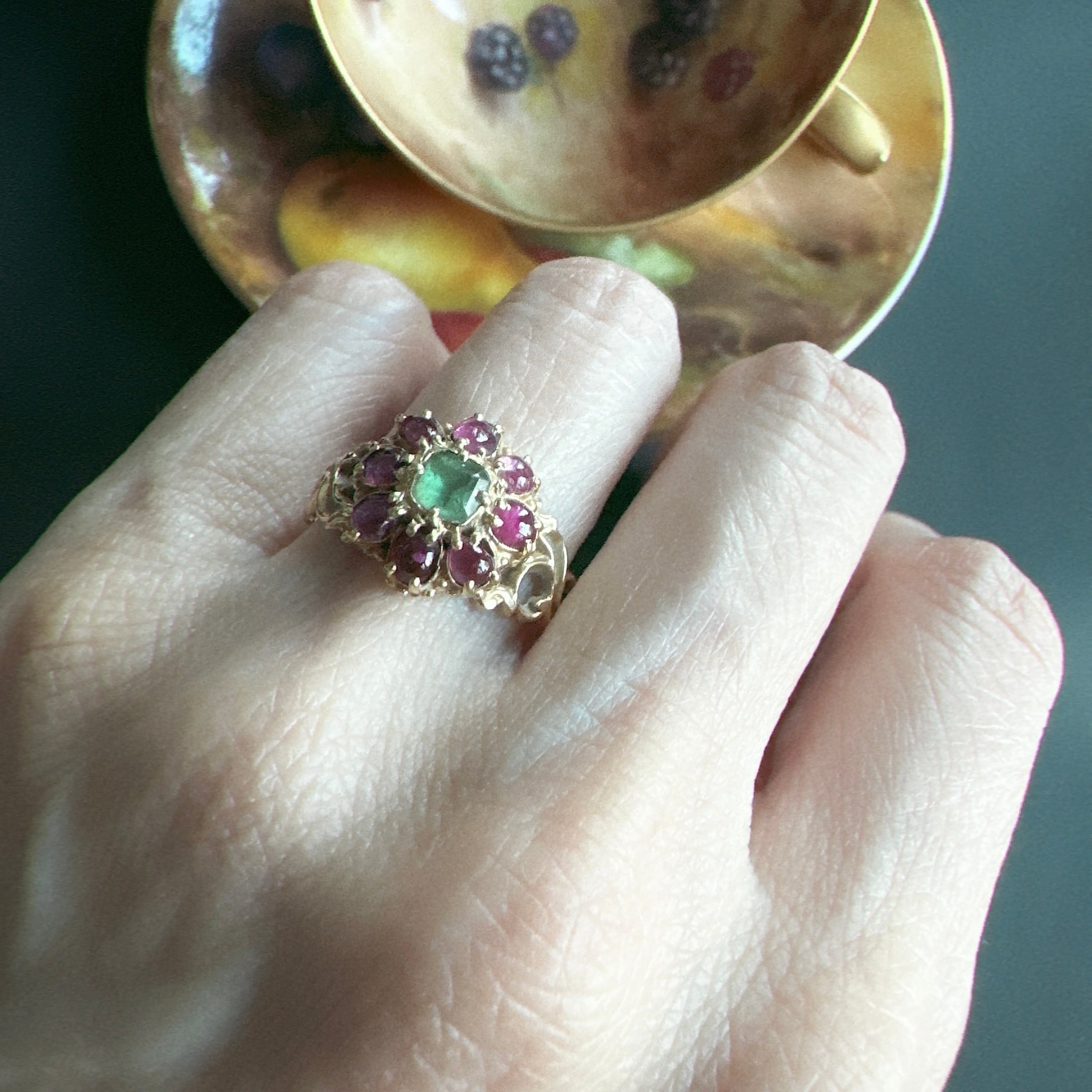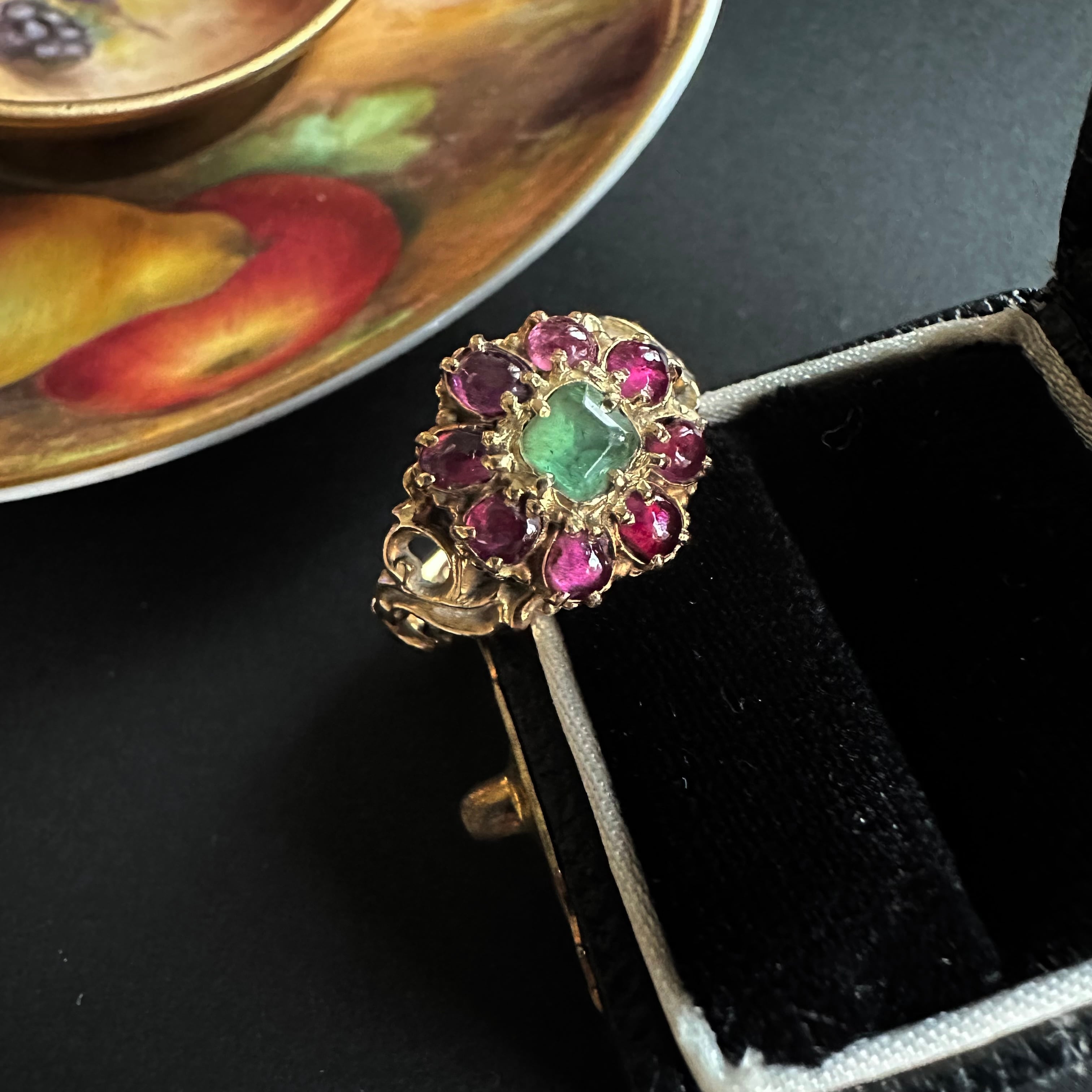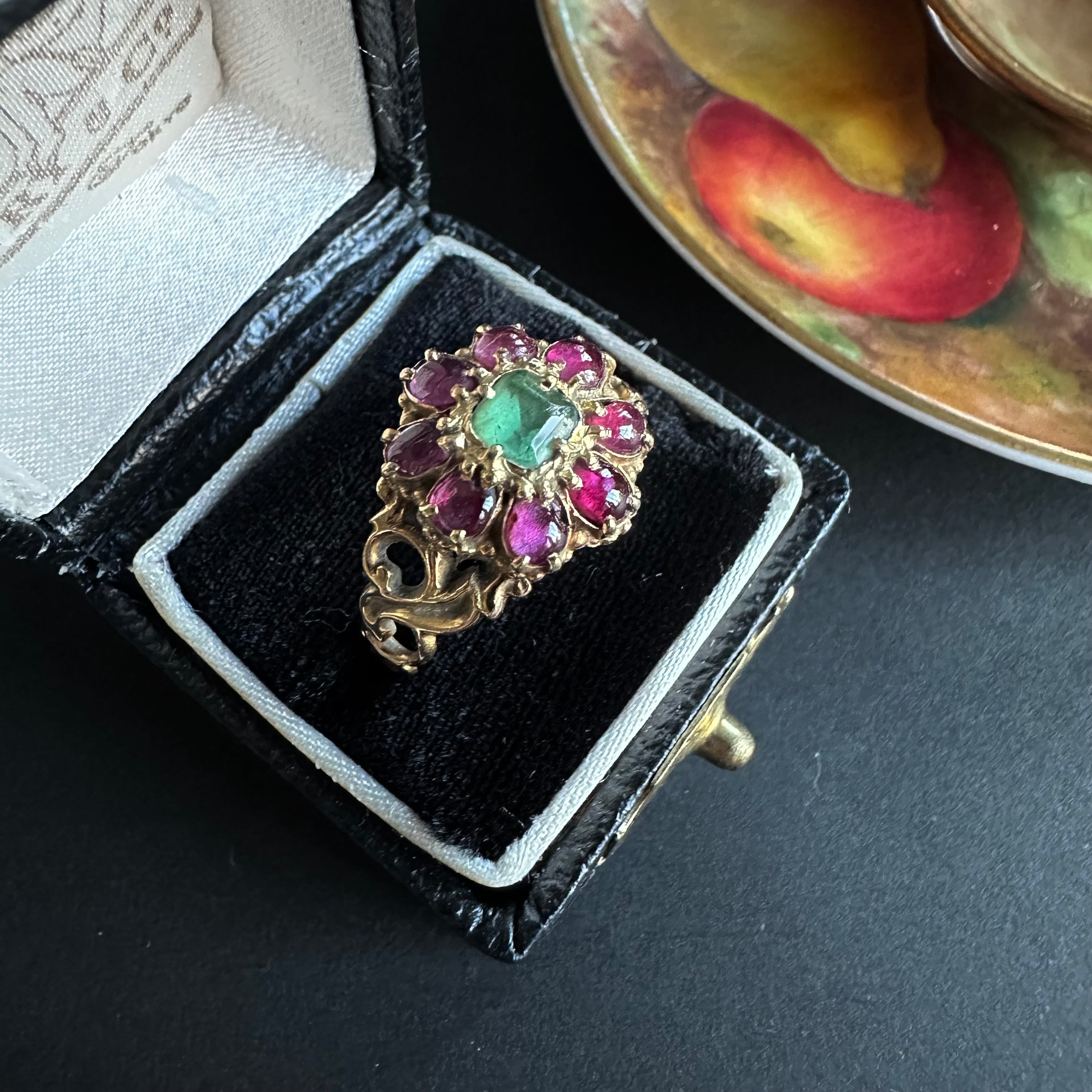 1848年 エメラルド & ルビーの花冠リング(15金)