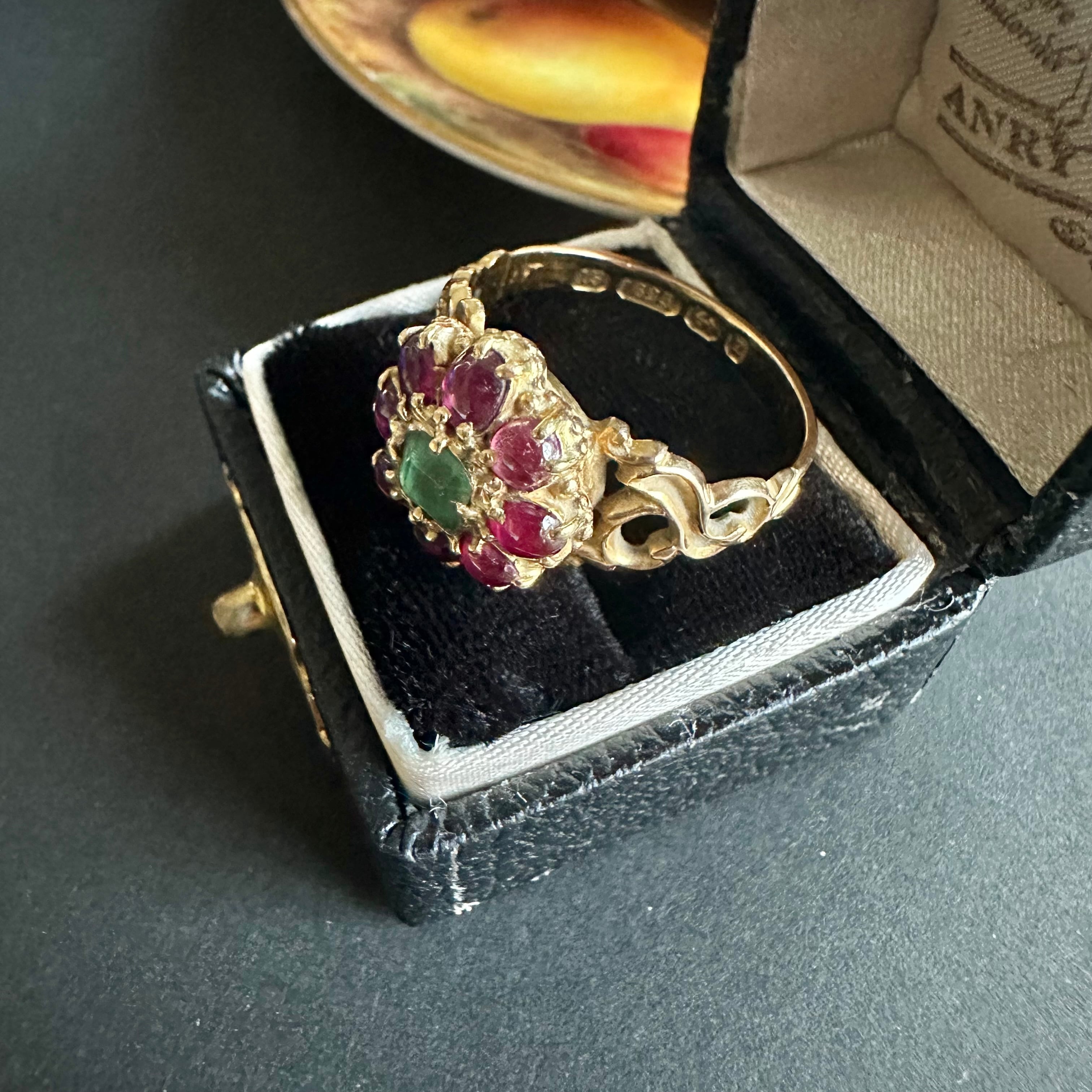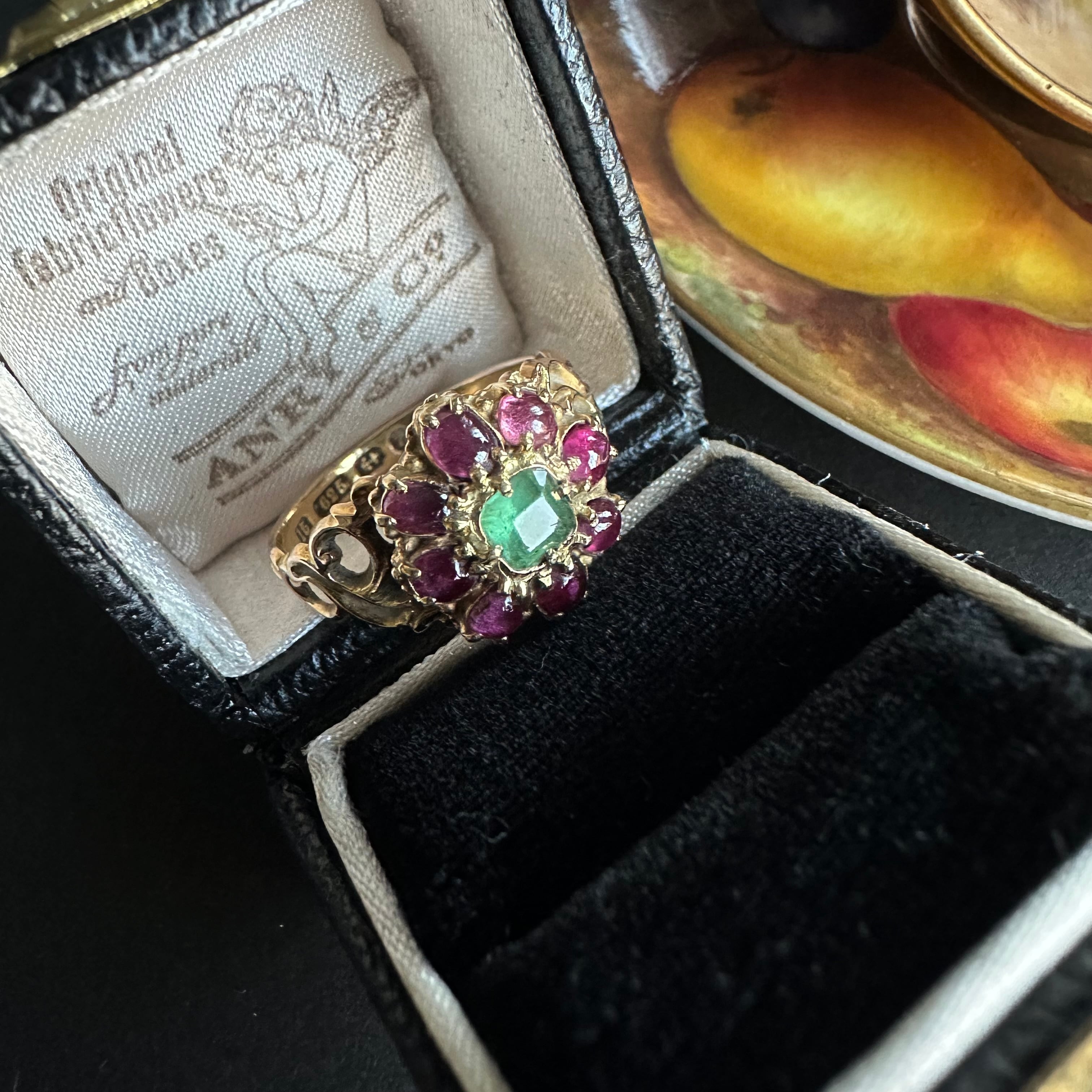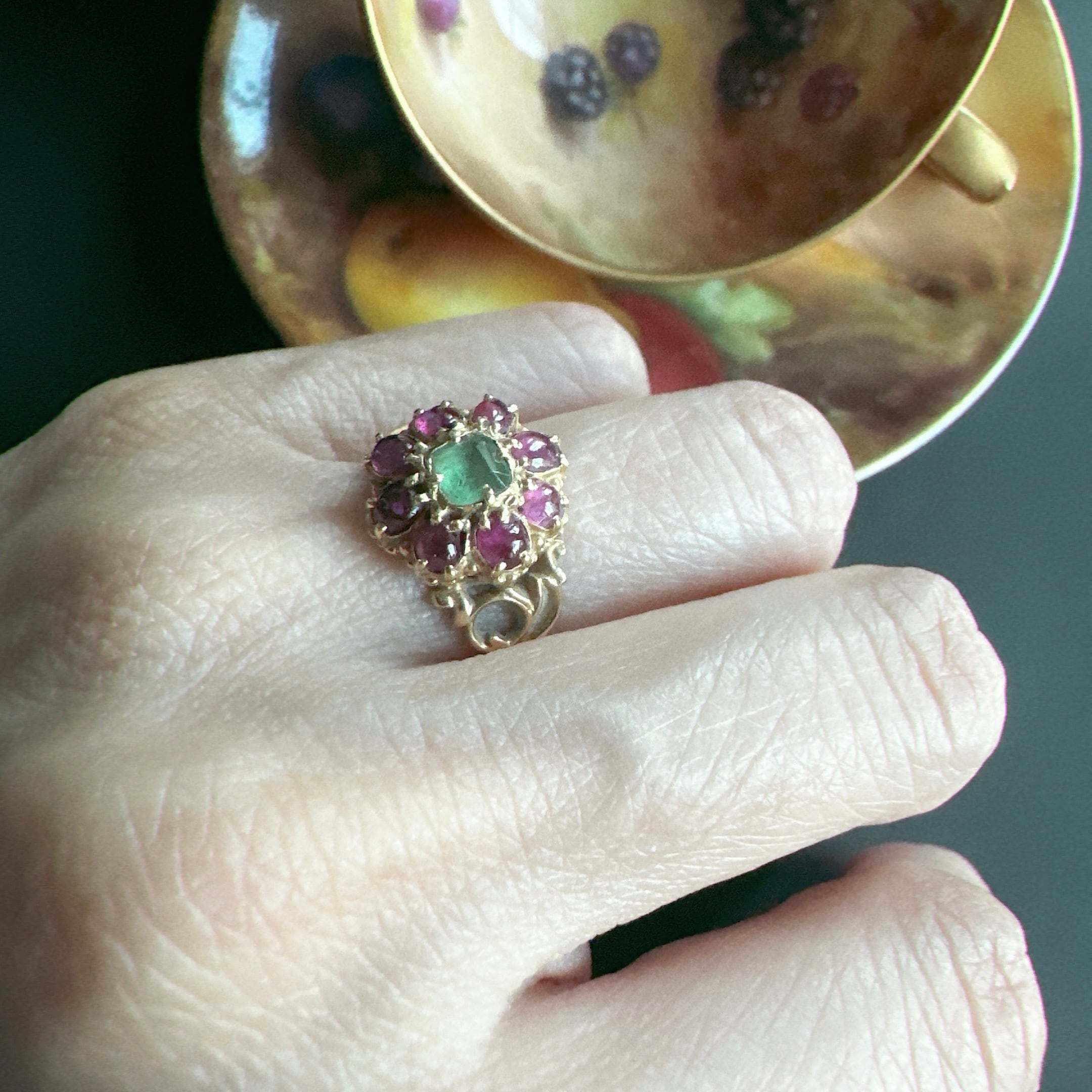 1848年 エメラルド & ルビーの花冠リング(15金)