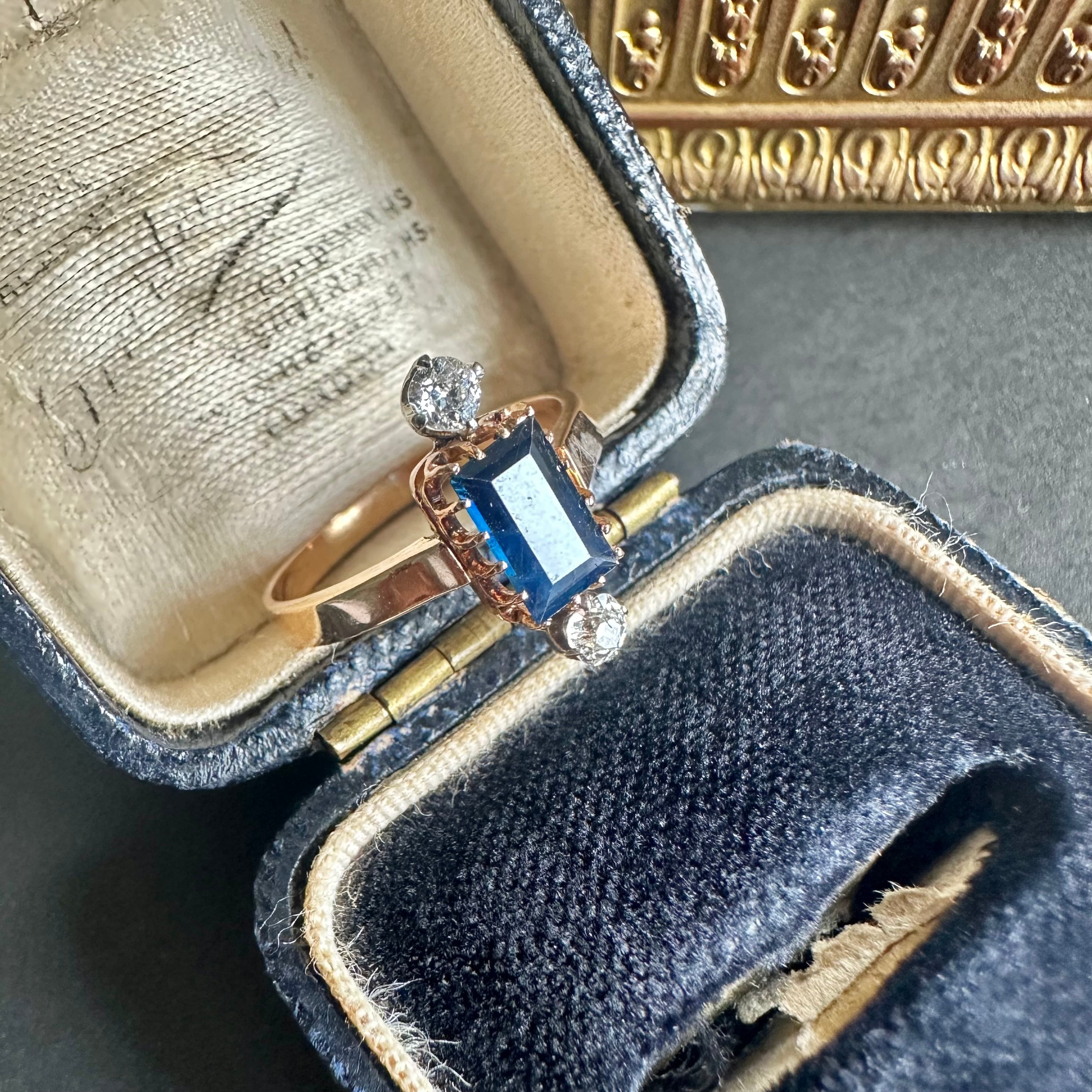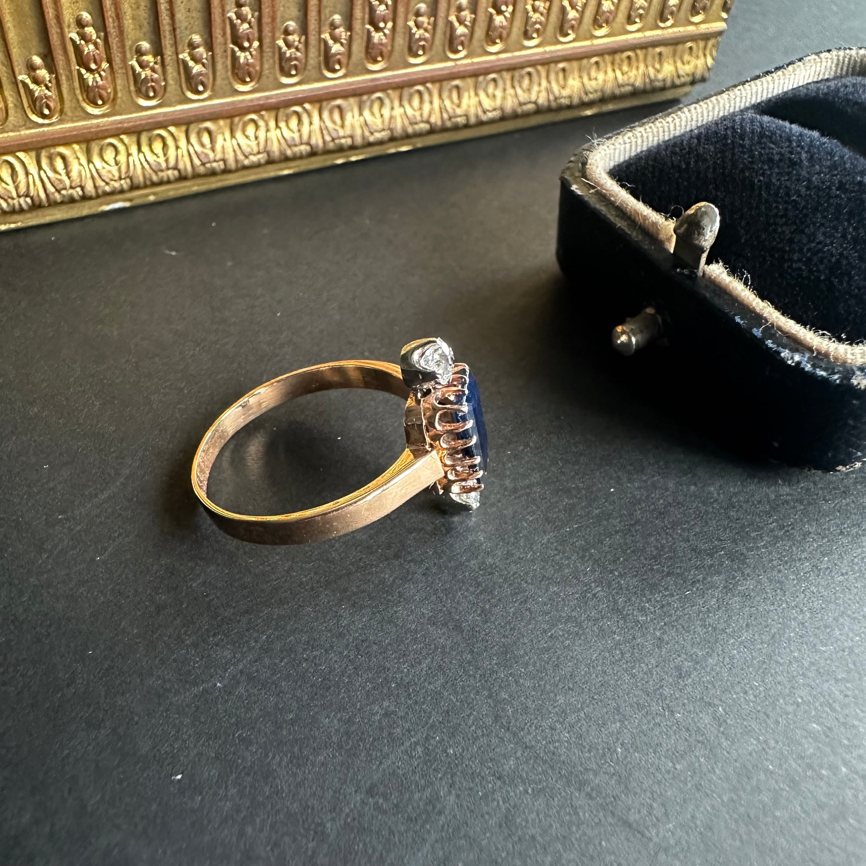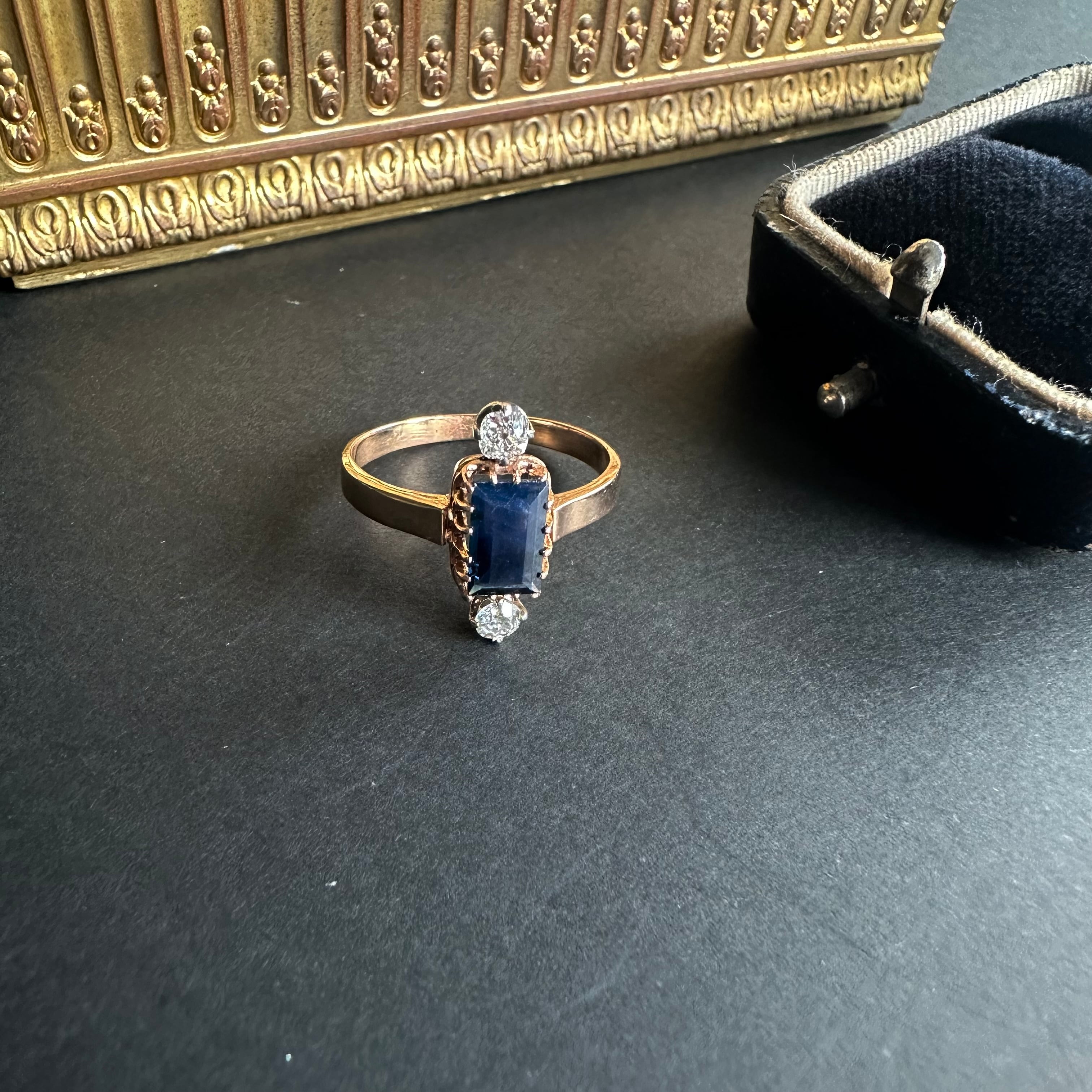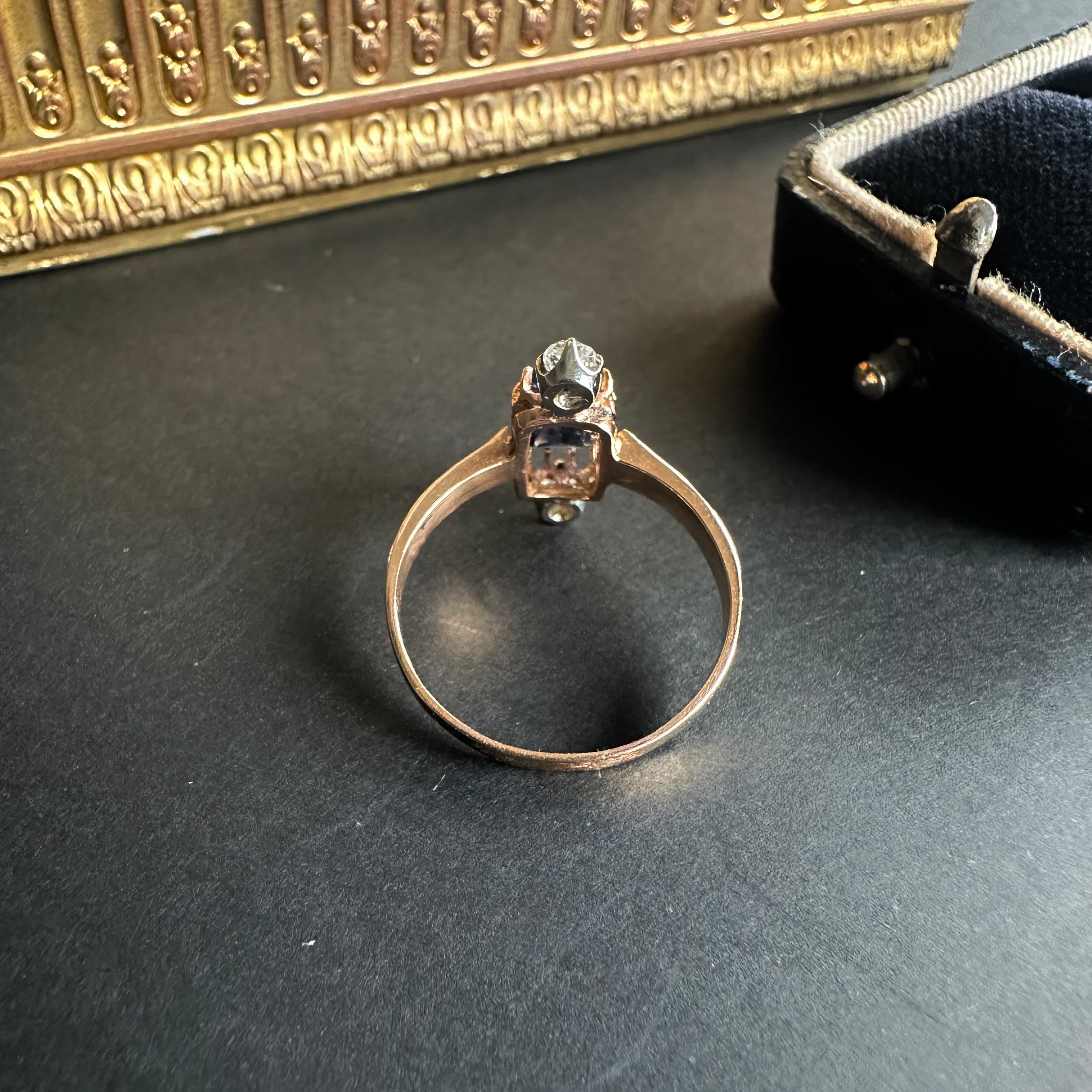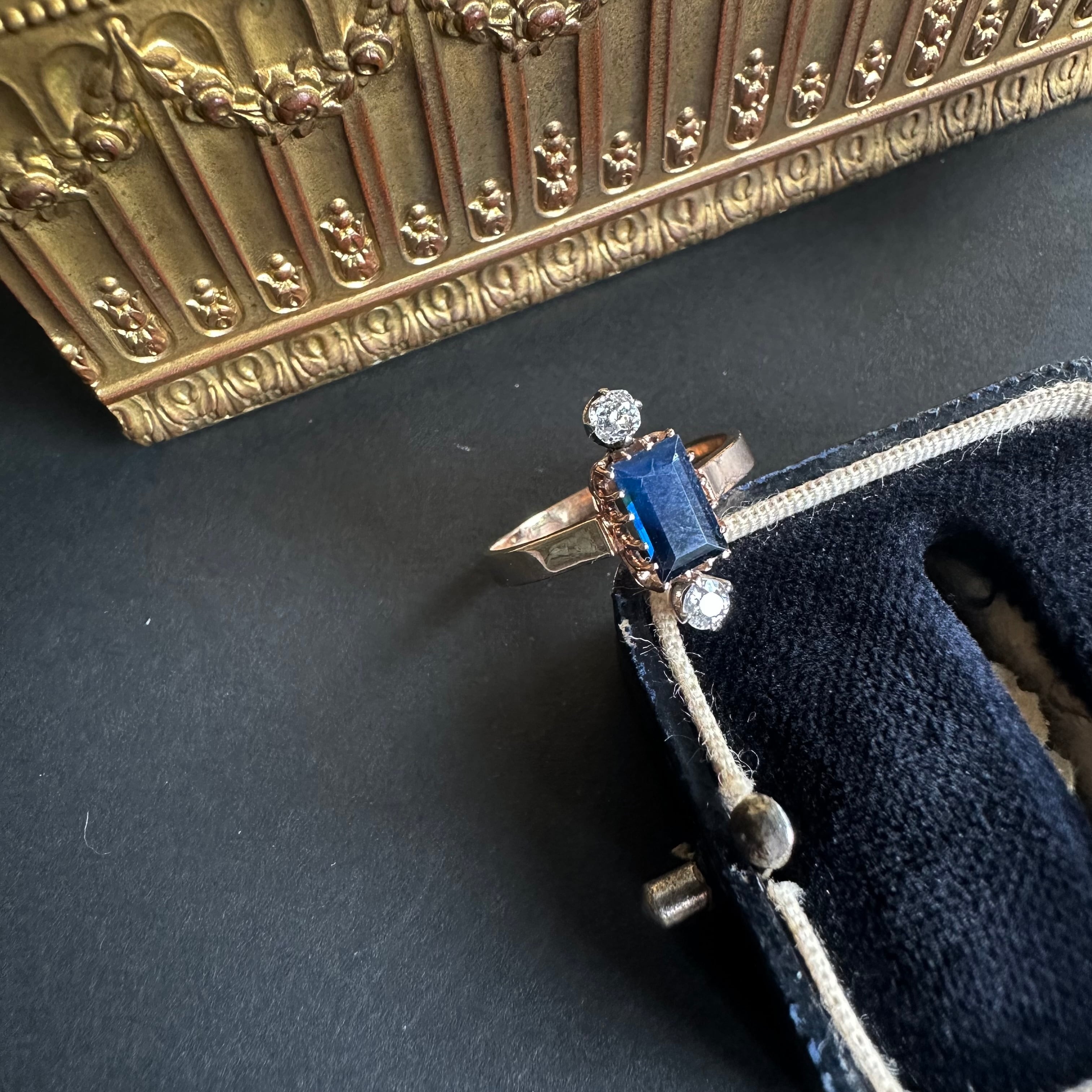 サファイア&オールドカットダイヤモンドヴィクトリアンリング