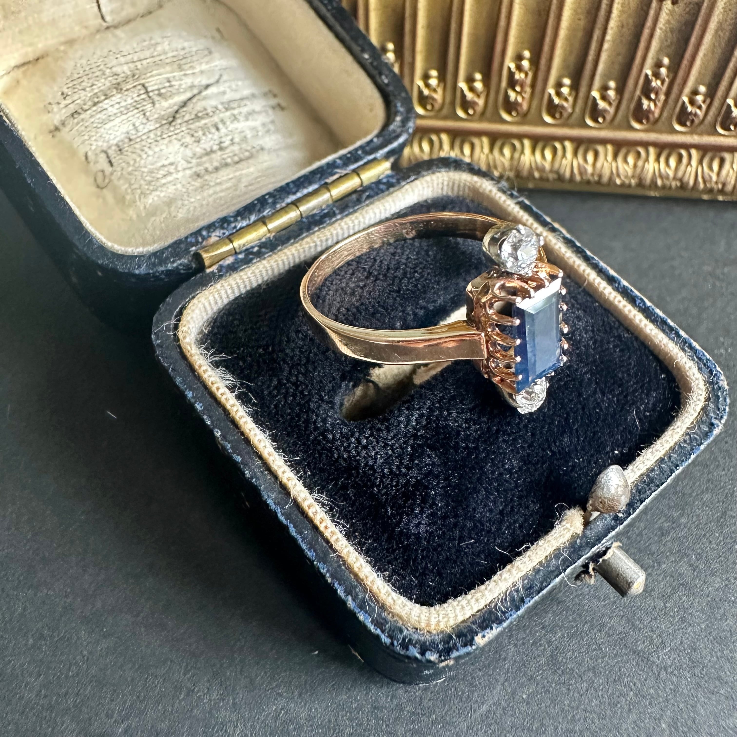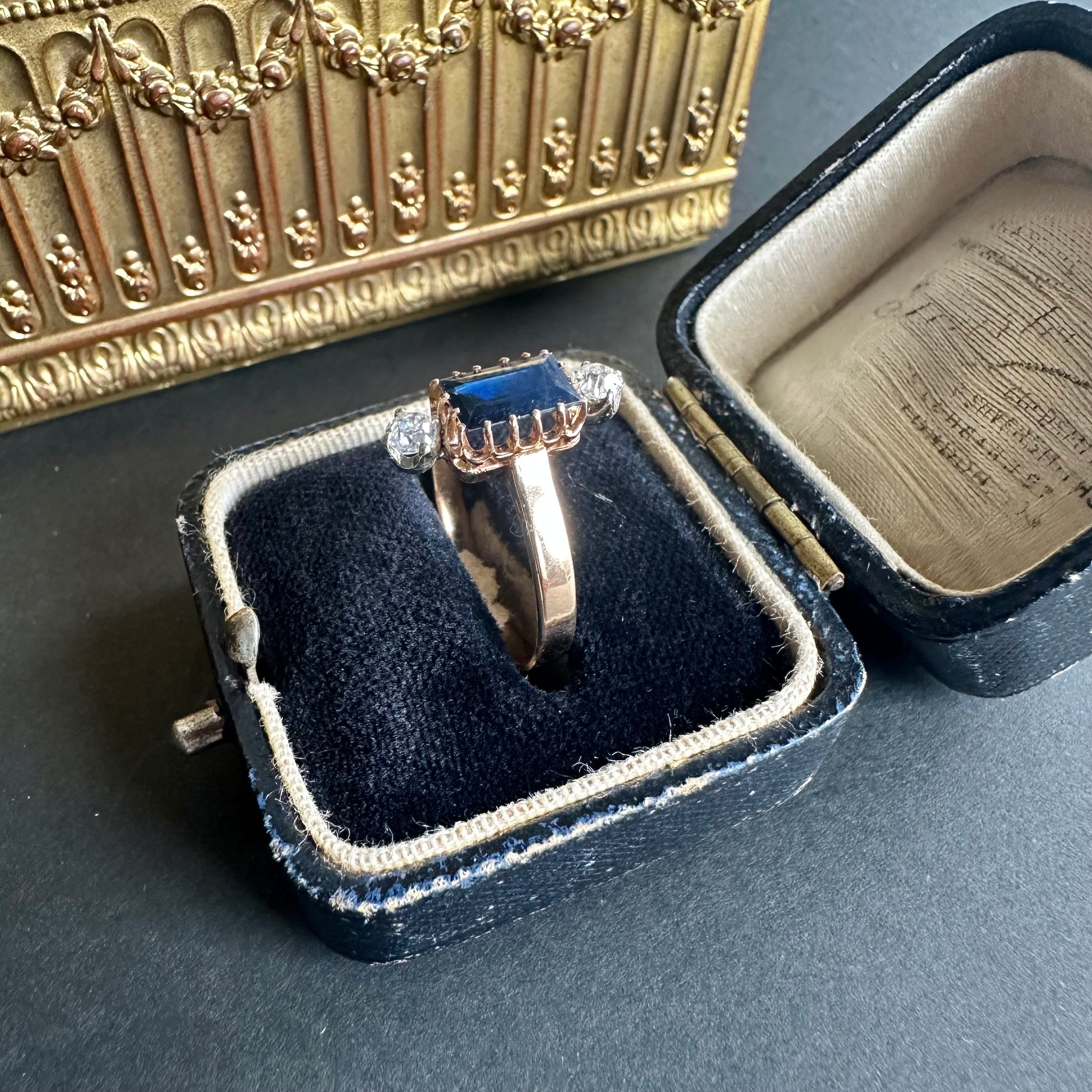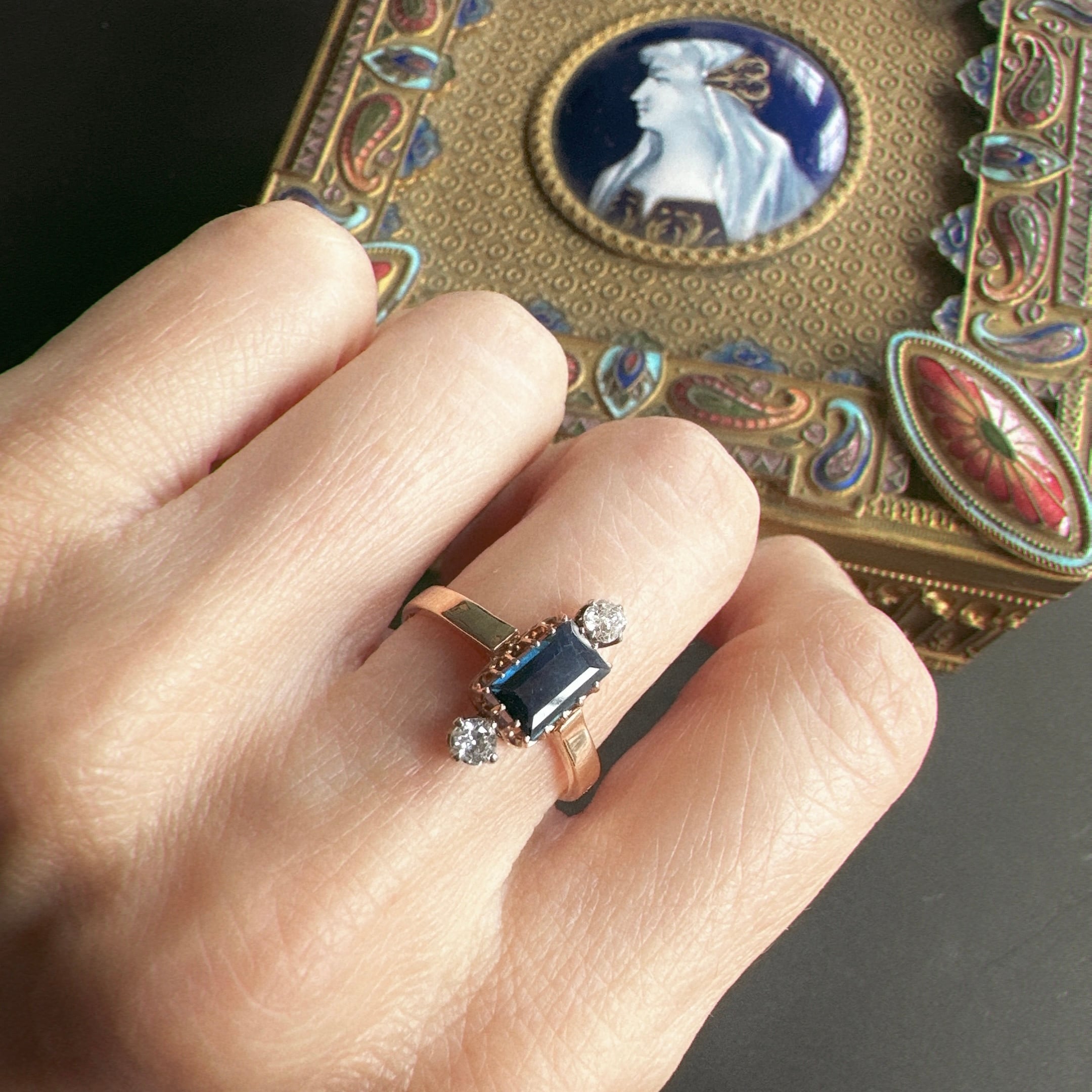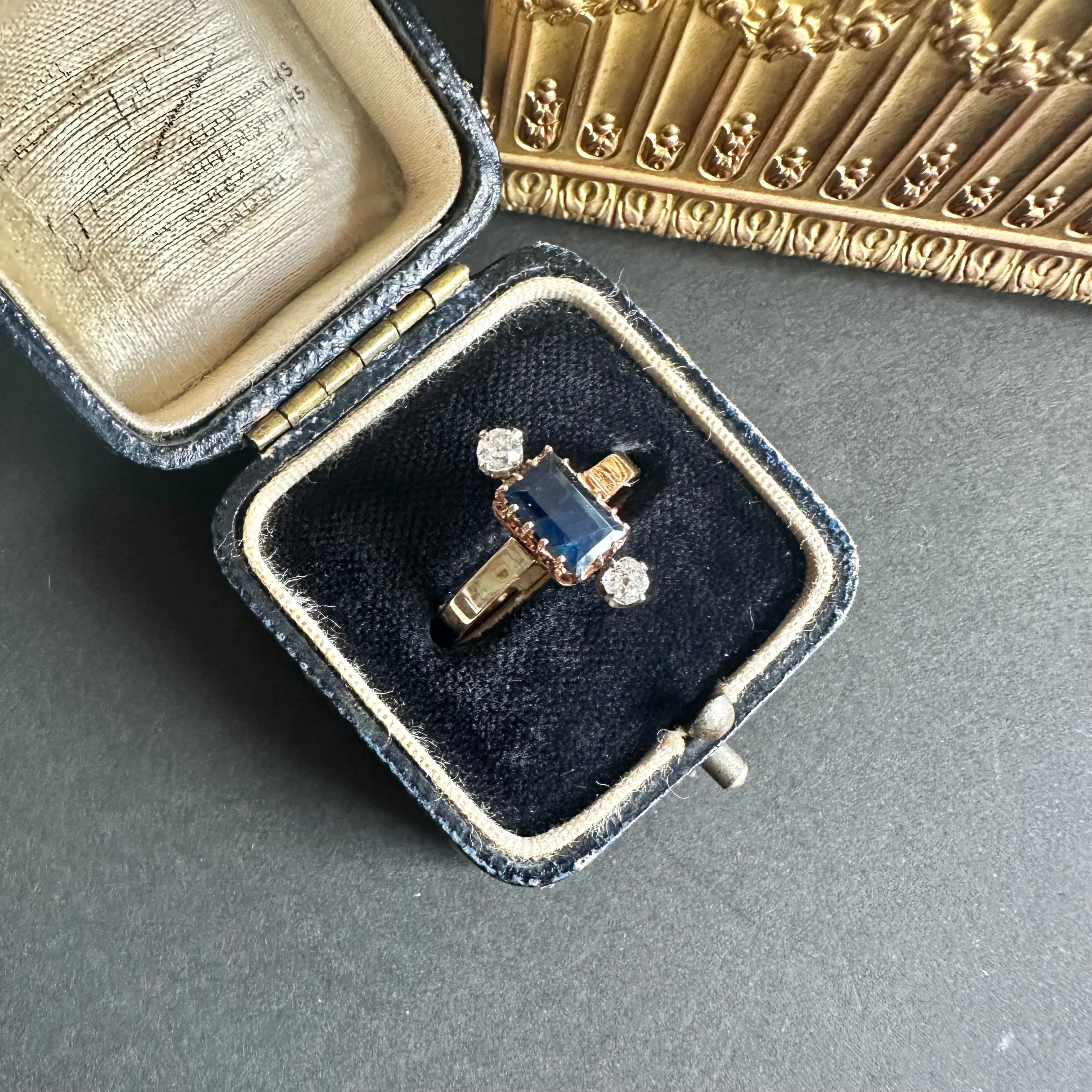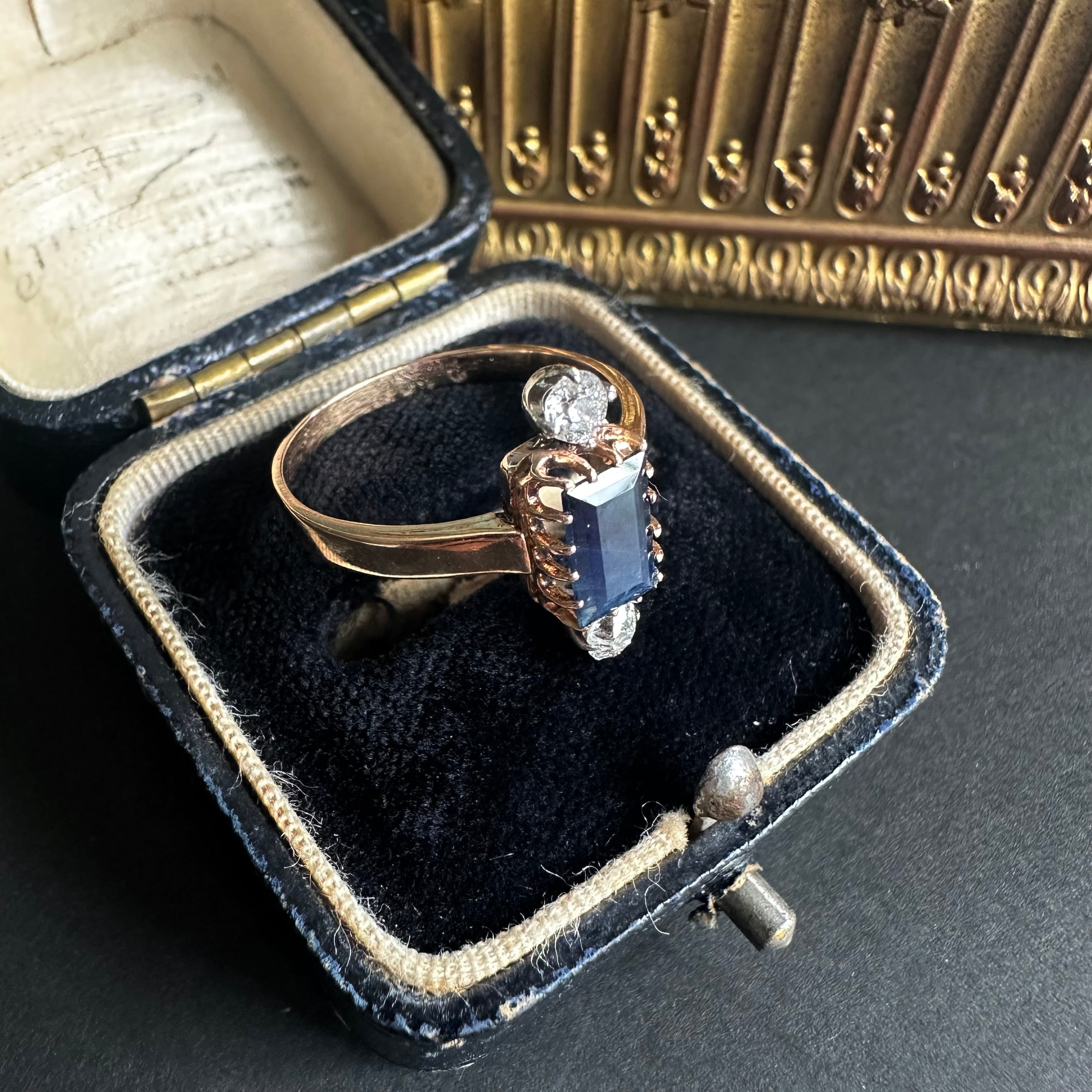 サファイア&オールドカットダイヤモンドヴィクトリアンリング