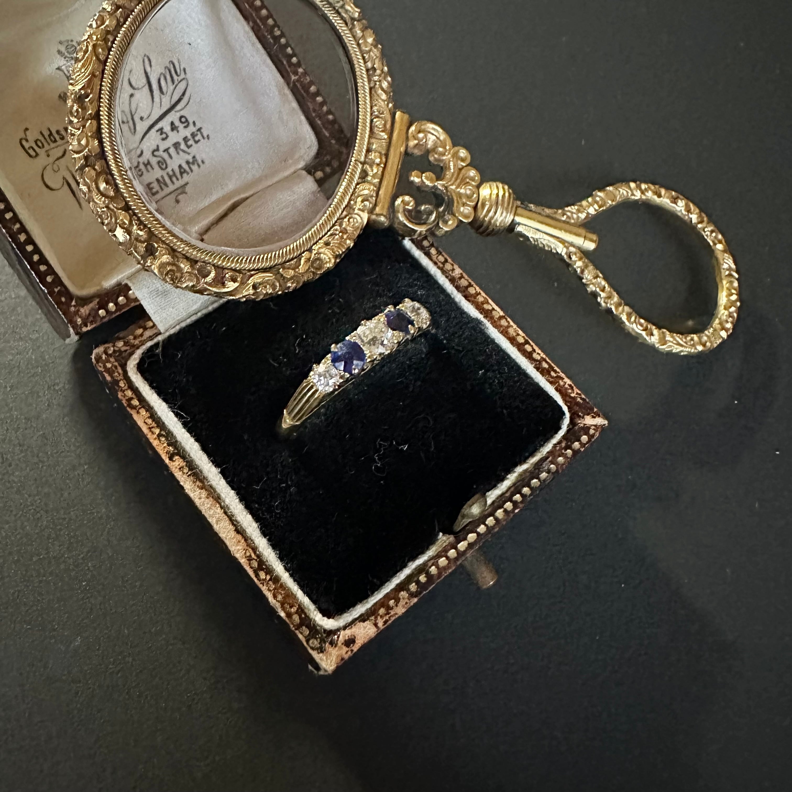 サファイア&オールドカットダイヤモンドのファイブストーンリング
