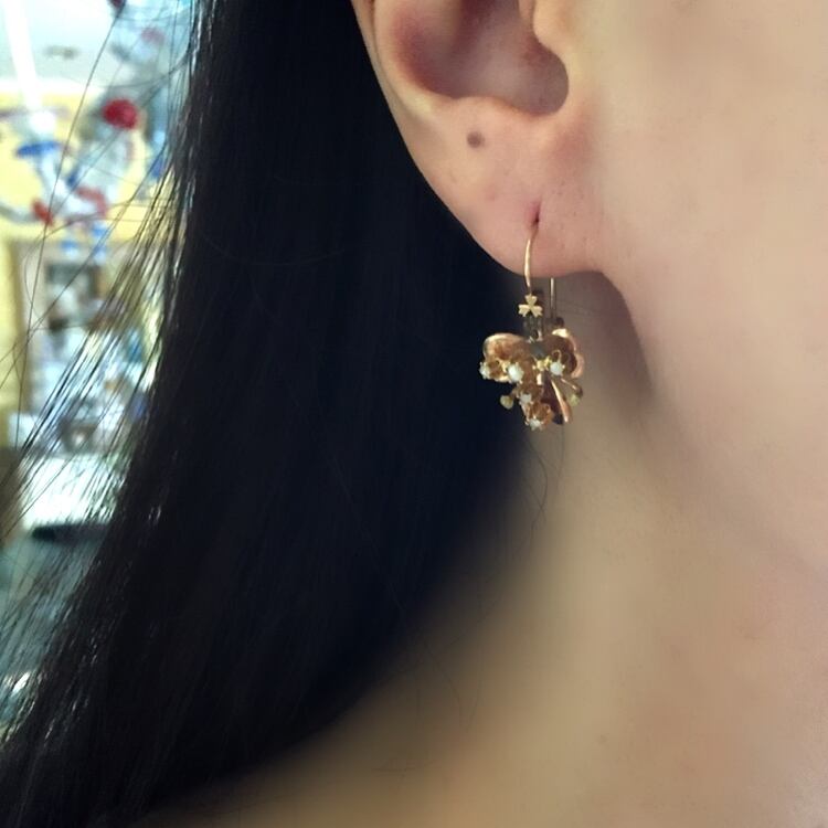 アイルランドの国花であるシャムロックの可愛らしいピアスは19世紀後半に制作されたものです。