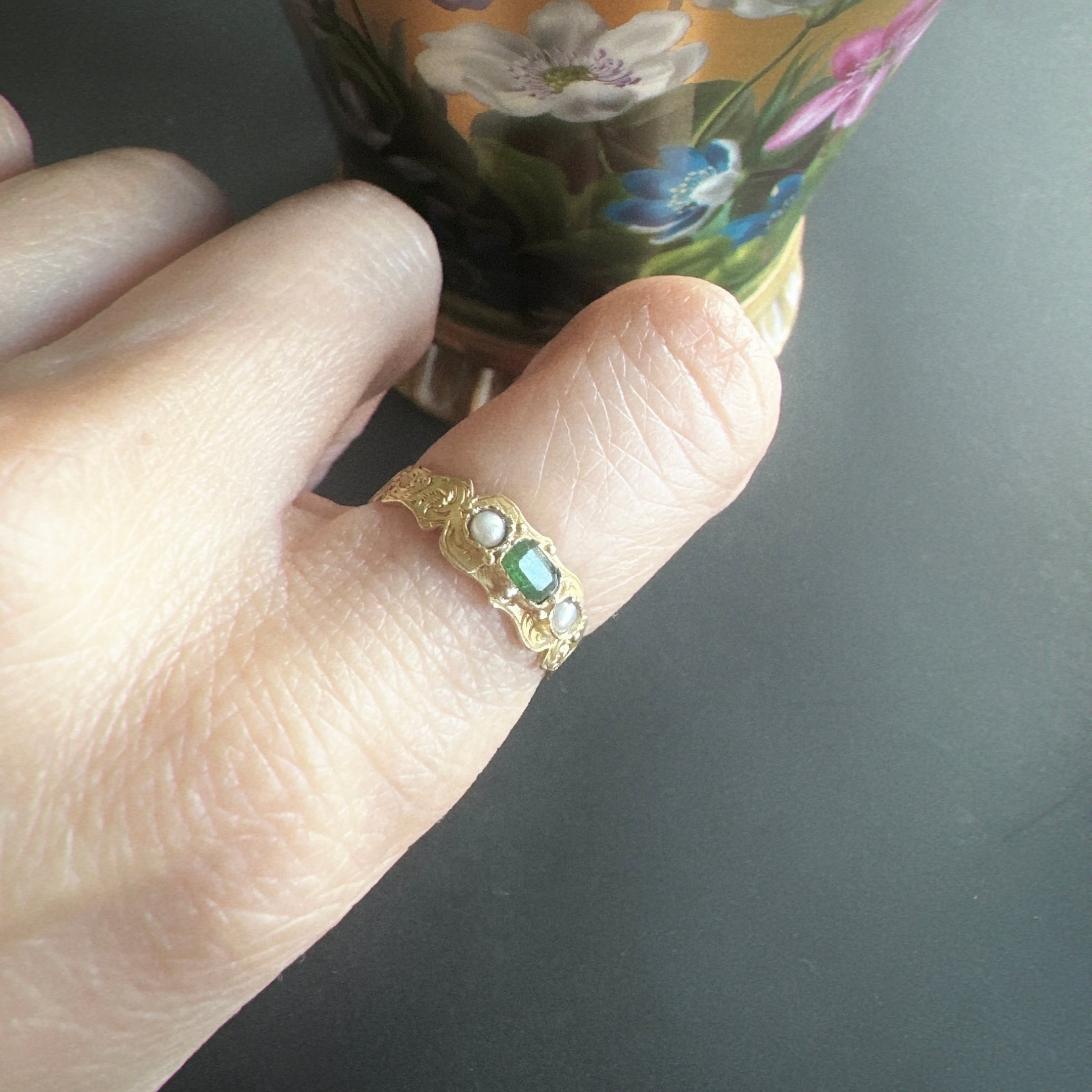 小さなリングに宿るのは、ヴィクトリア時代ならではの美の積層です。