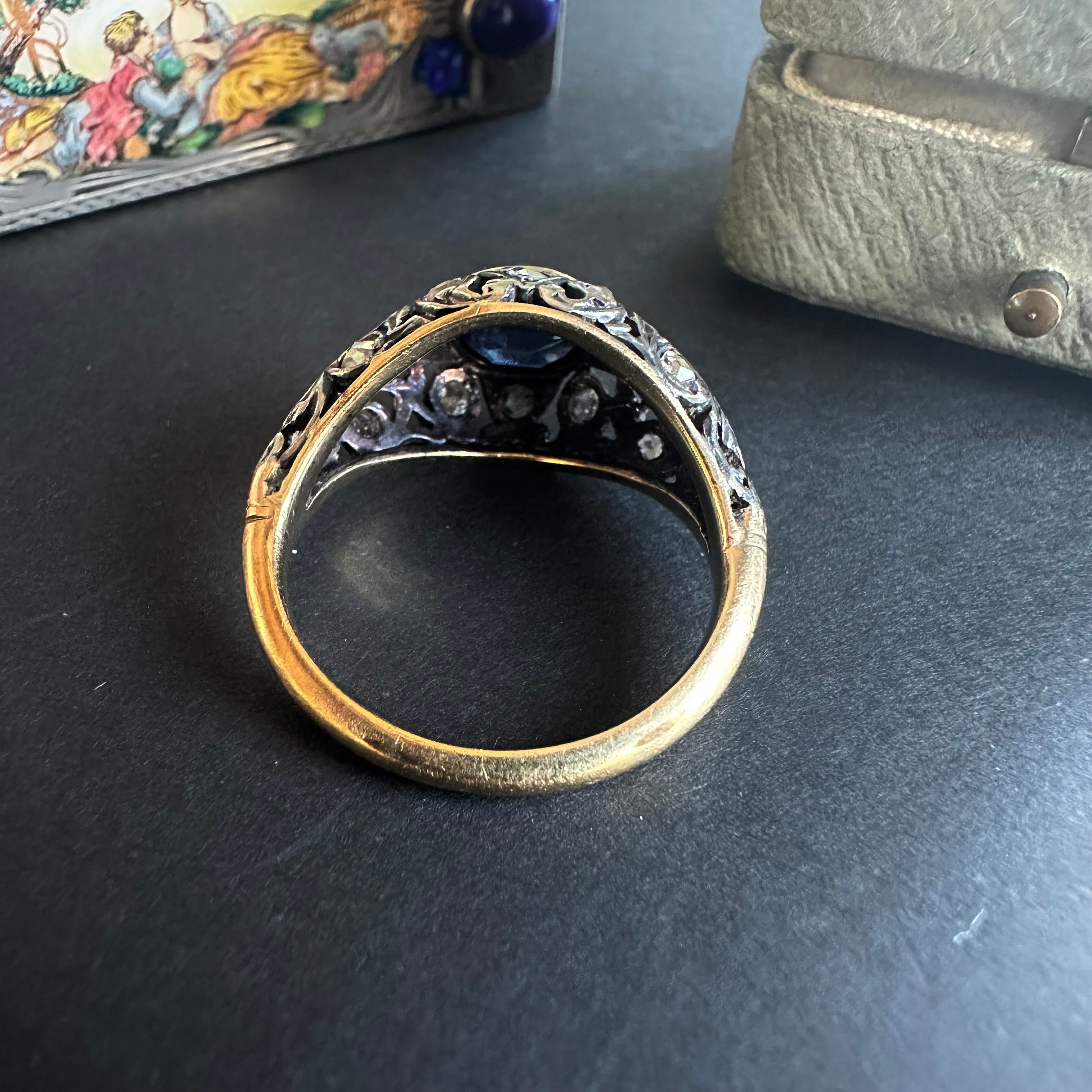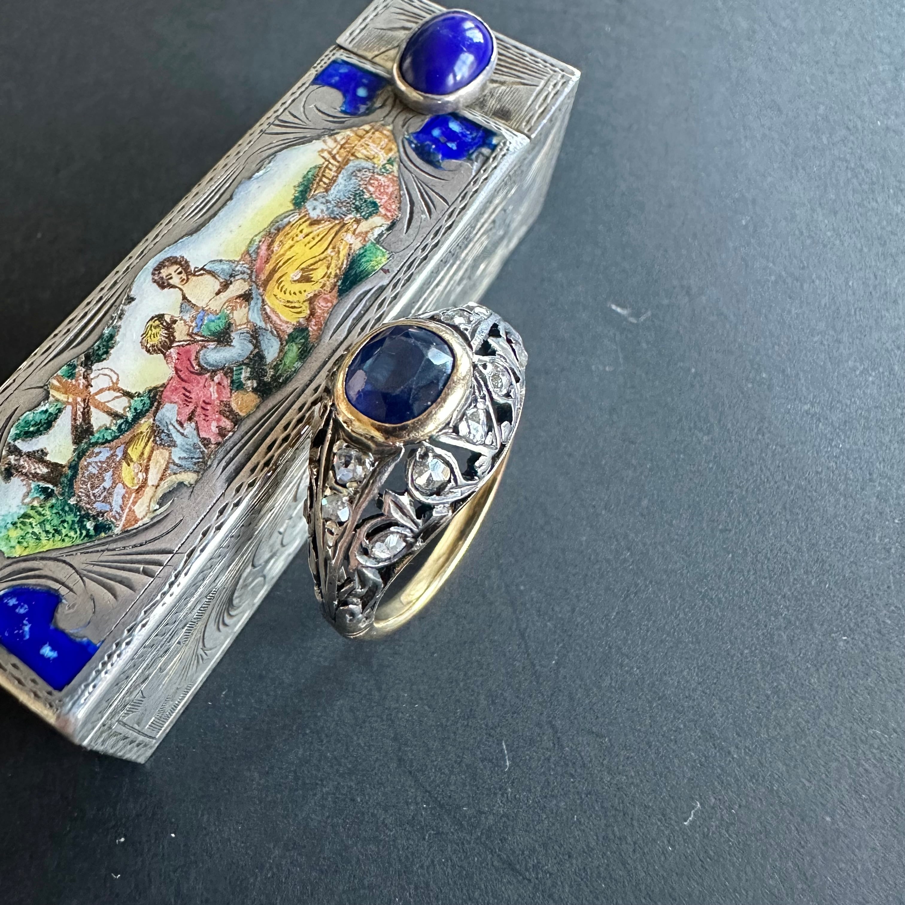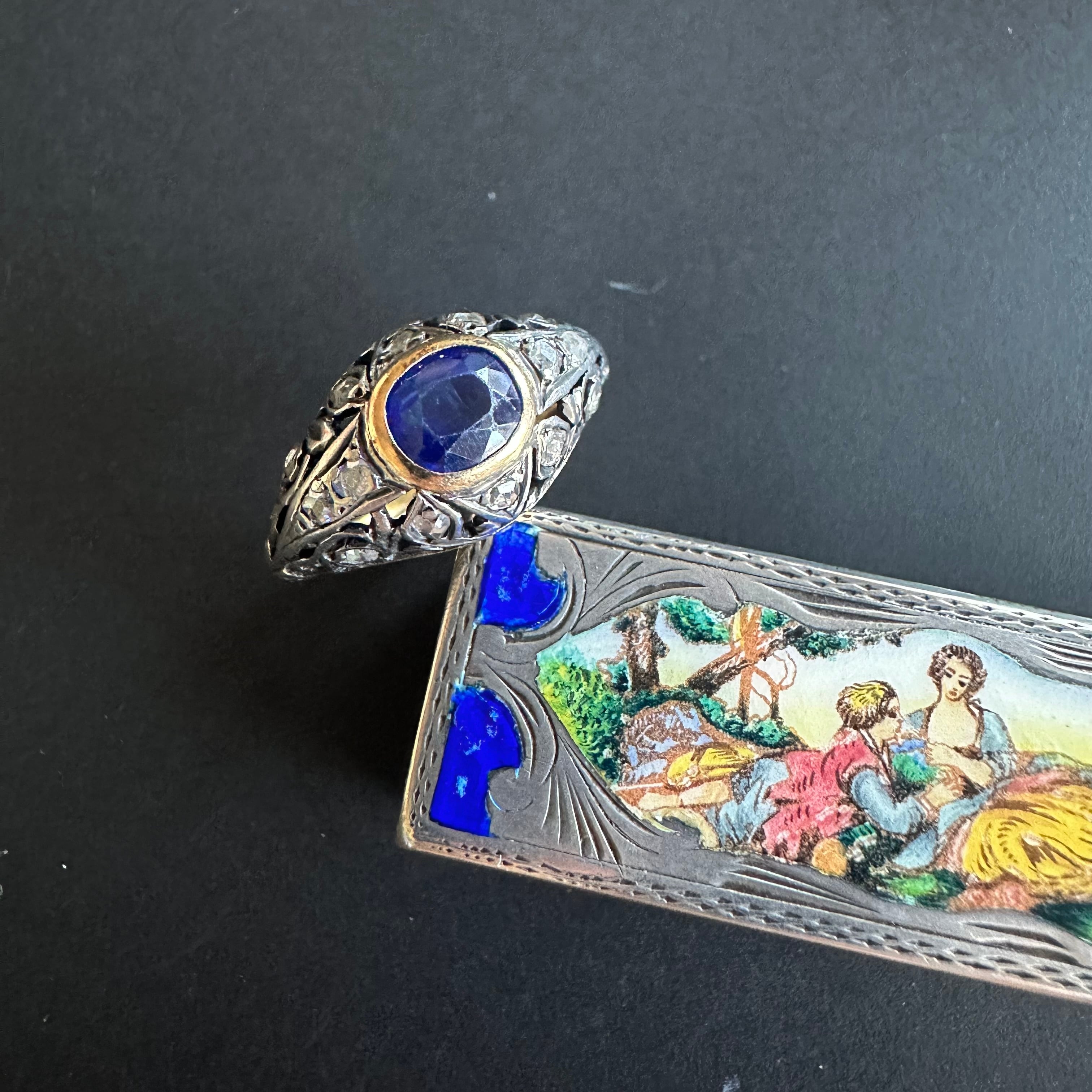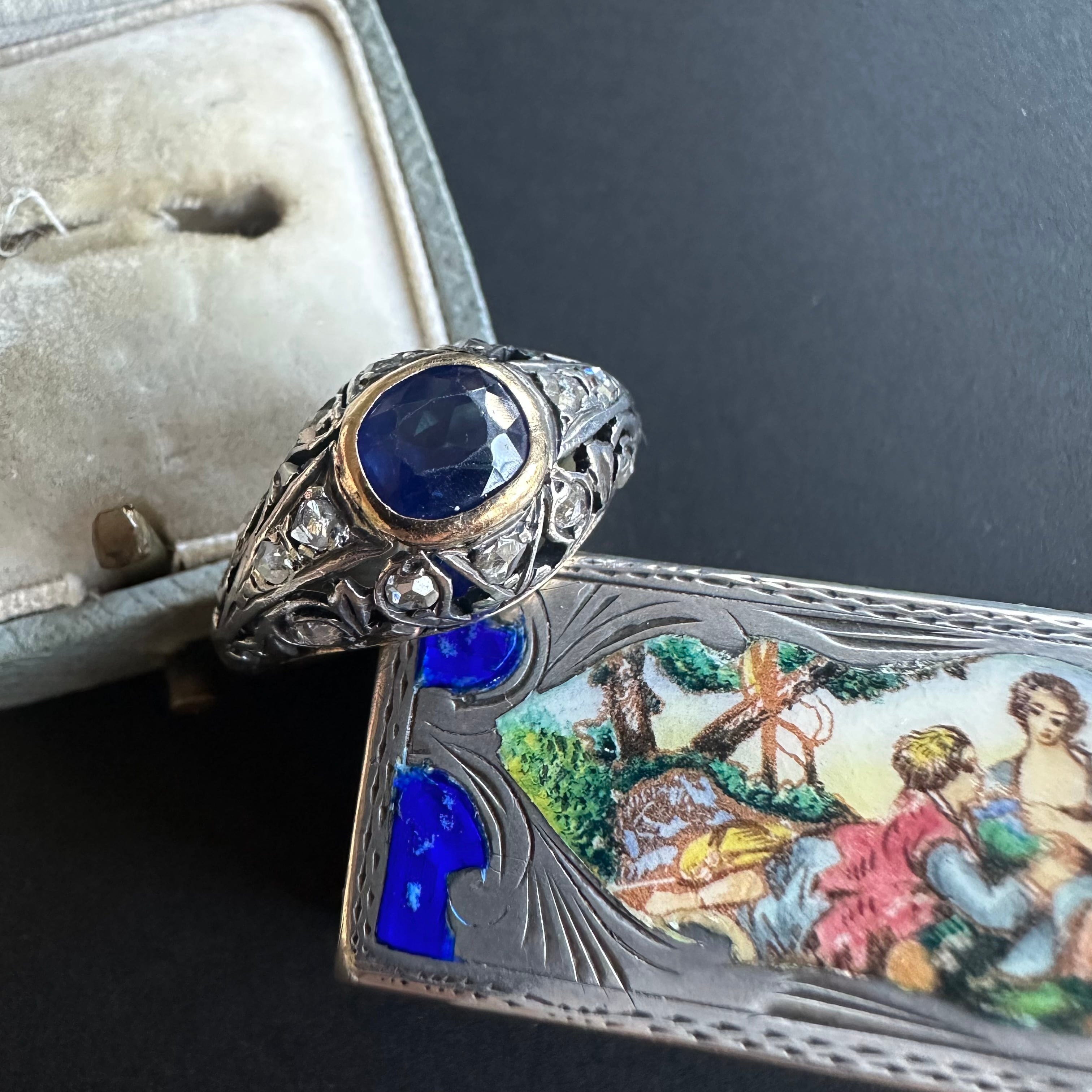 ※ 100年以上前の古いお品になりますので、経年によるアンティーク品特有の微小なスレなどルーペで見てわかる程度にございます。サファイアはルーペでのぞくと内包物はありますが、肉眼でみえるものではなく、瑞々しい輝きを楽しませてくれます。カケや目立つキズはございません。