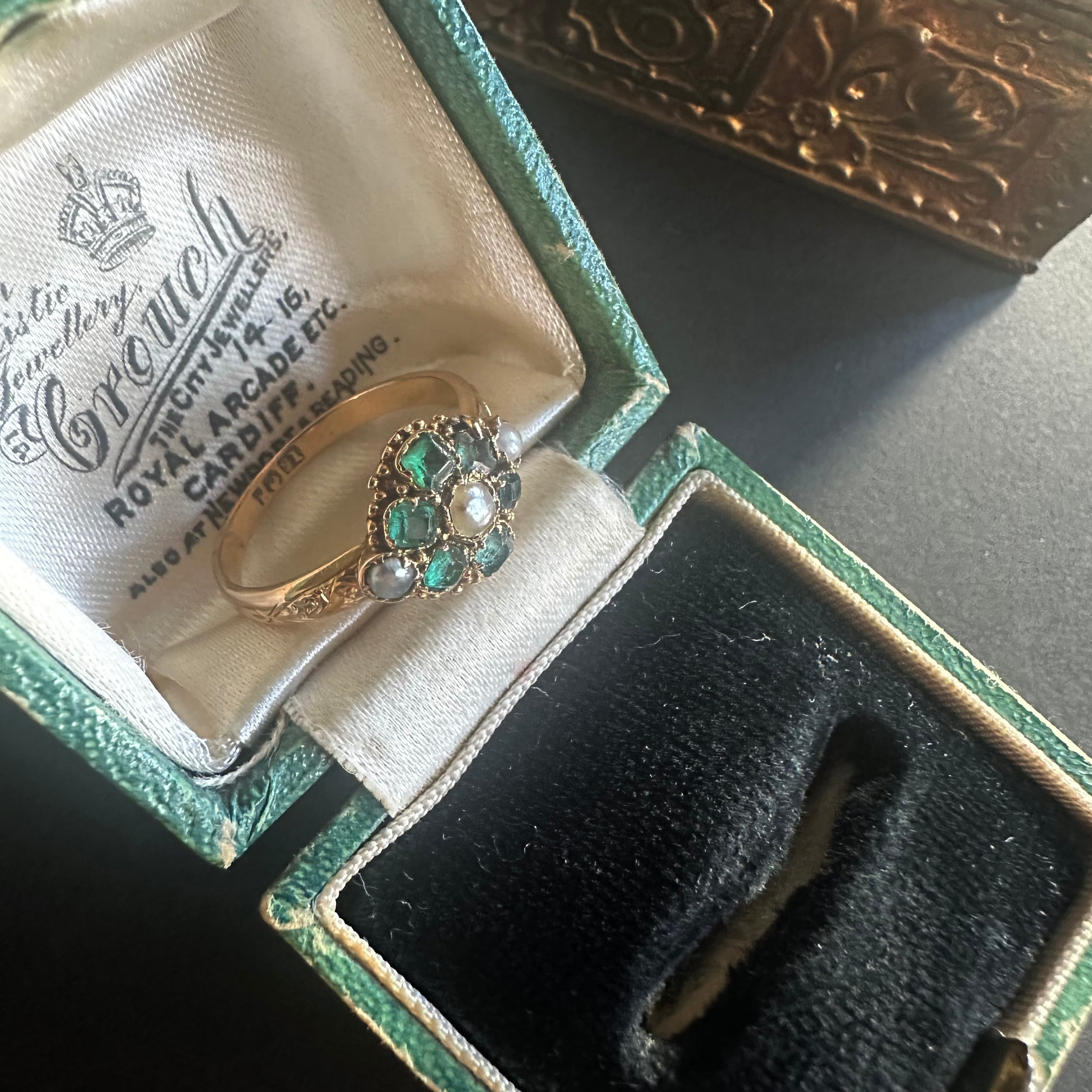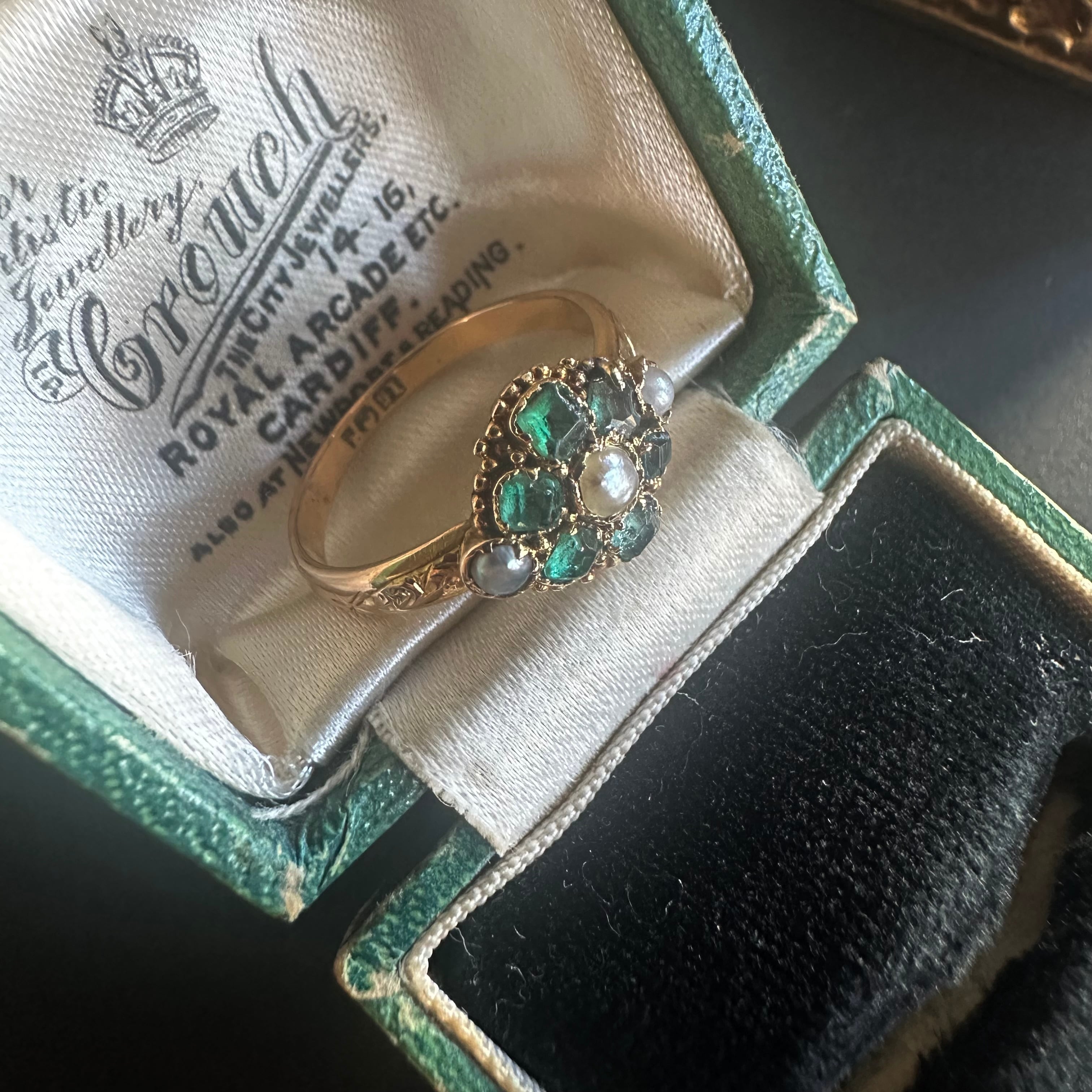 エメラルド&ハーフパールのデイジーヴィクトリアンリング