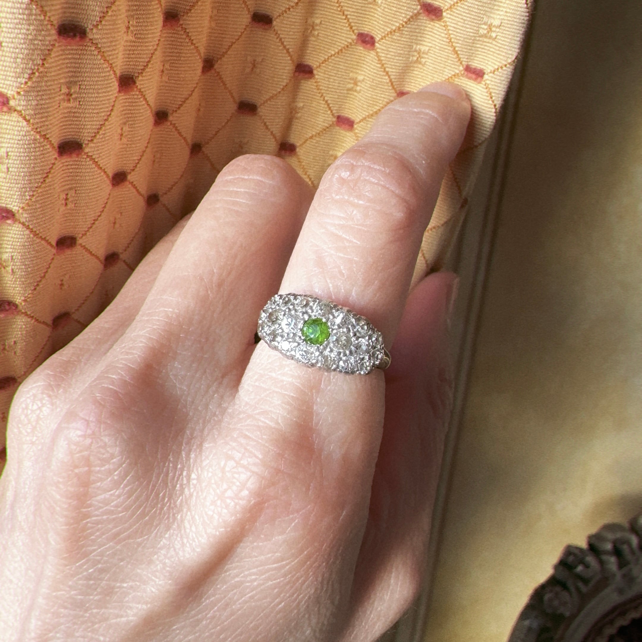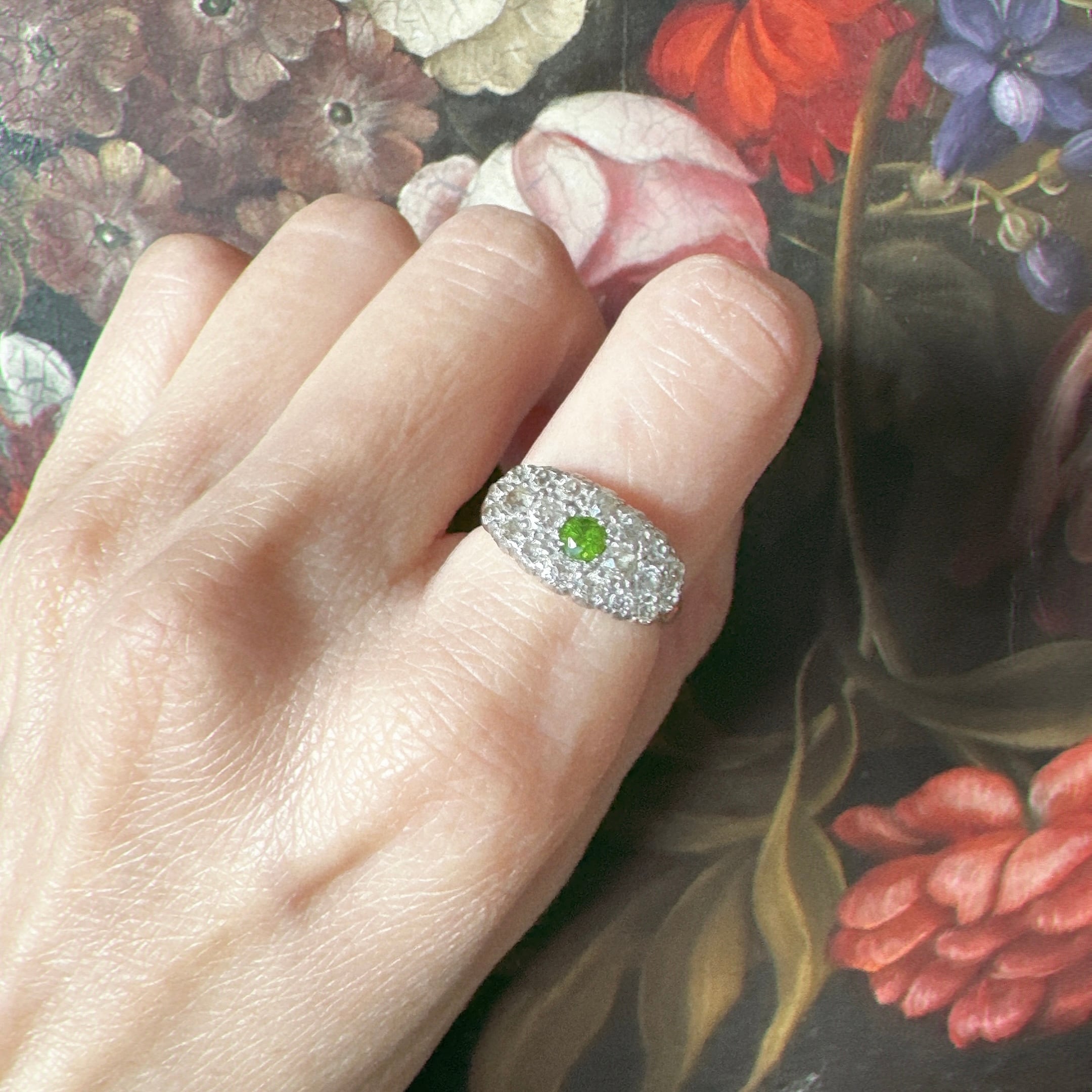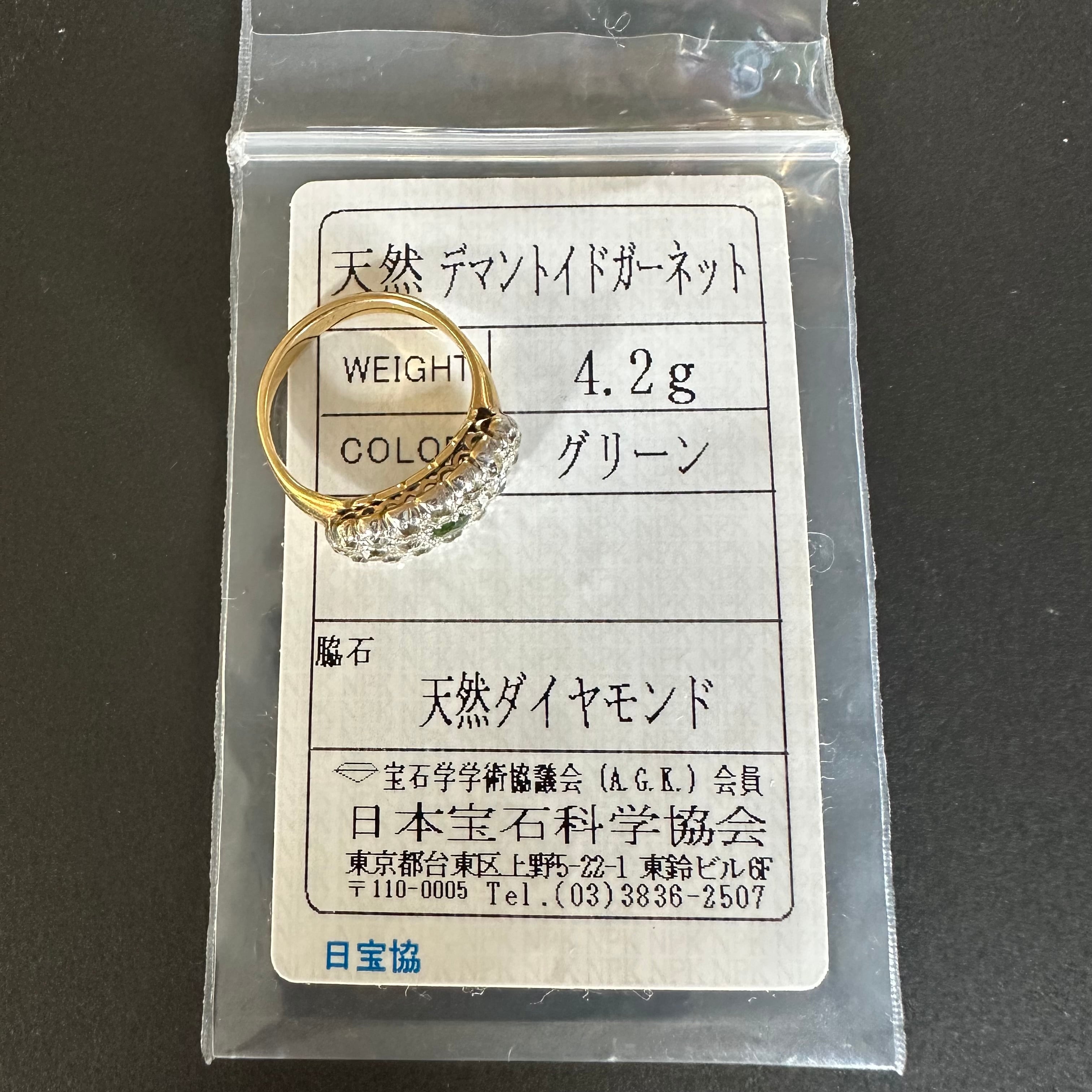 デマントイドガーネットであること、オールドカットダイヤモンドであること、そのどちらもが静かに、しかし確かに、このリングの価値を物語っています。