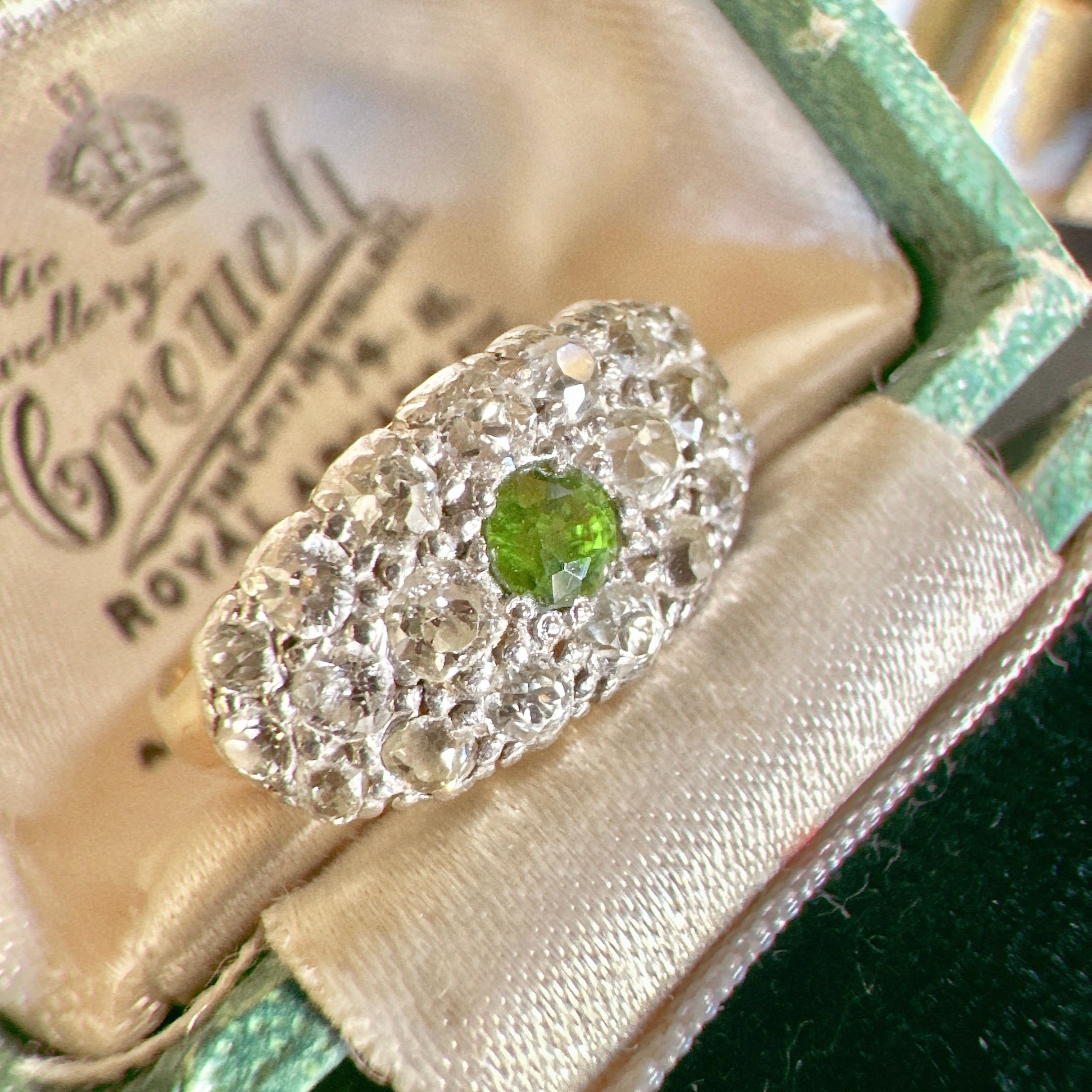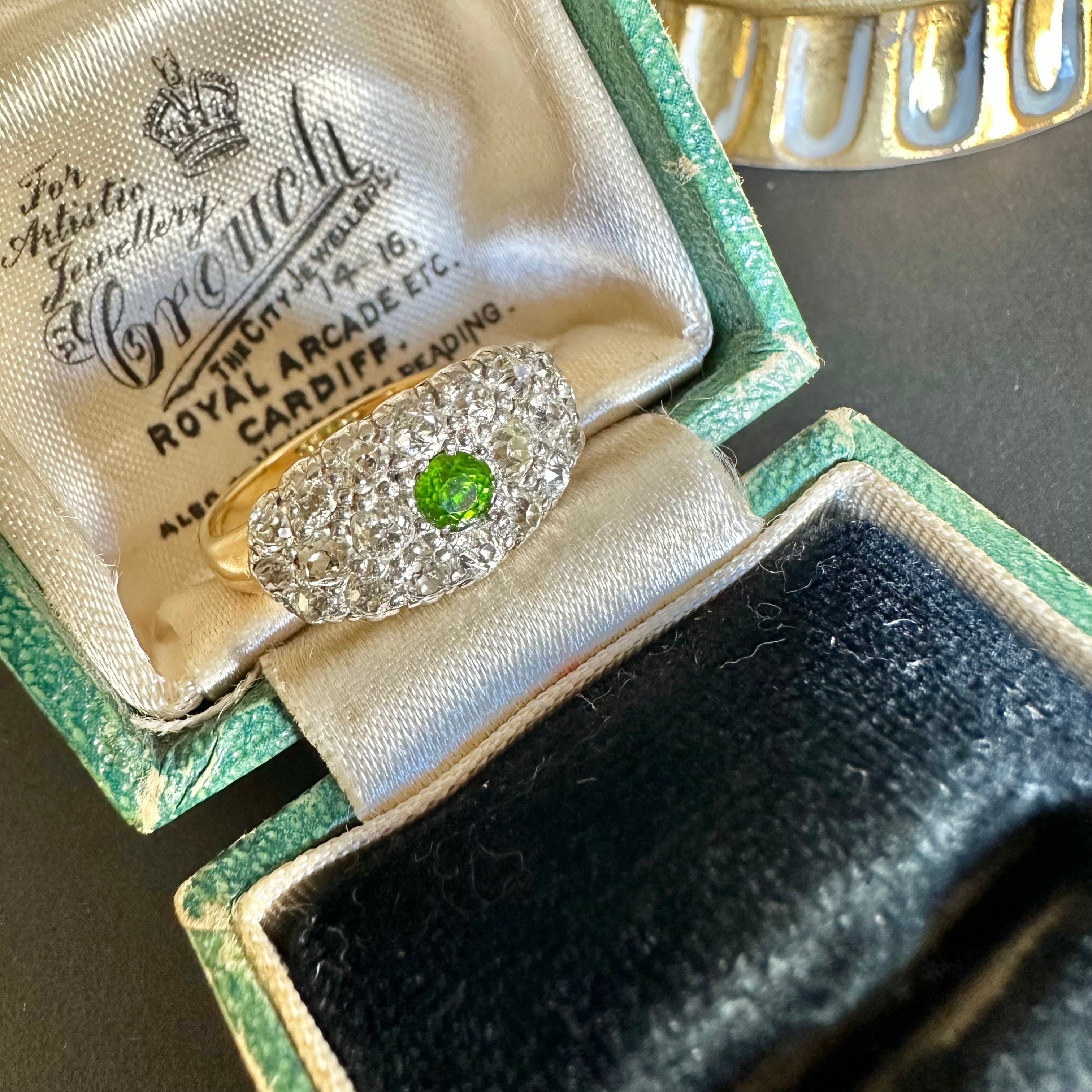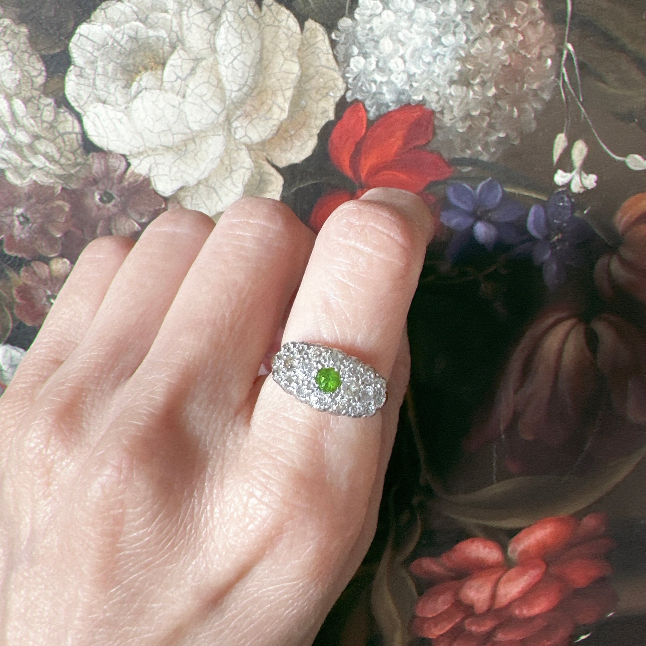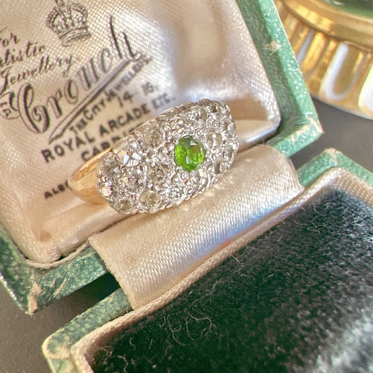 デマントイドガーネットであること、オールドカットダイヤモンドであること、そのどちらもが静かに、しかし確かに、このリングの価値を物語っています。