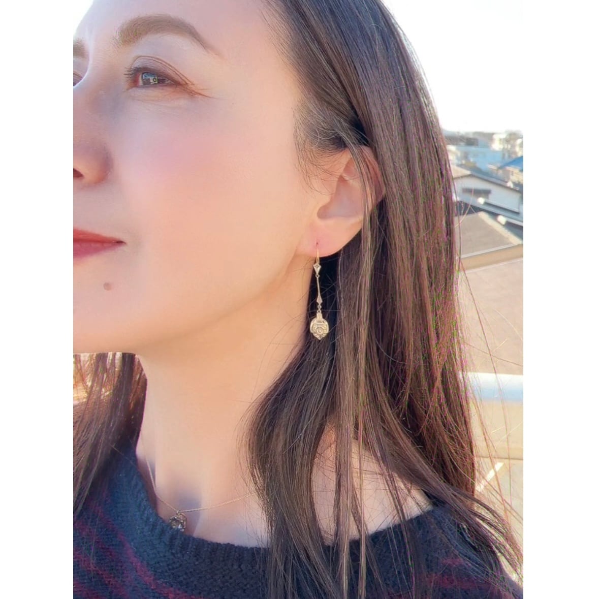ドロップ部分は小ぶりで、さらにそれを支えるバーの部分がとてもスリム。揺れ感はありながらも主張しすぎず、耳元に繊細なリズムを添えてくれます。