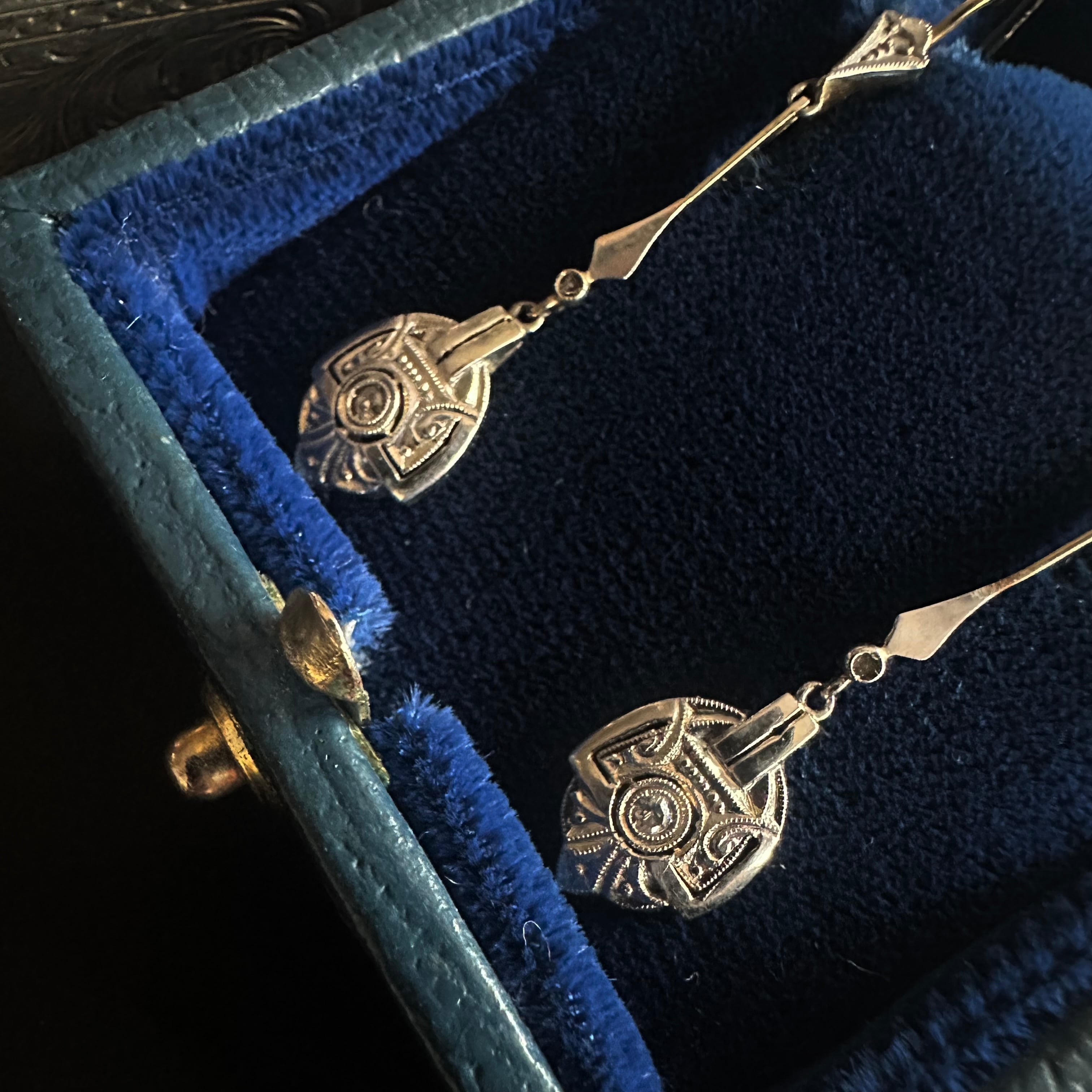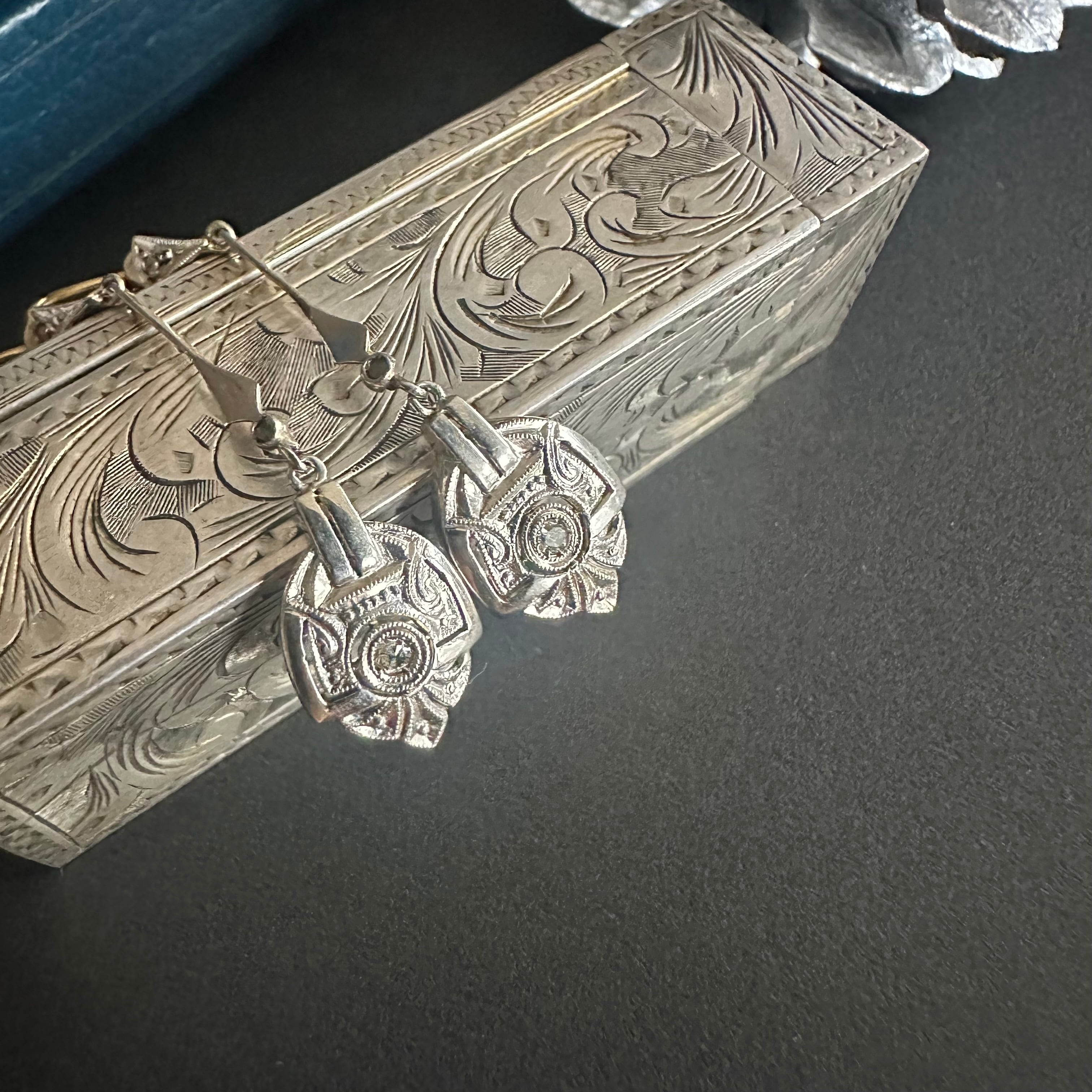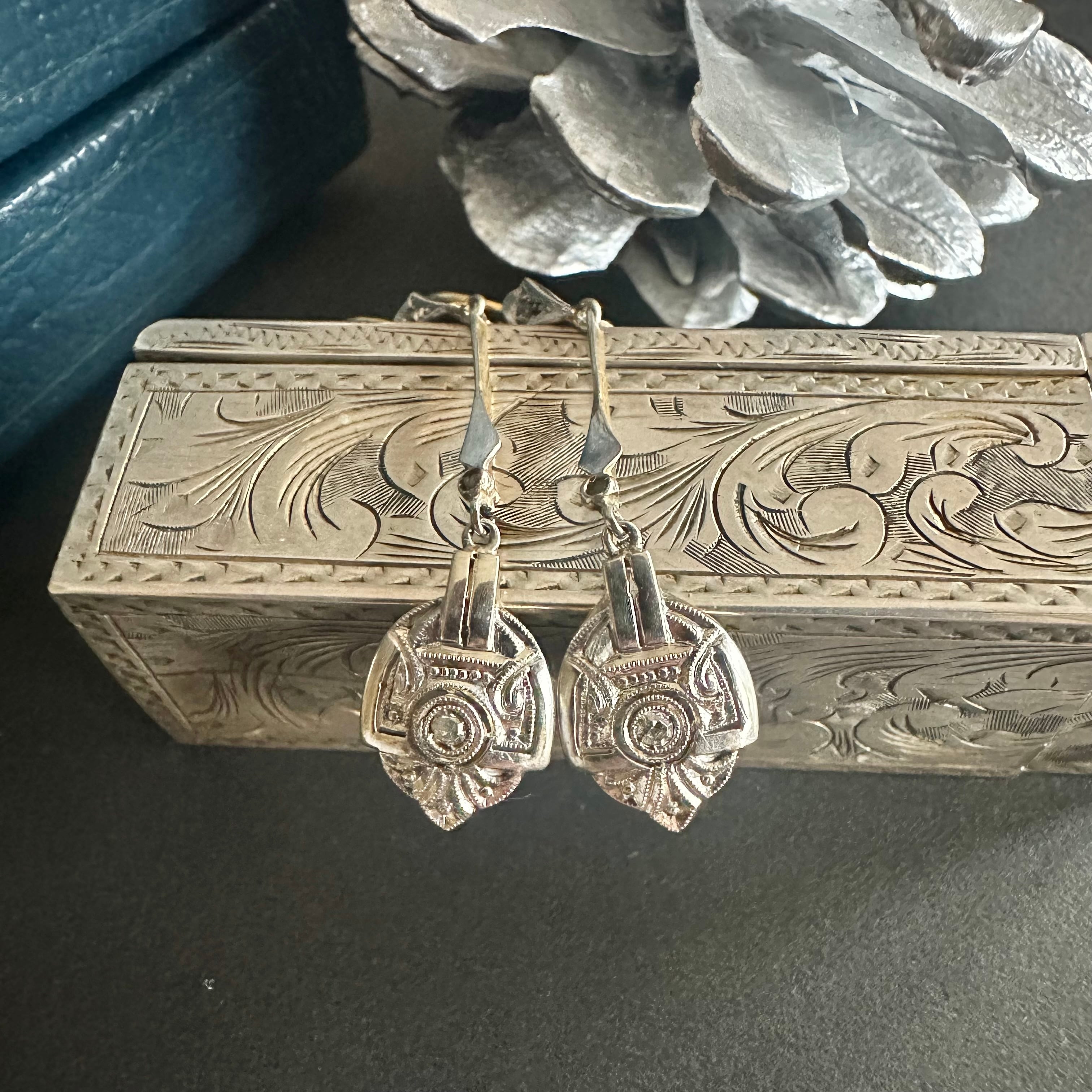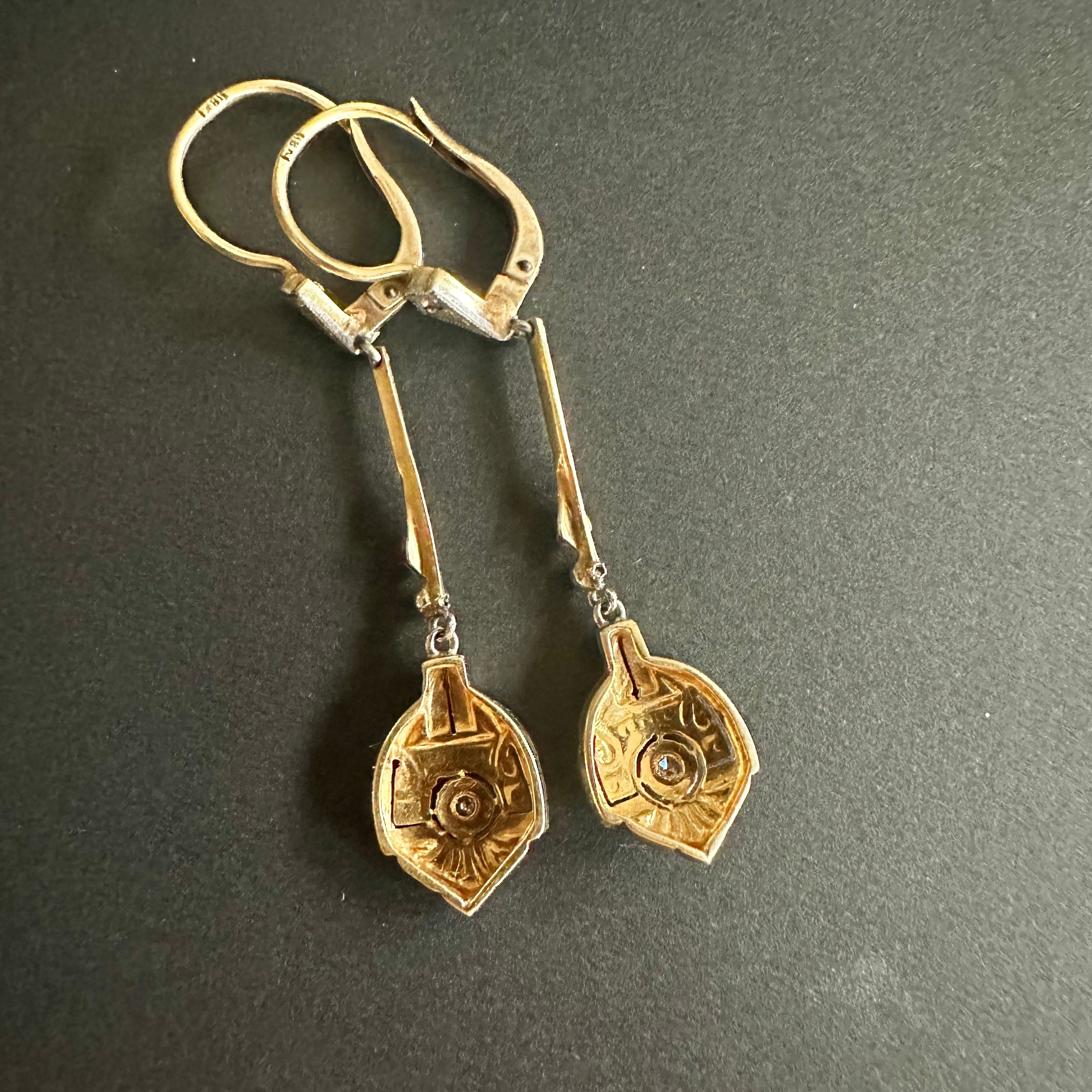 18金とプラチナのコンビネーションが美しいアールデコ期のピアス。