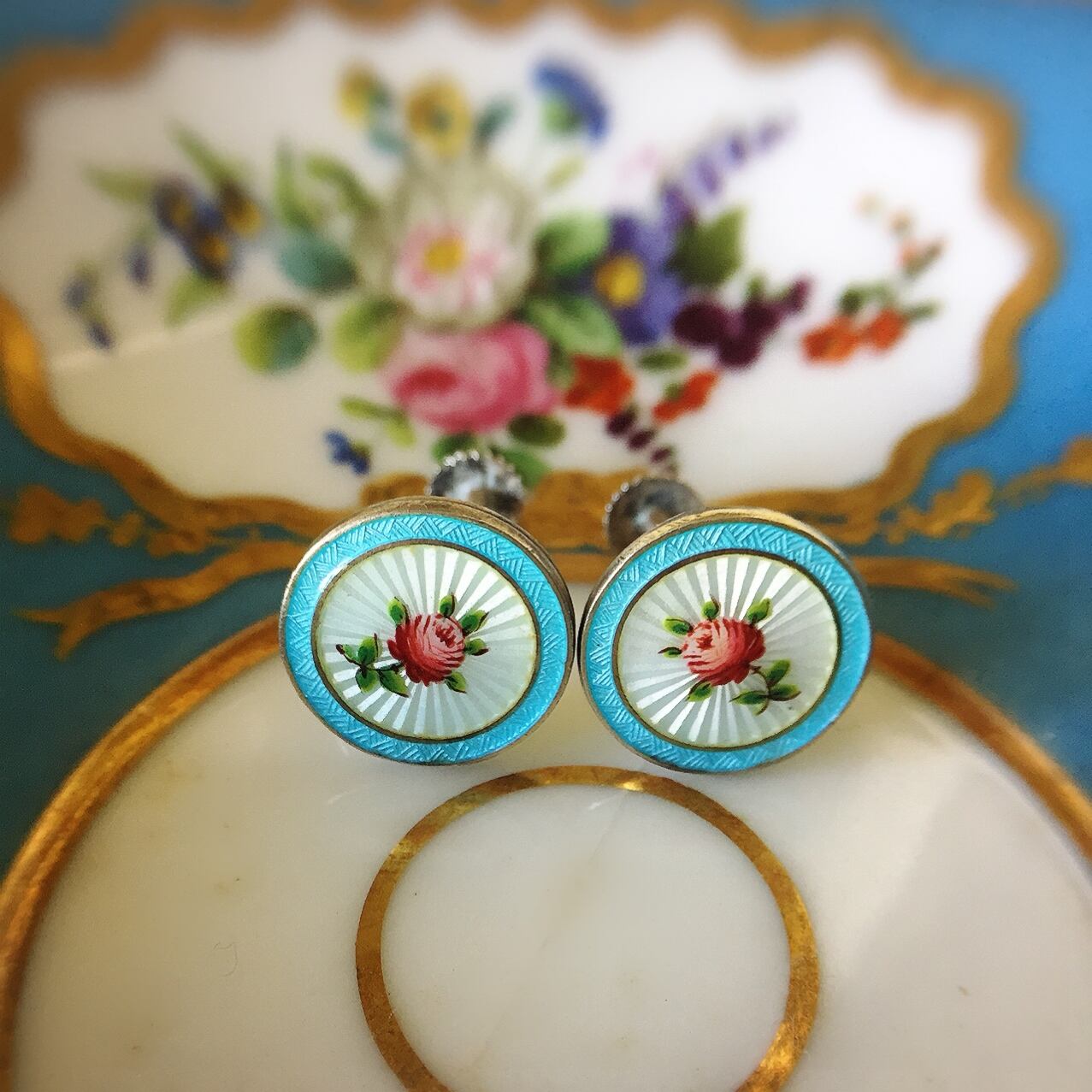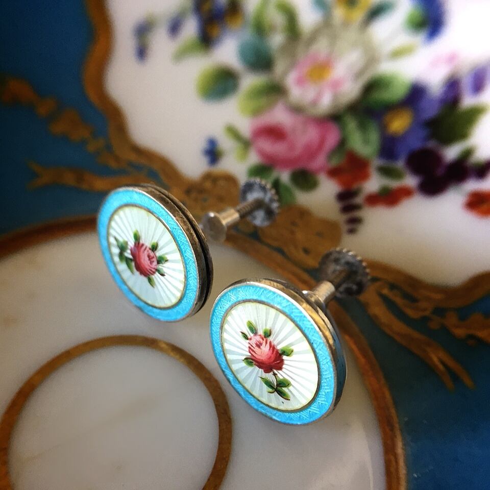 ギヨシェエナメルの可愛らしく鮮やかな色合いのイヤリング。