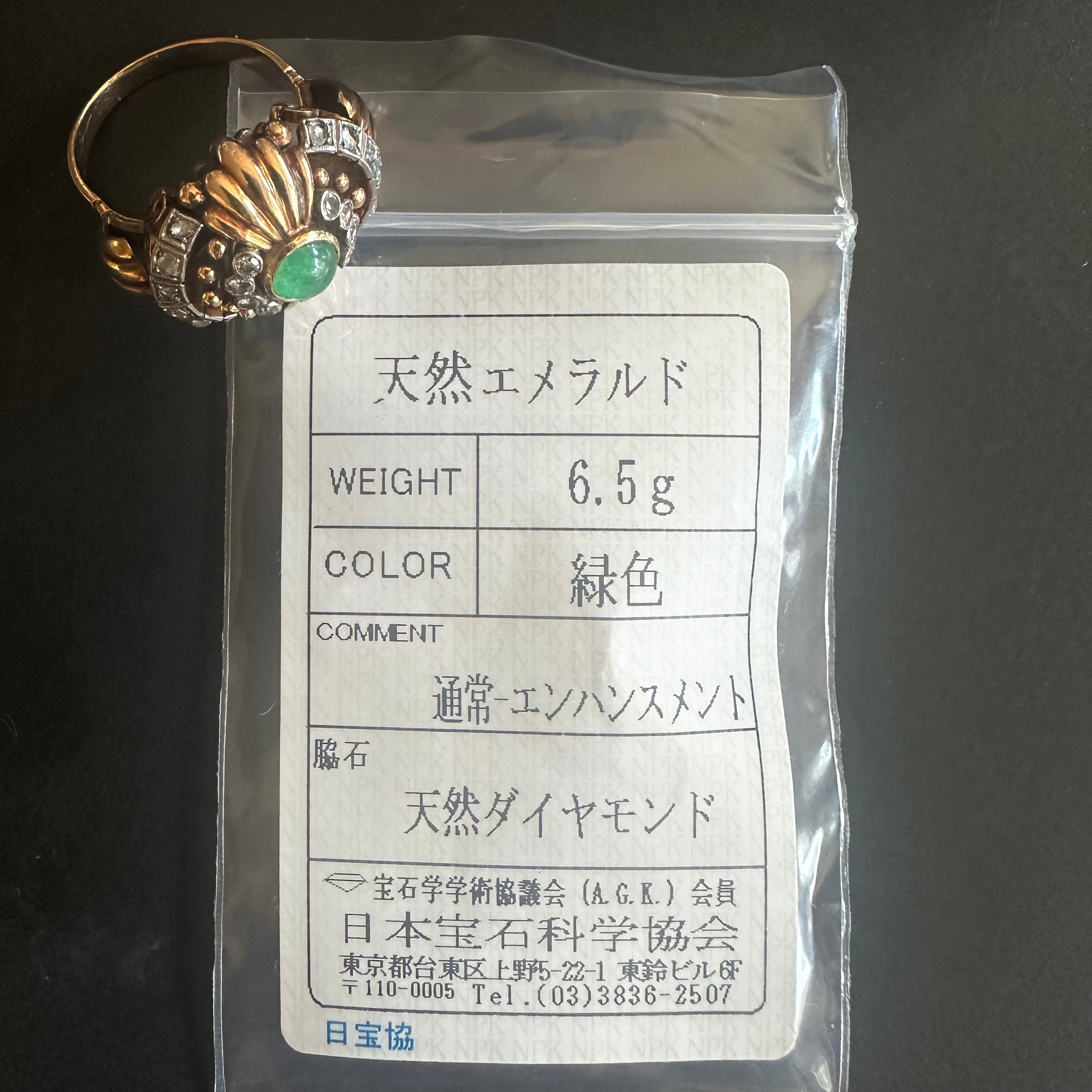素材 エメラルド、ダイヤモンド、12金