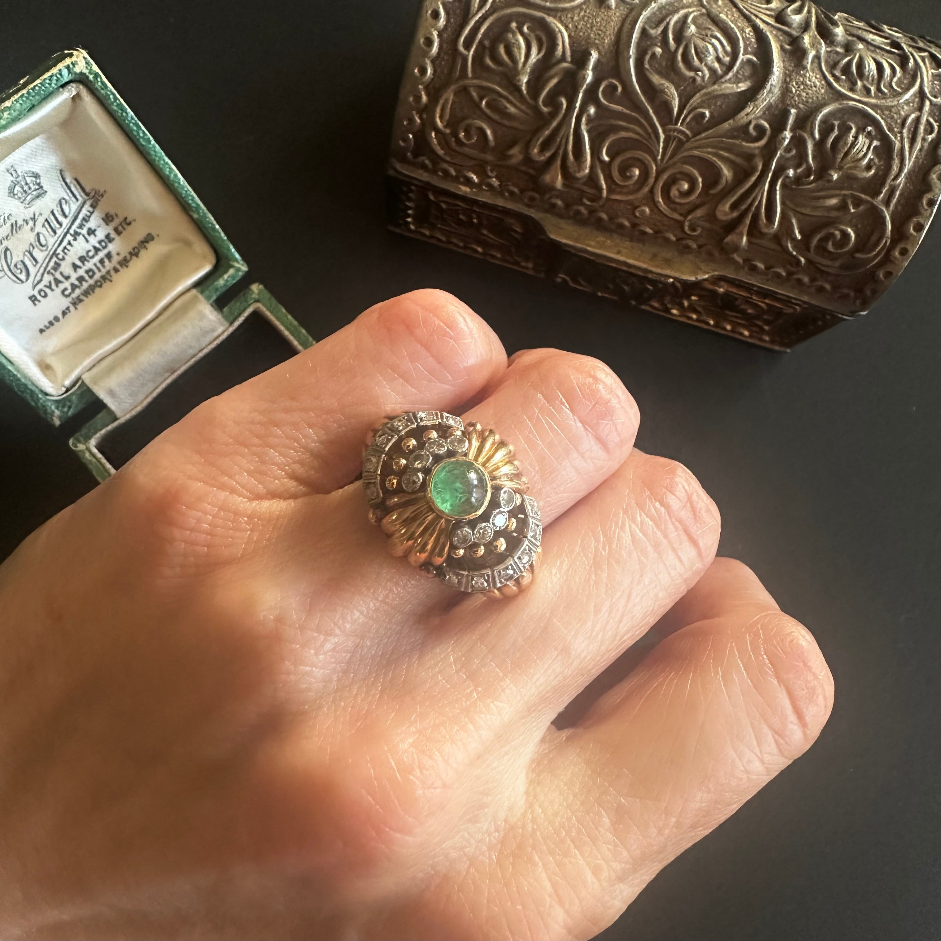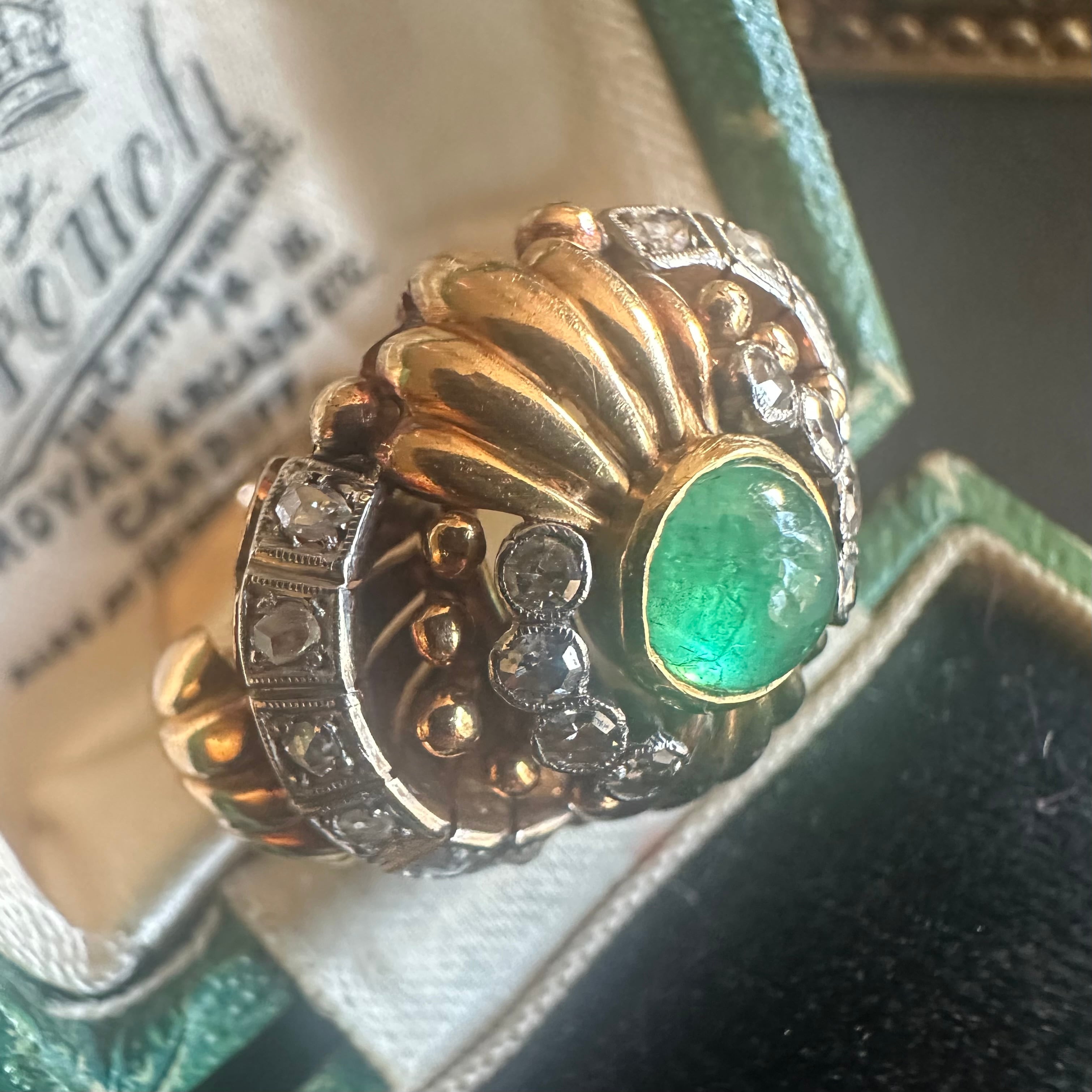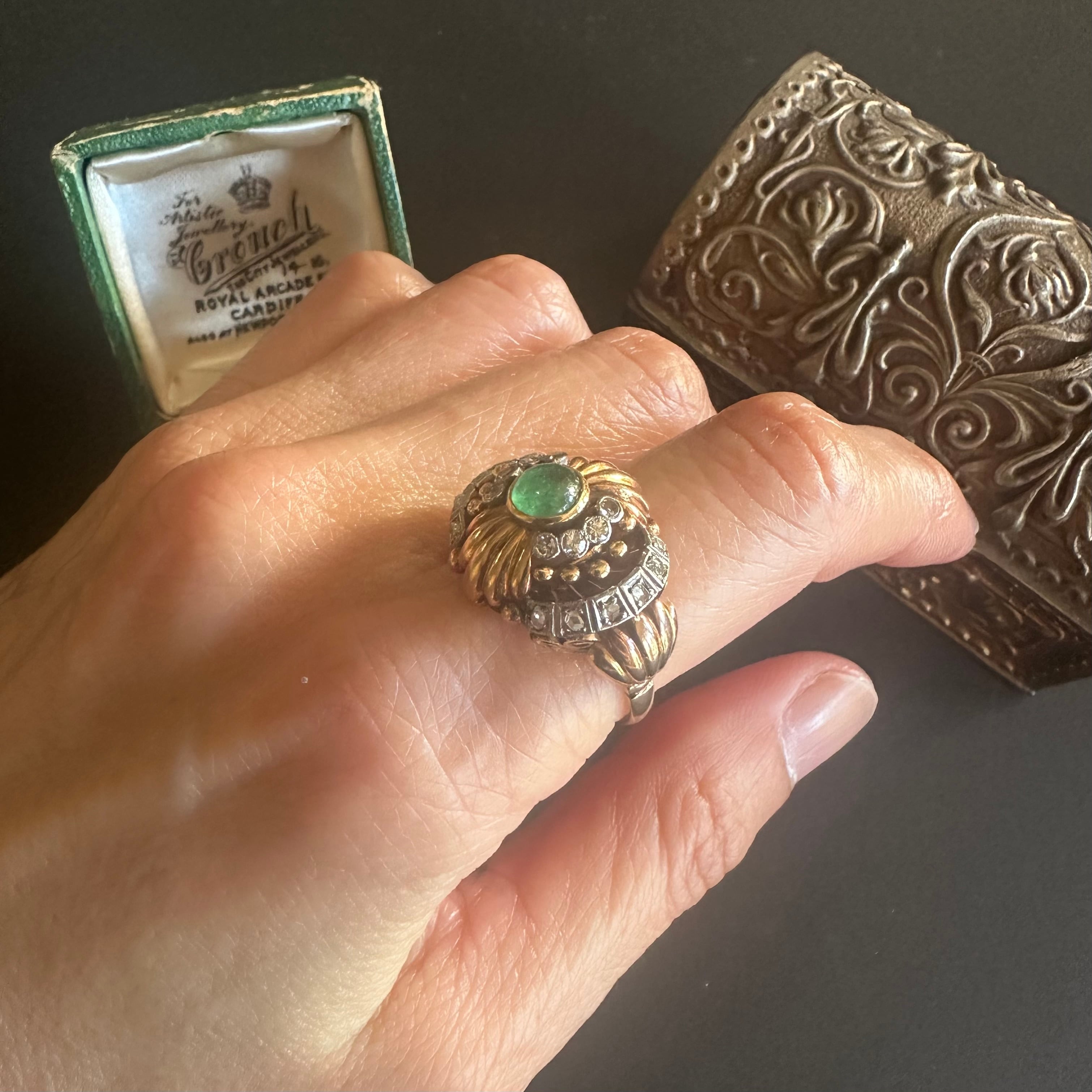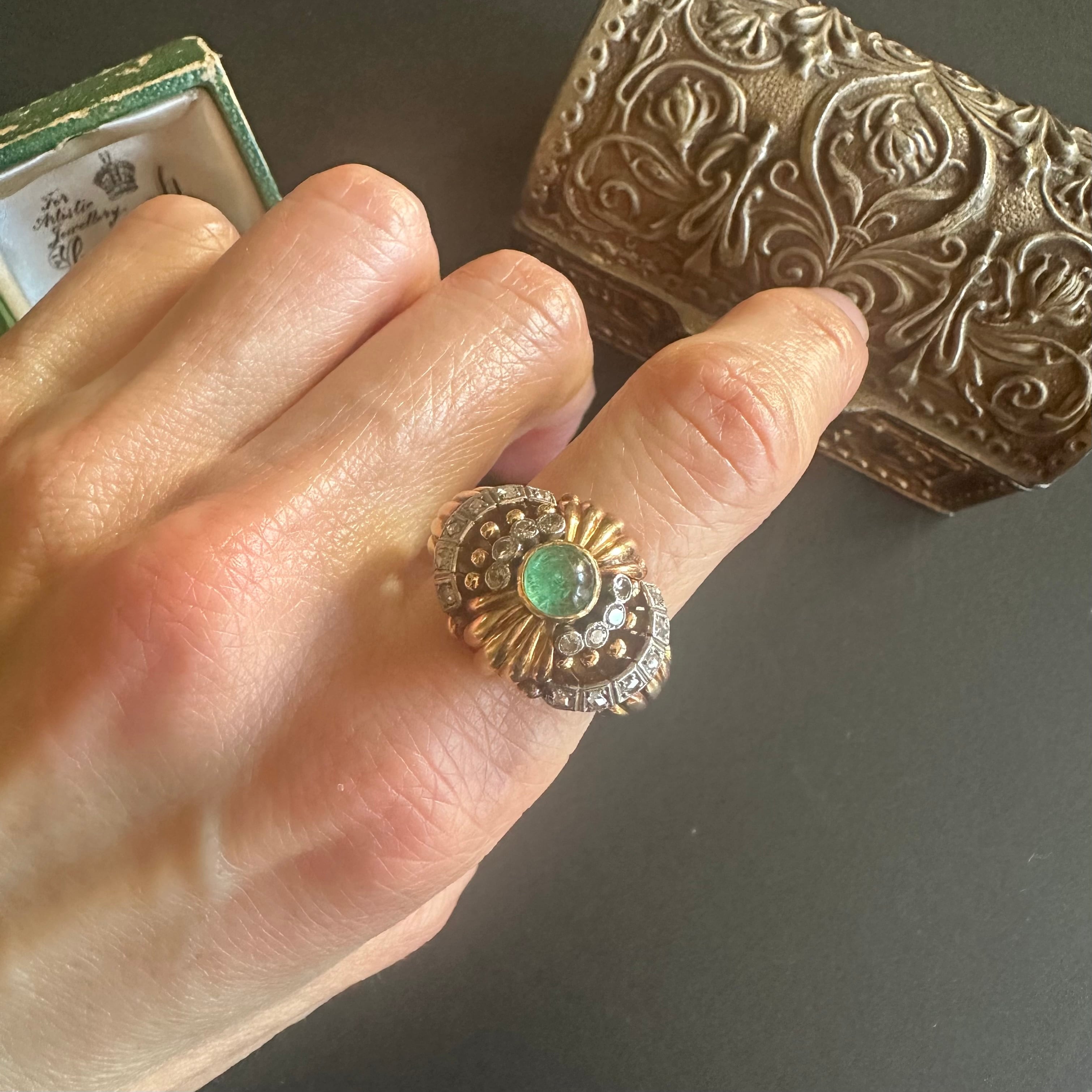 カボションエメラルドのカクテルリング