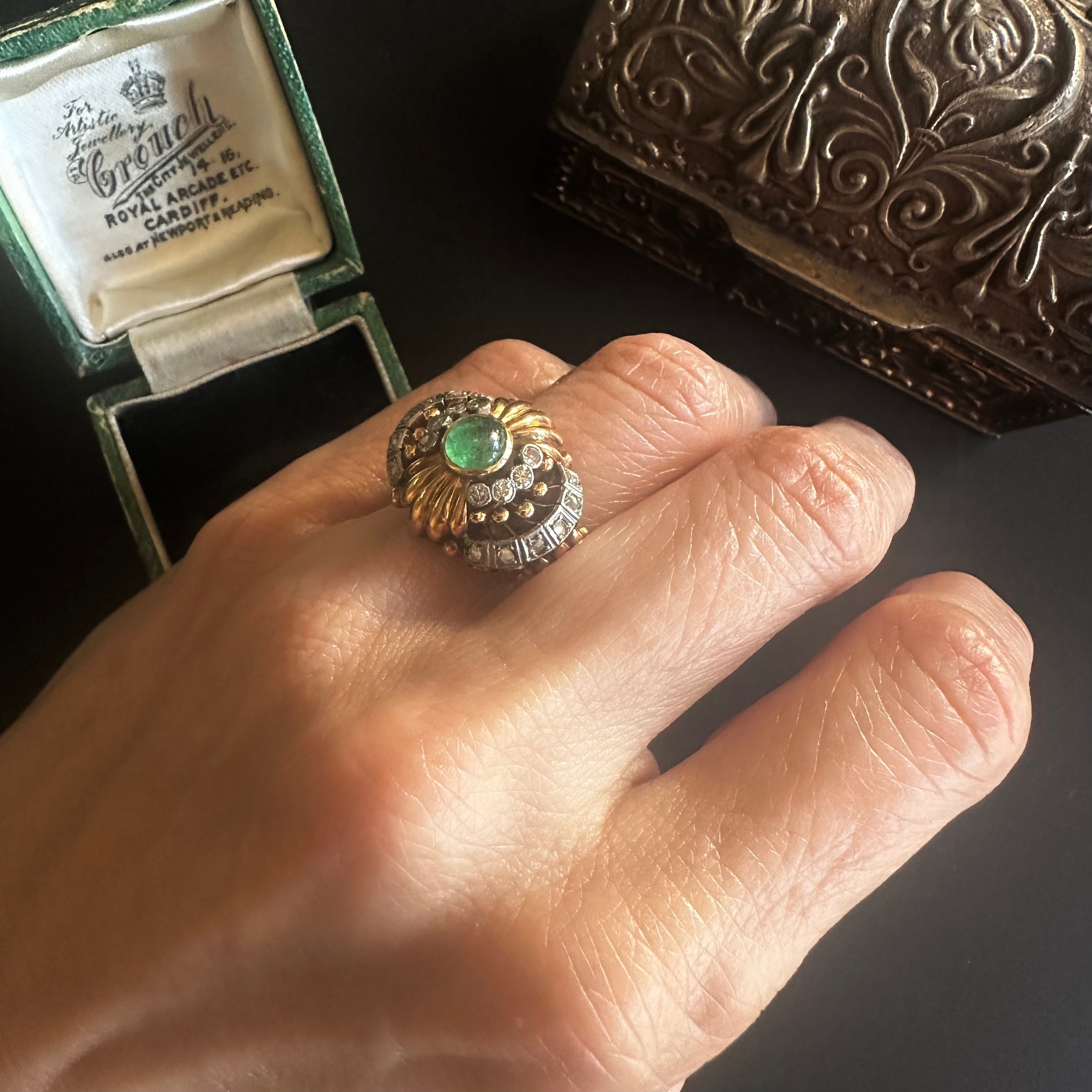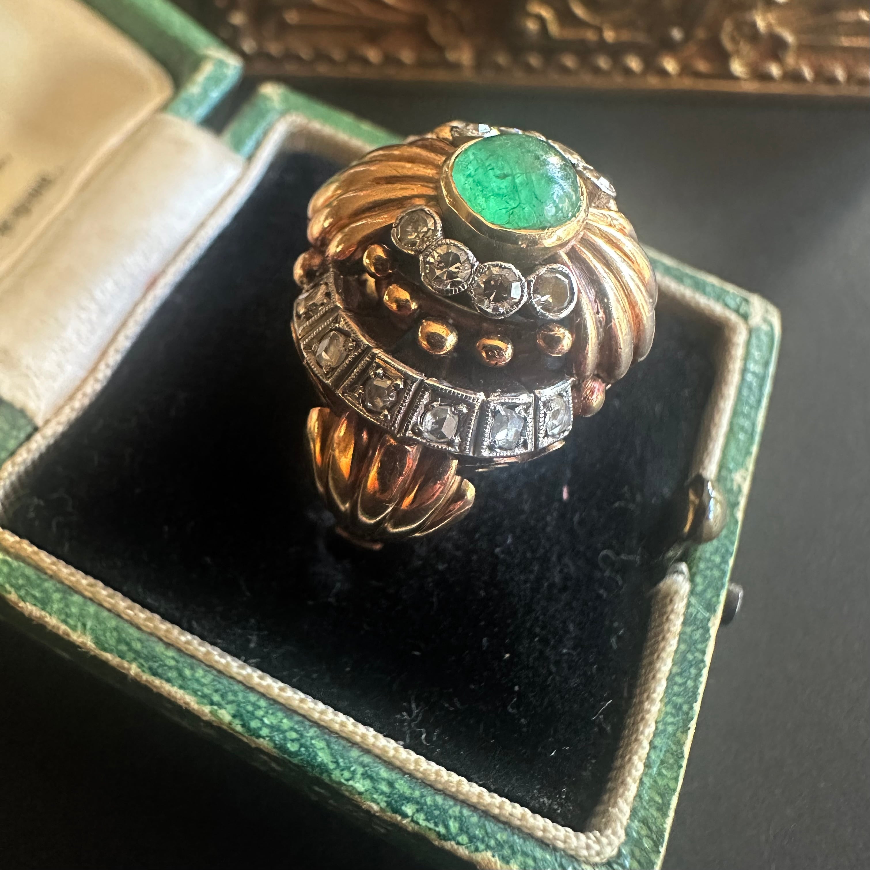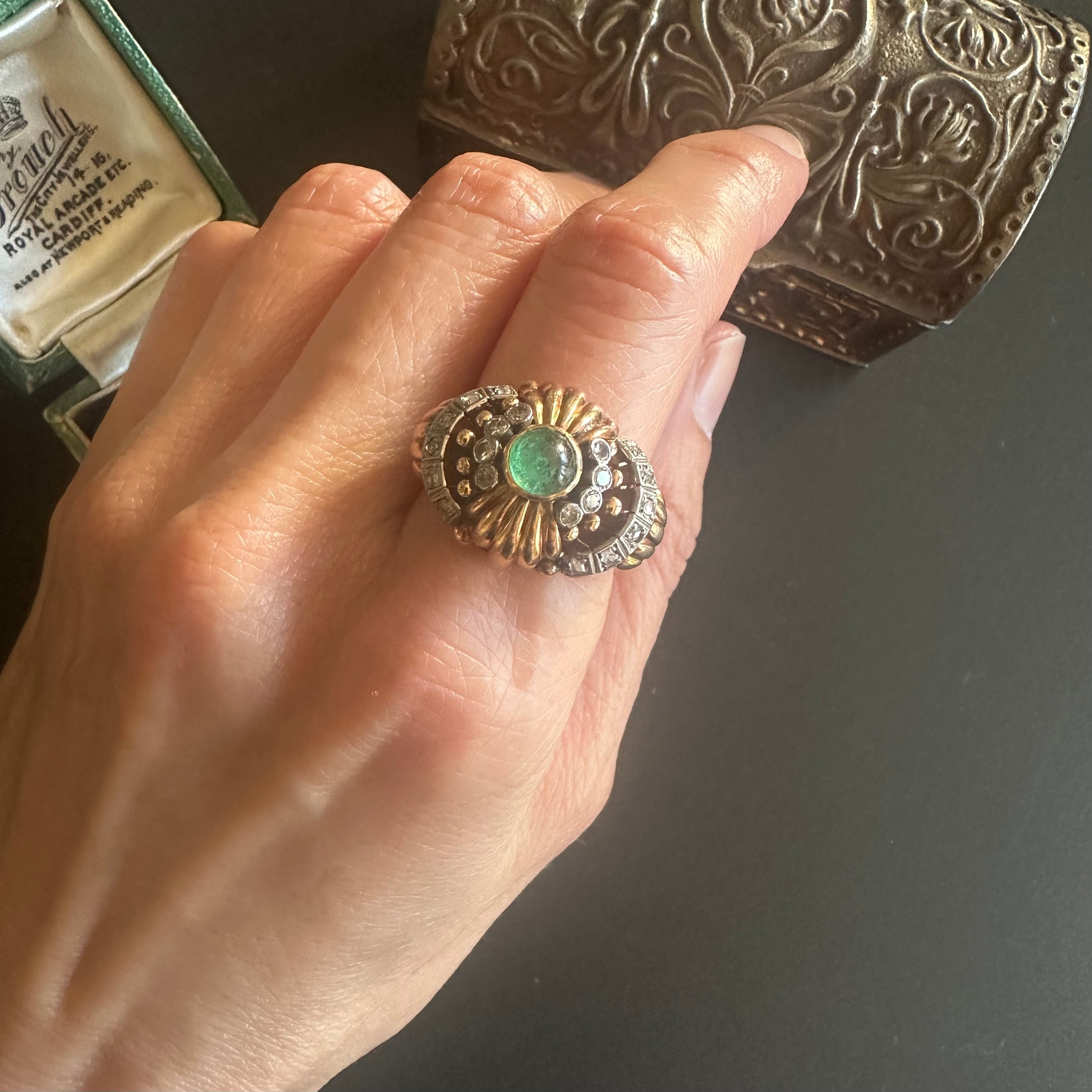 カボションエメラルドのカクテルリング