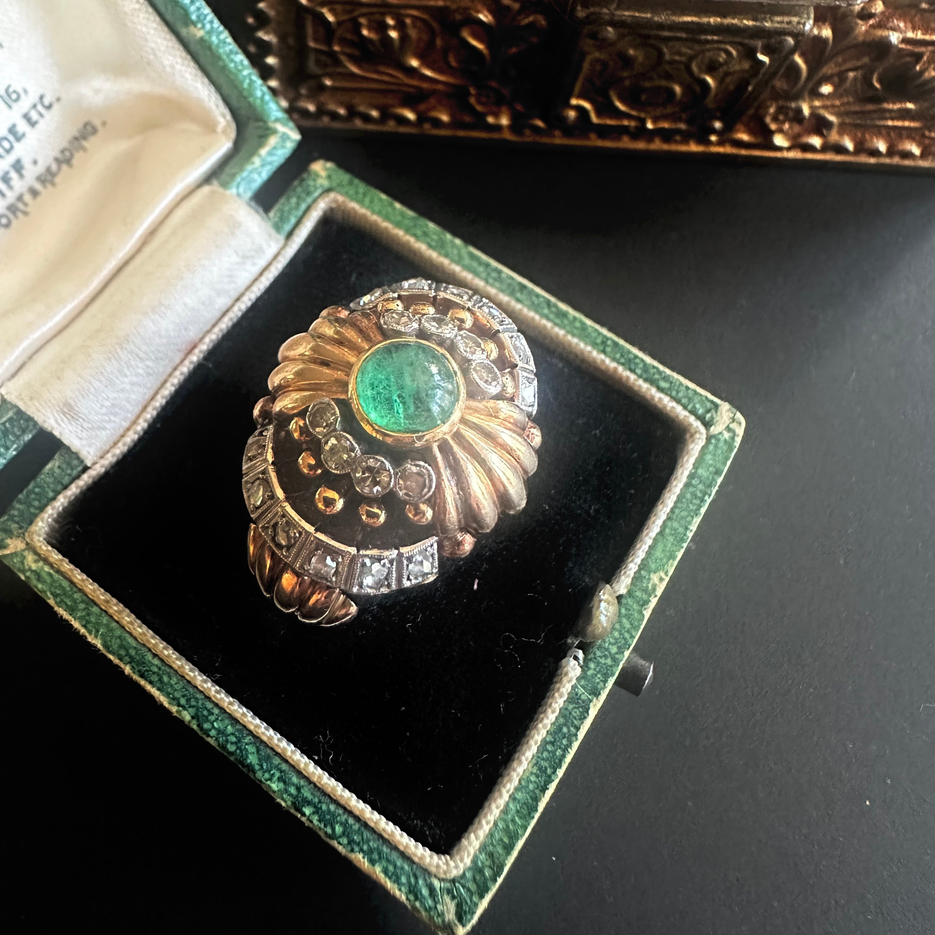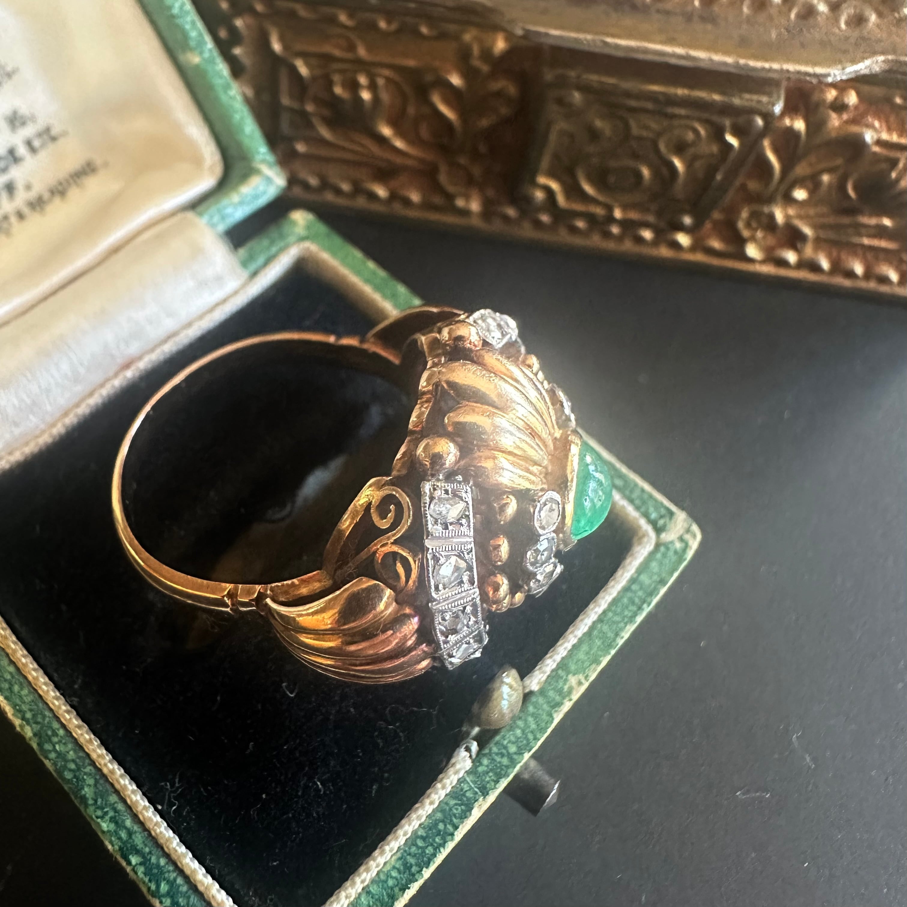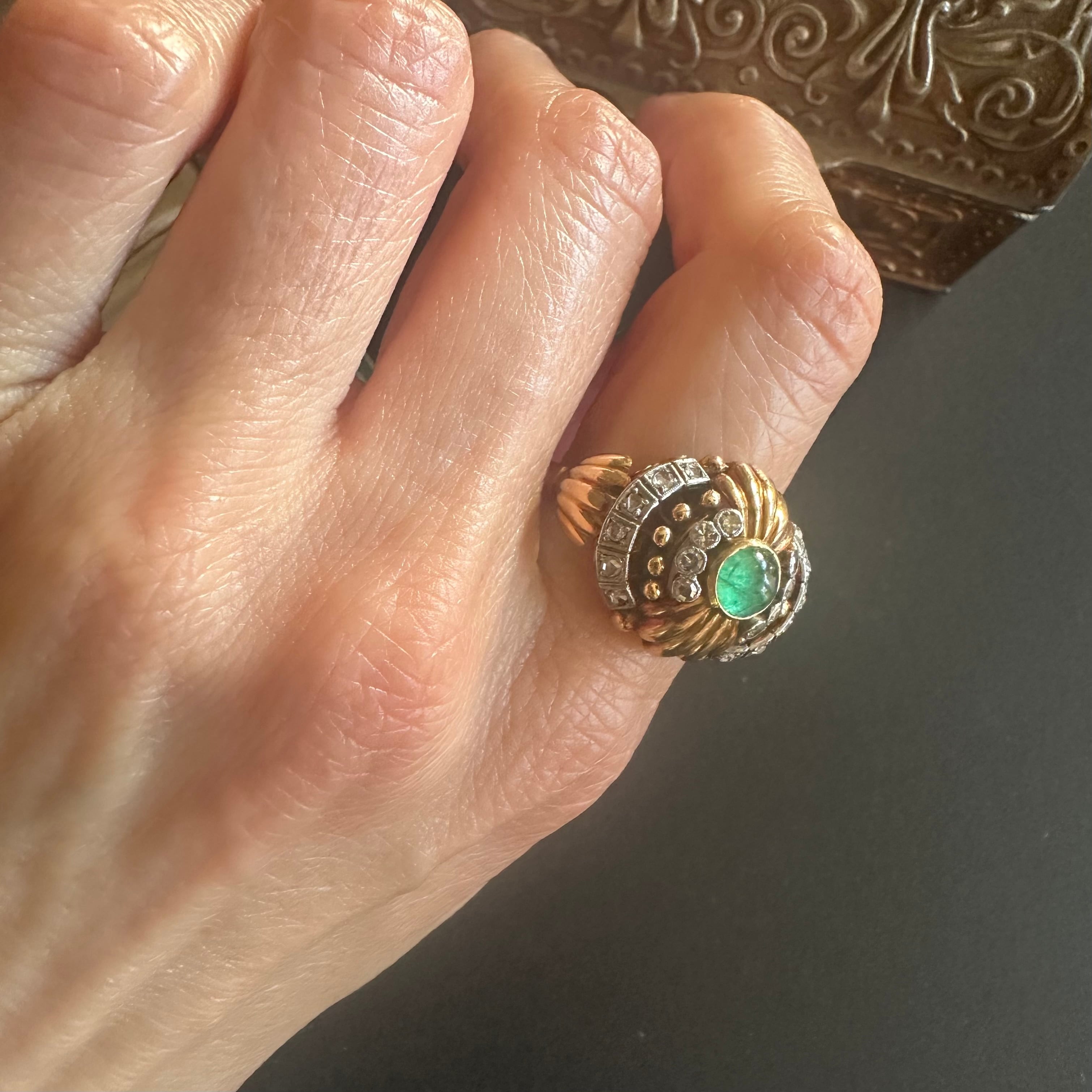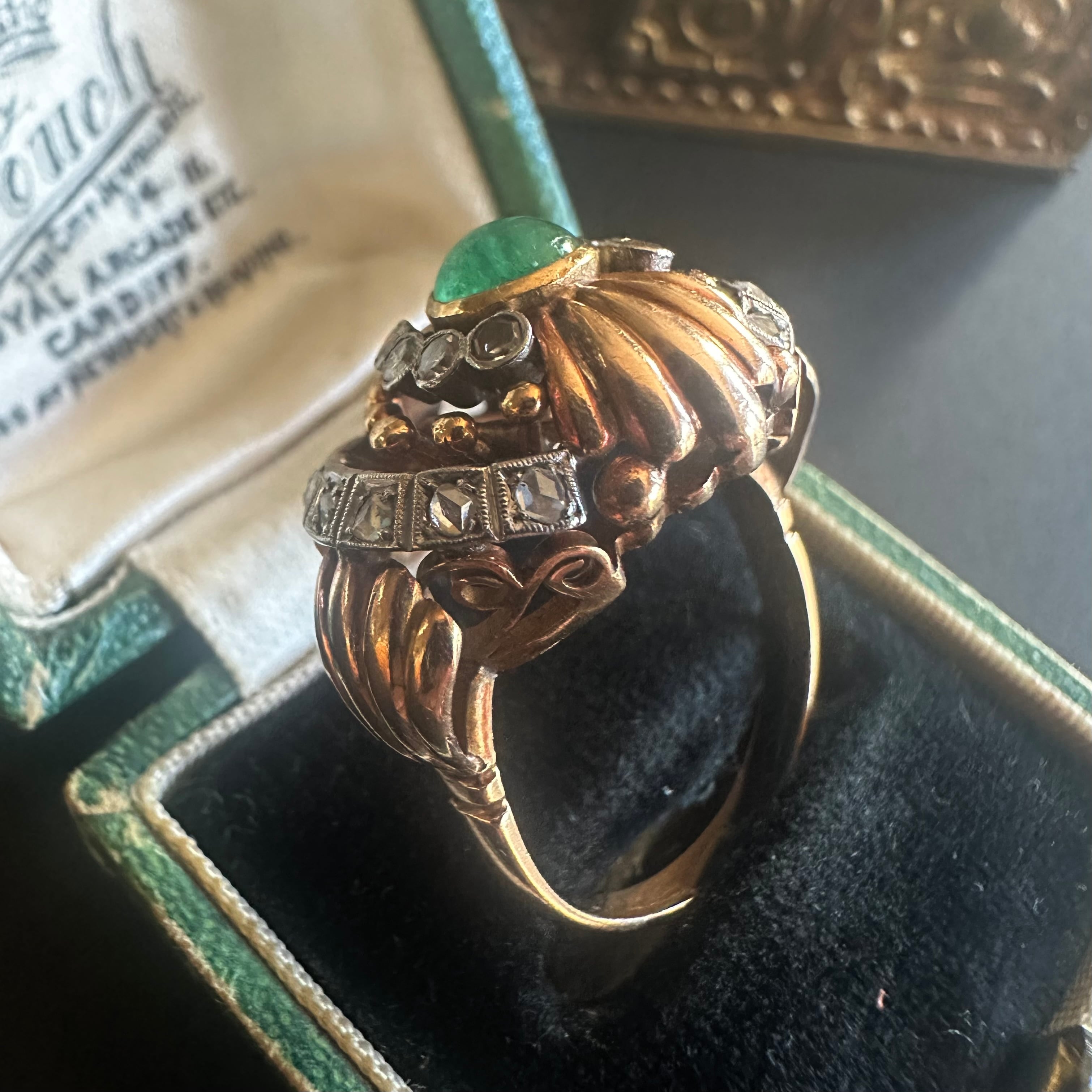 カボションエメラルドのカクテルリング