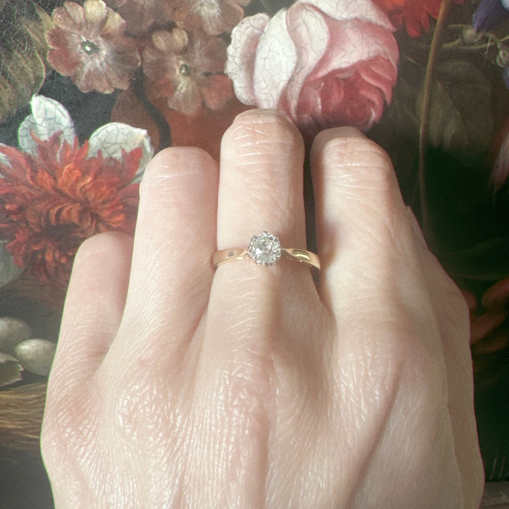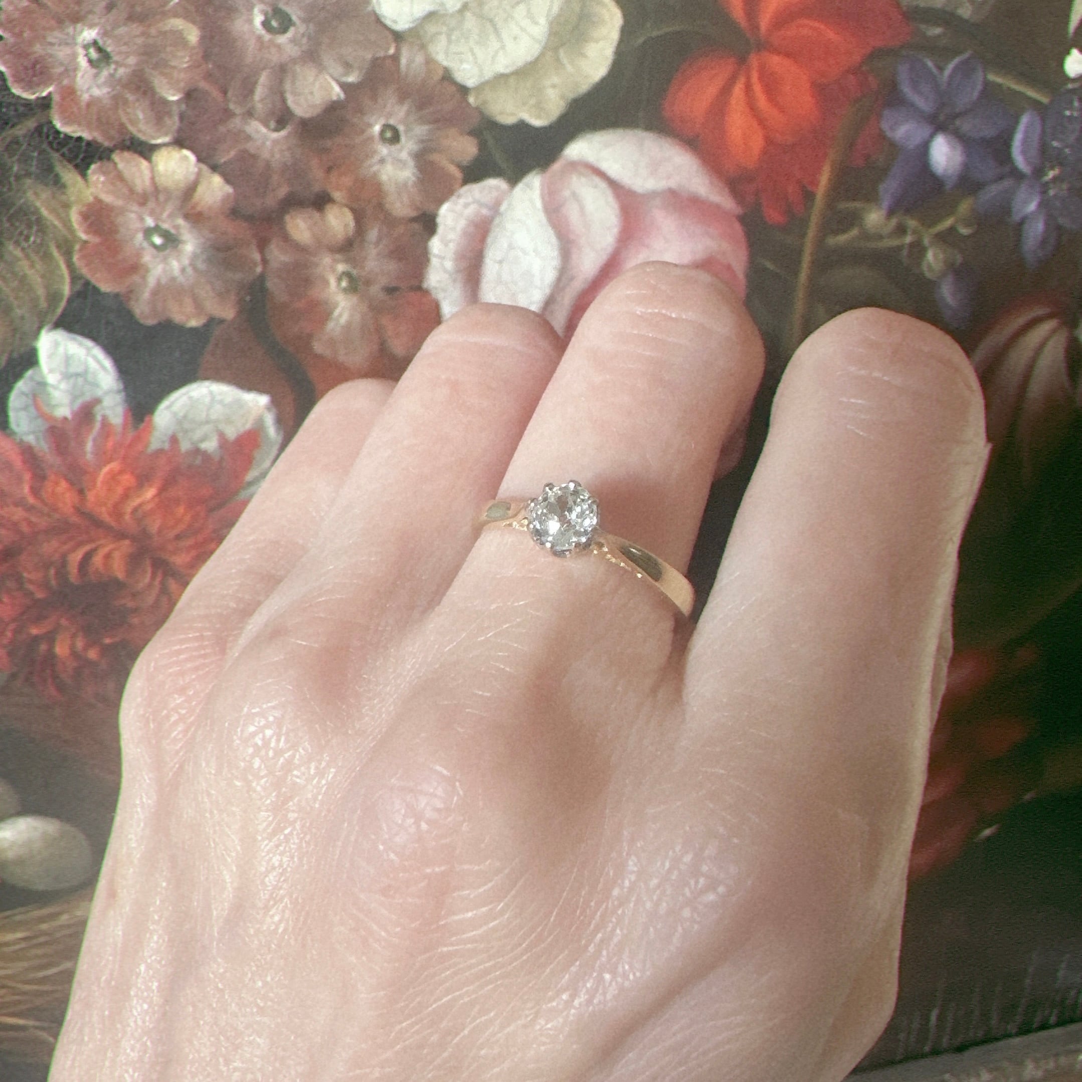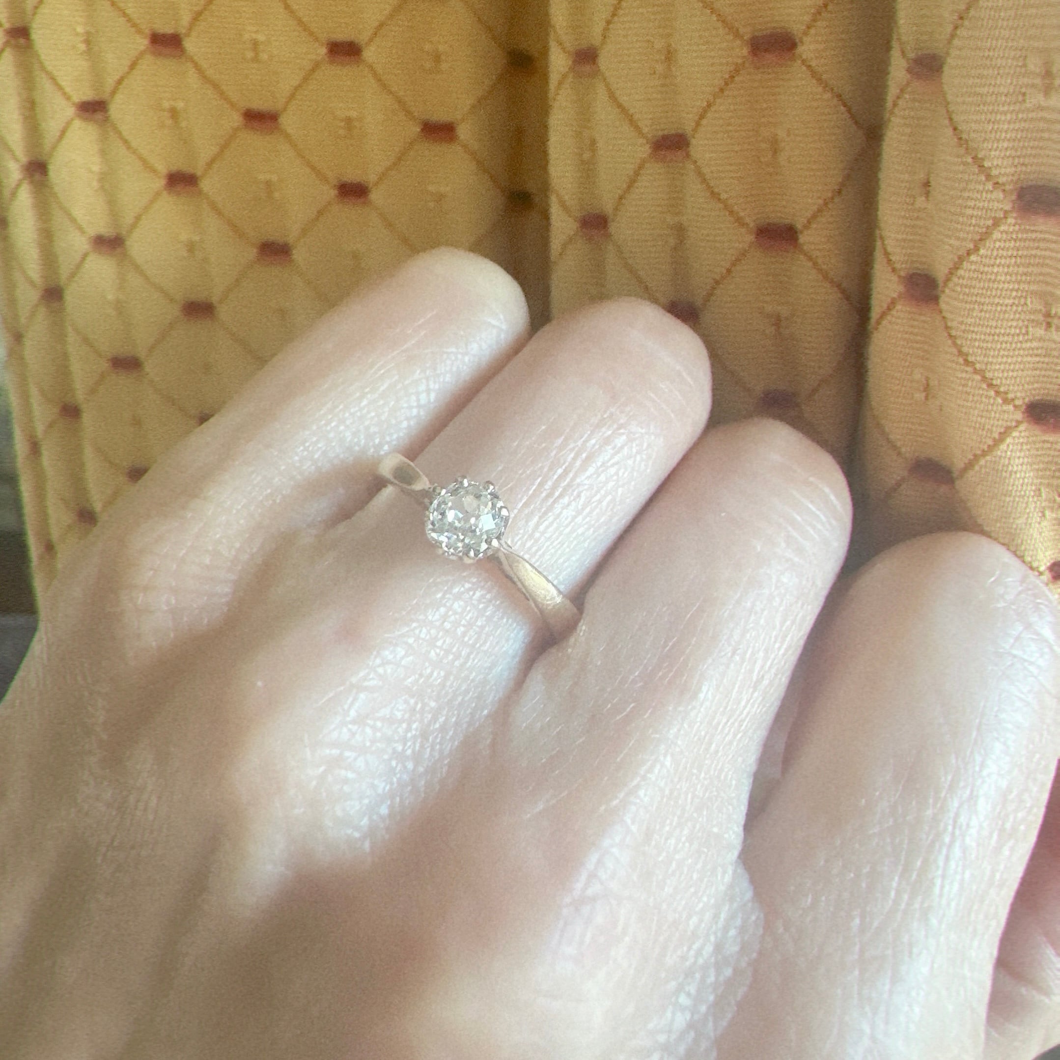 ソリテールリングは似たものが多いのも事実ですが、このリングにはオールドマインカットならではの唯一無二の可愛らしさと温度があります。