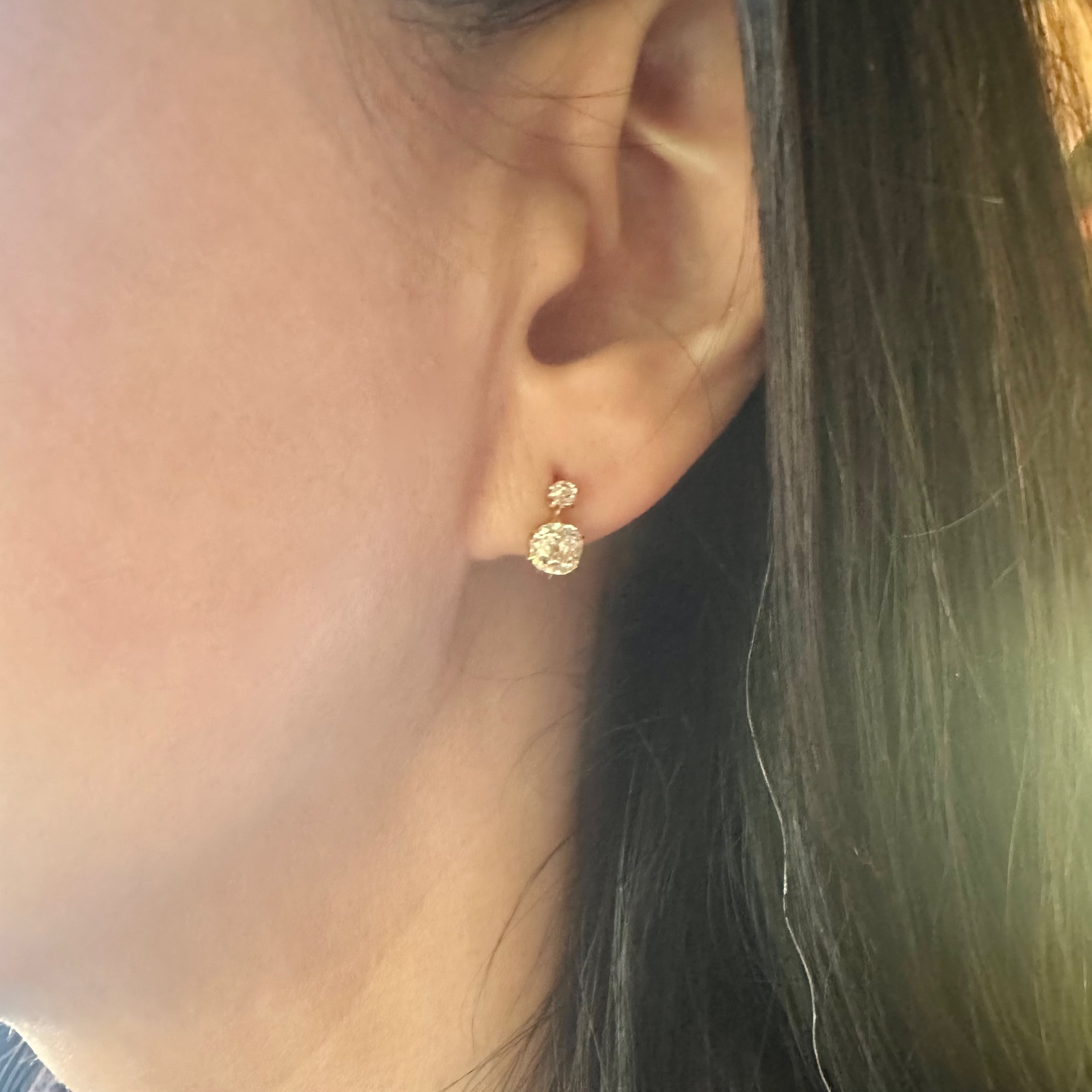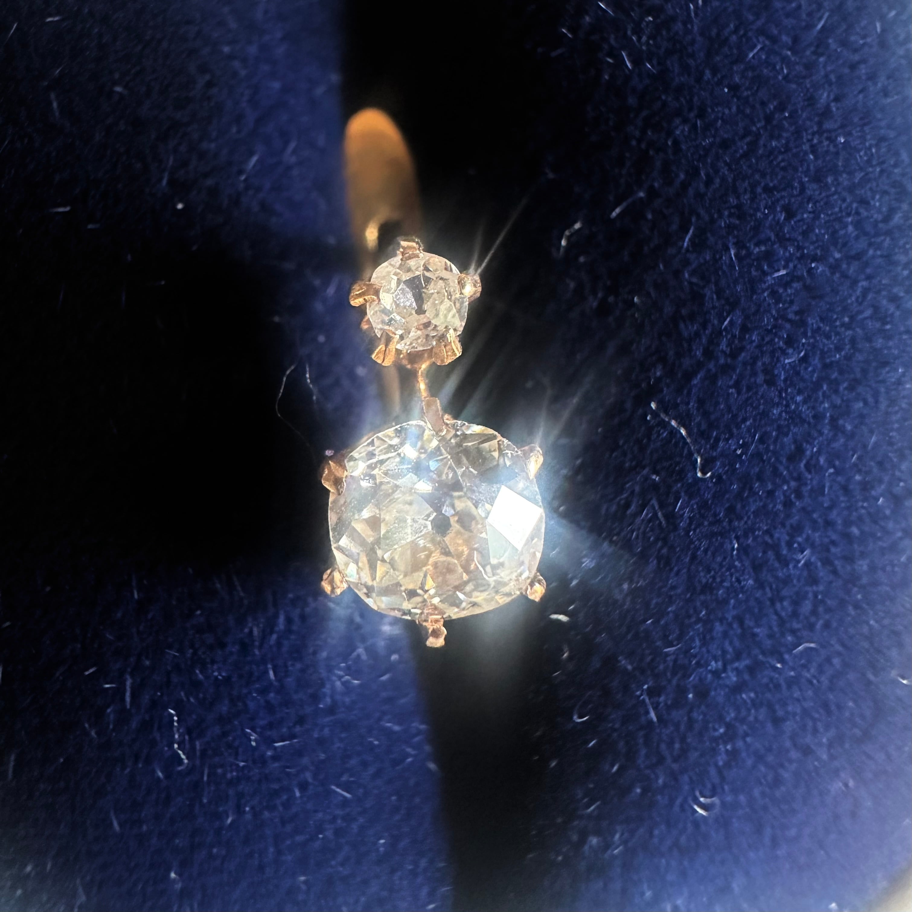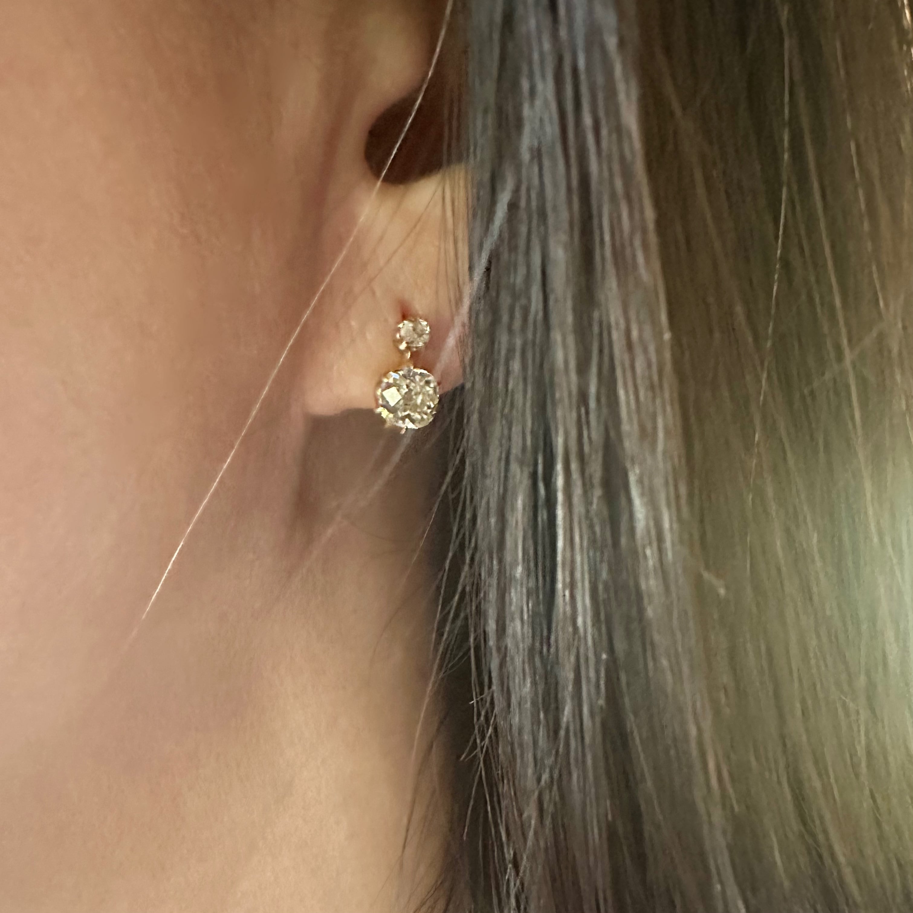 オープンキュレットの5mmオーバーのオールドマインカットダイヤモンドのピアス。