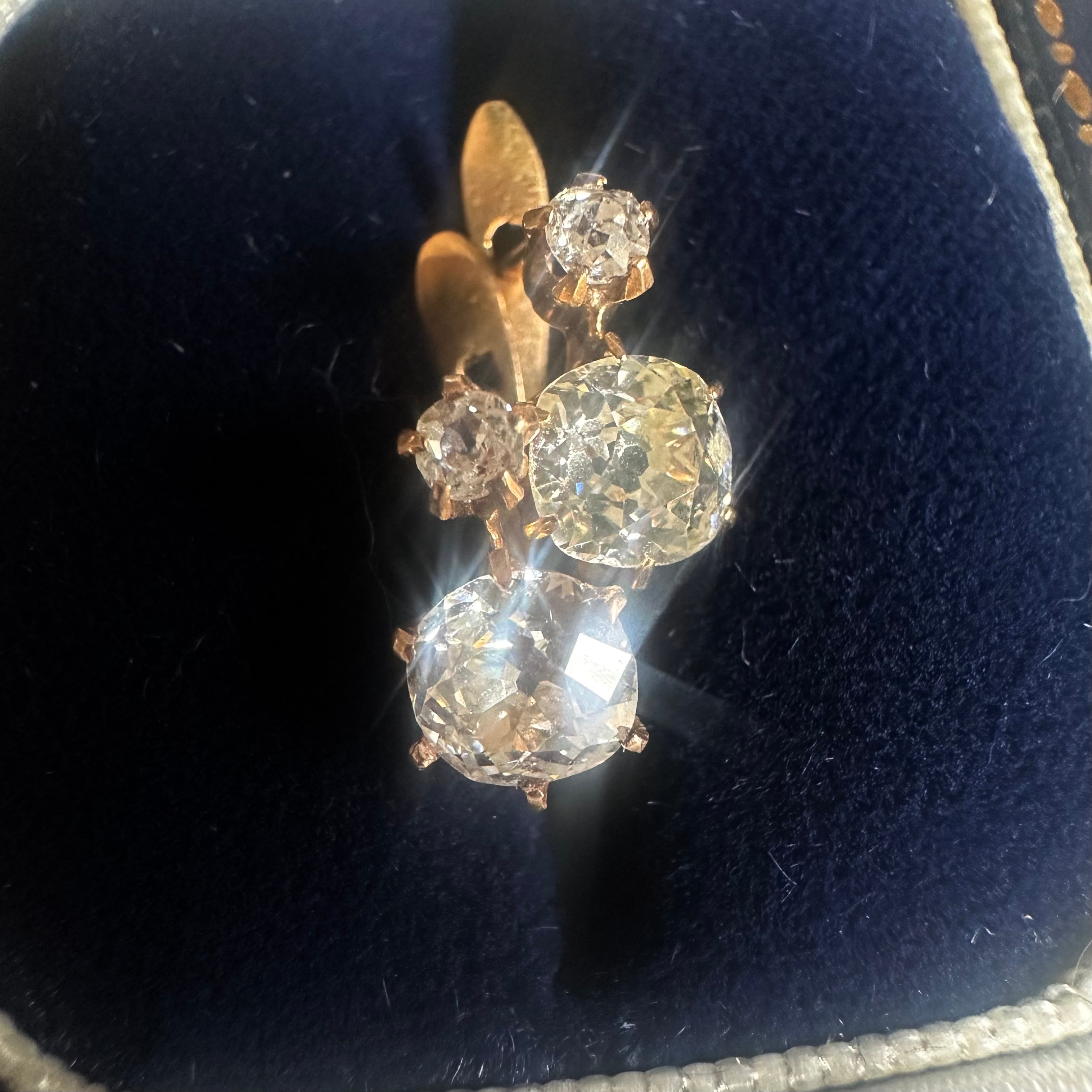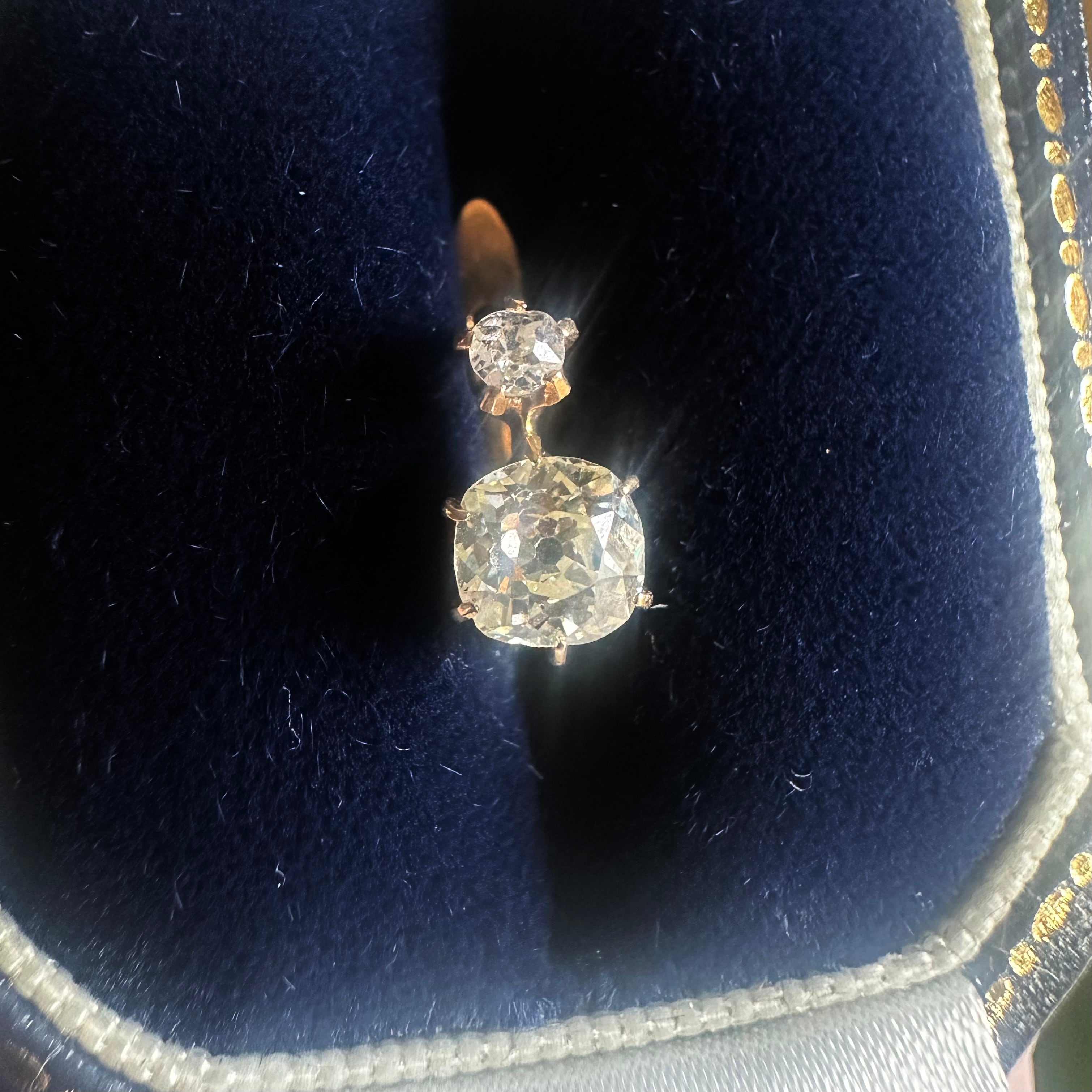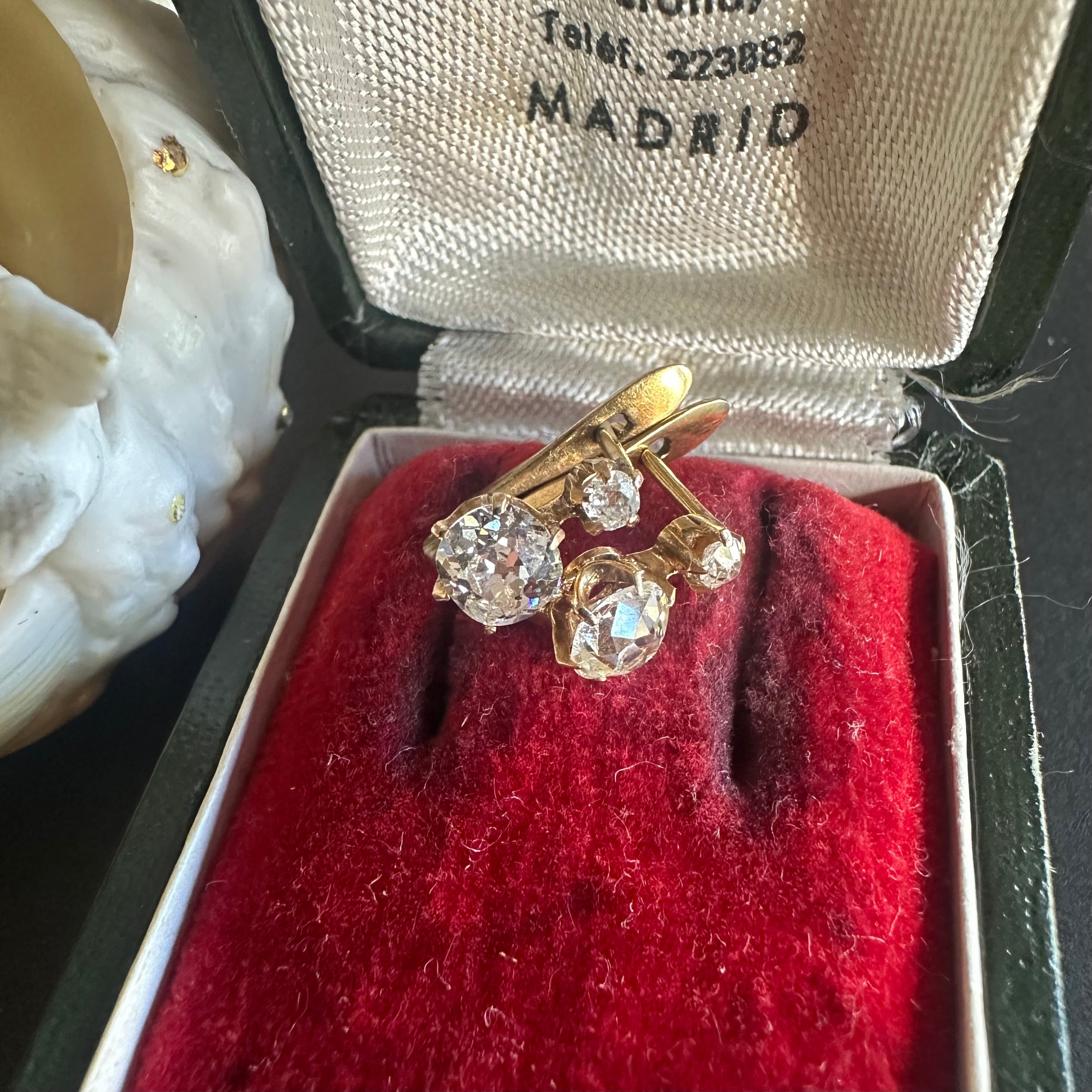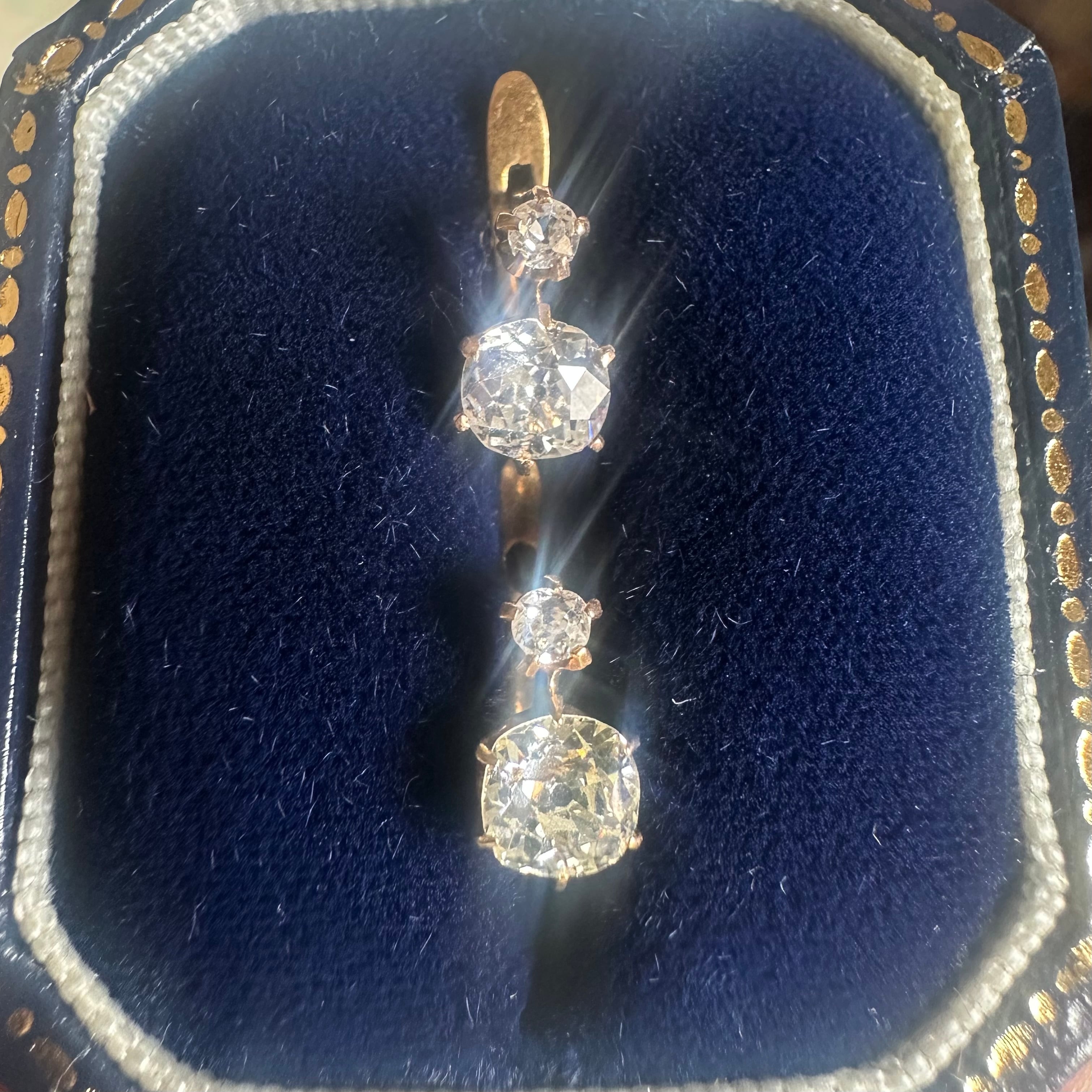 オープンキュレットの5mmオーバーのオールドマインカットダイヤモンドのピアス。