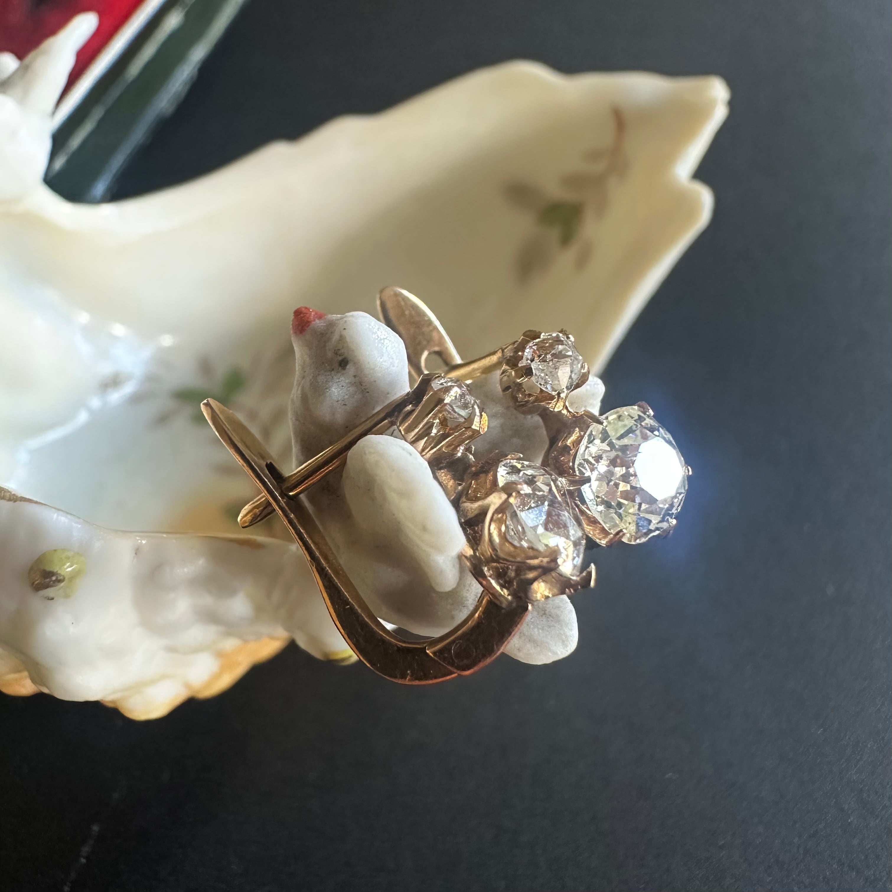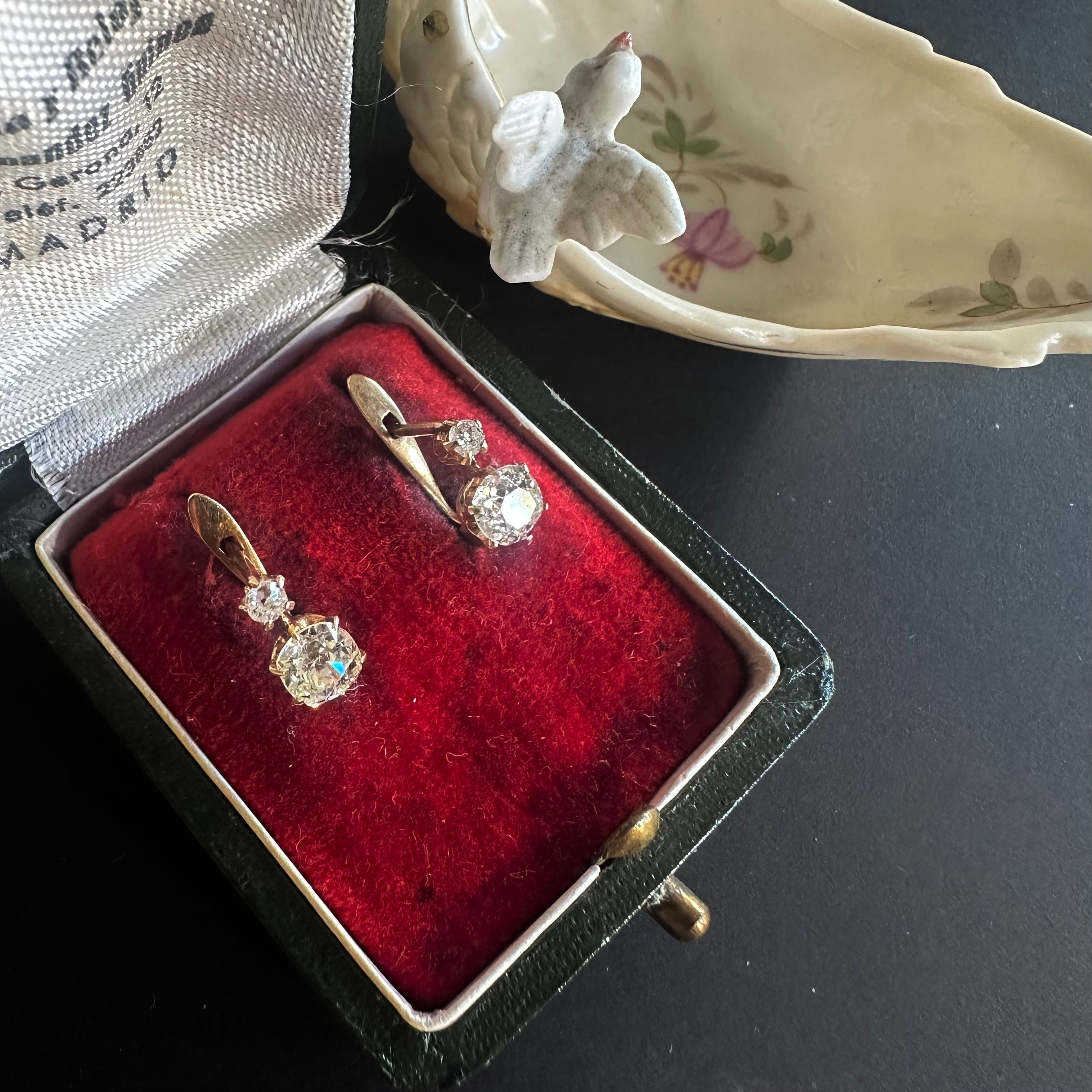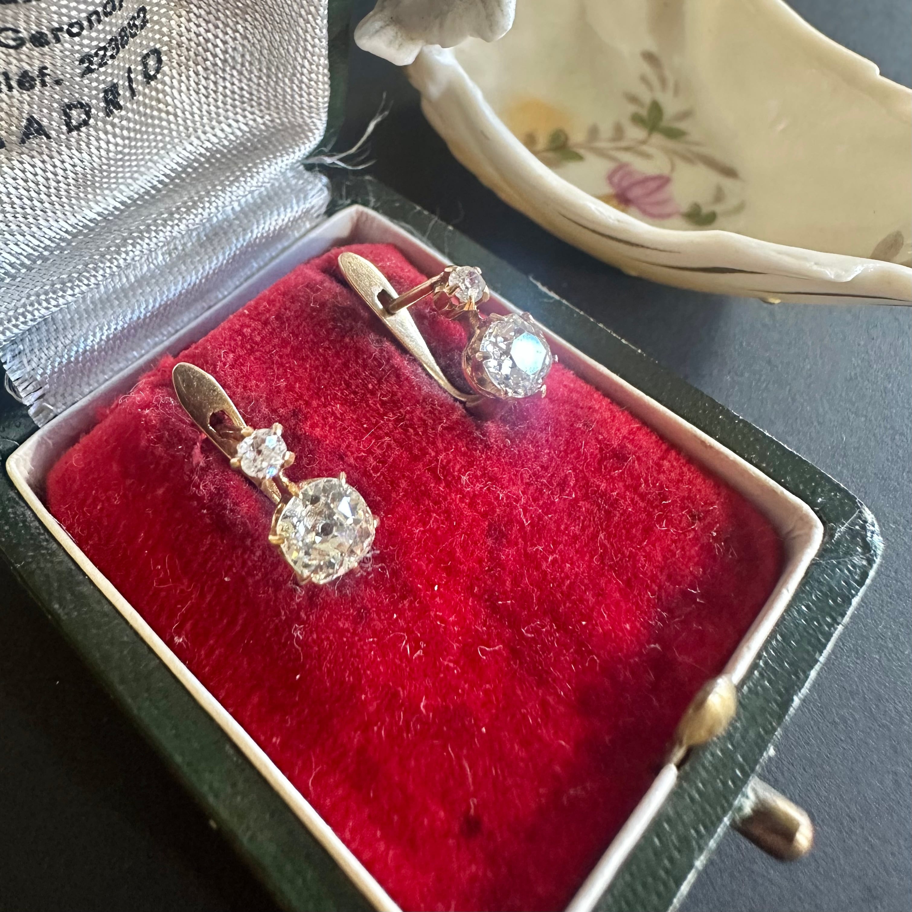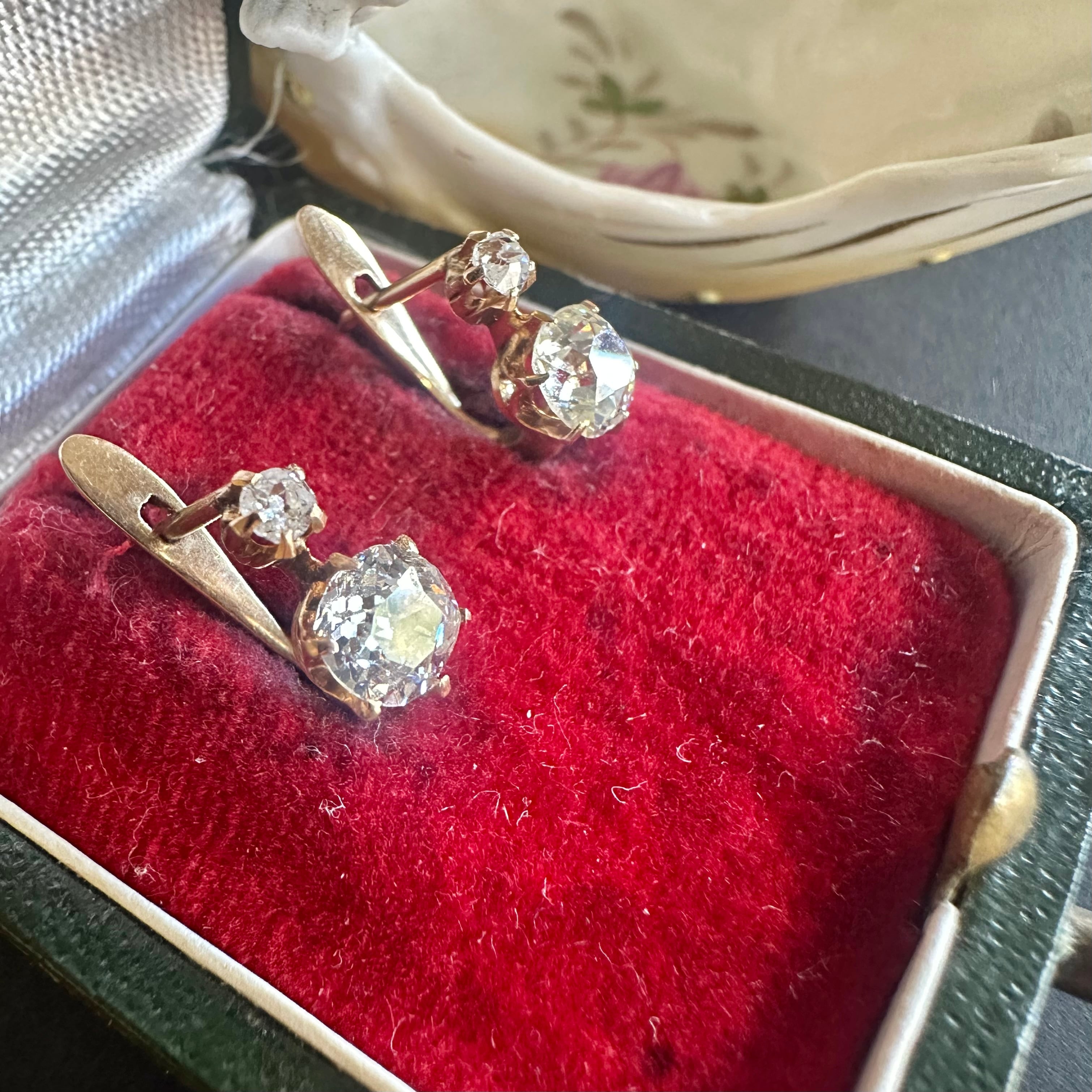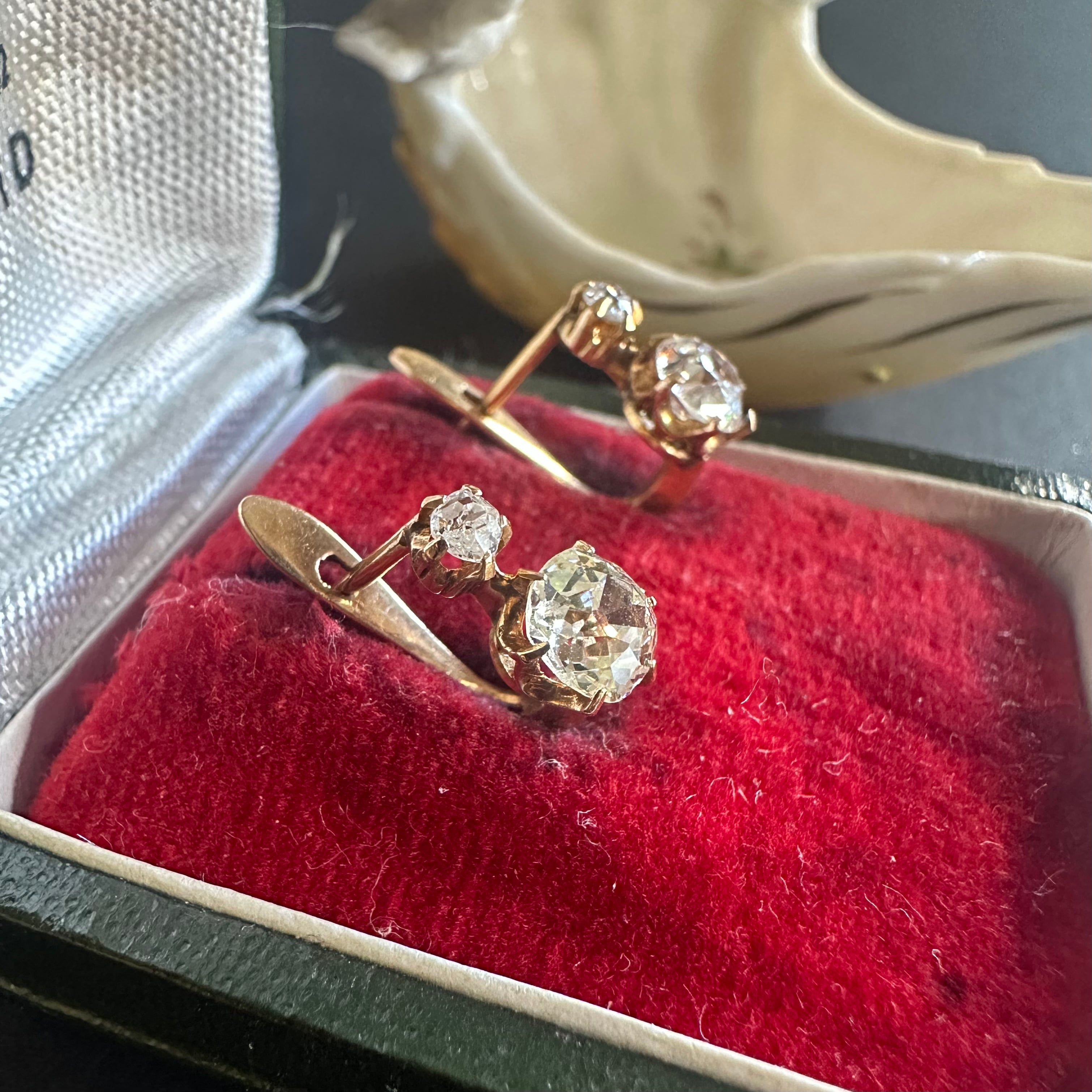 オールドマインカットダイヤモンドレバーバックアンティークピアス